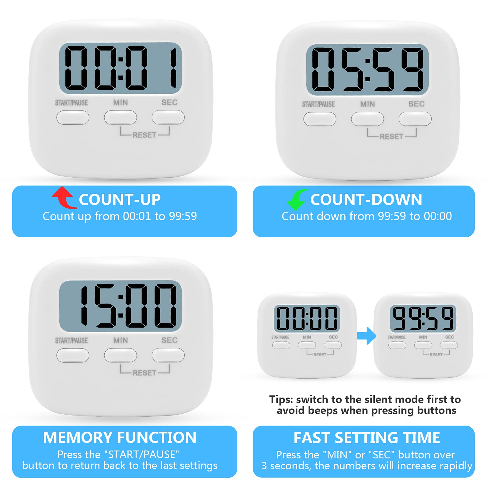 MECHEER Küchentimer ist eine perfekte Kurzzeitwecker zum Kochen, Backen, Hausaufgaben, Sport, Training im Fitnessstudio, Sport, Spiele, Gesichtsbehandlung im Klassenzimmer und für andere Aktivitäten (für Lehrer, Schüler, Kinder und andere Personen).