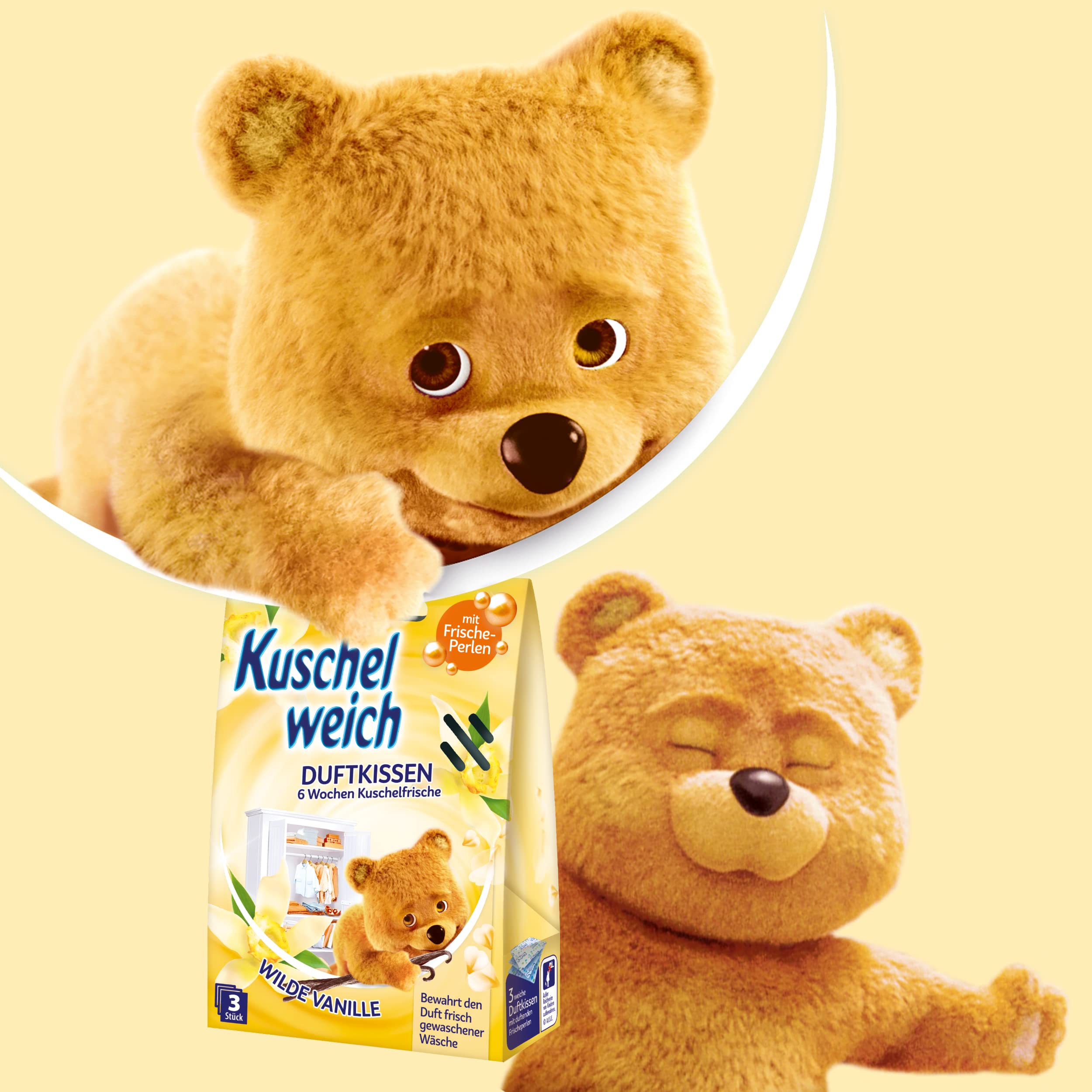 Kuschelweich Duftkissen für den Kleiderschrank - 3er Pack Schrankduft-Kissen - Frische für bis zu 6 Wochen - Wilde Vanille