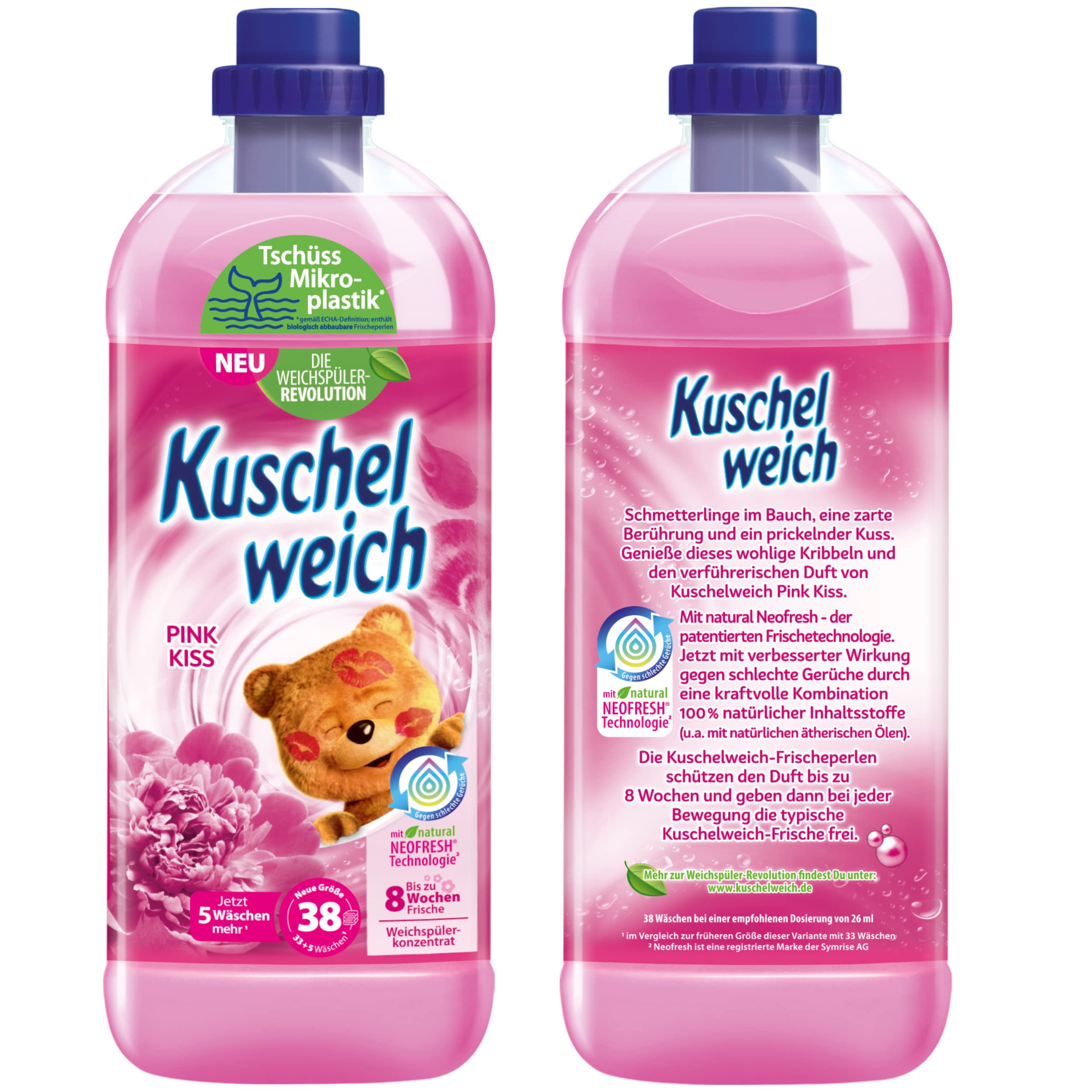 Kuschelweich Weichspüler - 12 x 1 l für je 38 Wäschen, kuschlig-weich - hautverträglich, mikroplastikfrei - Pink Kiss
