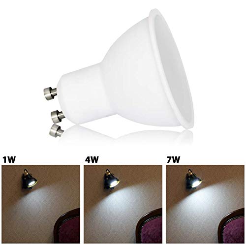 Kwazar Luminaire GU10 LED Kaltweiss 1W Lampe, Ersetzt 10W Halogenlampen, 100 Lumen Leuchtmittel, 6000K 120° Strahlwinkel Reflektorlampen, 10 Stück