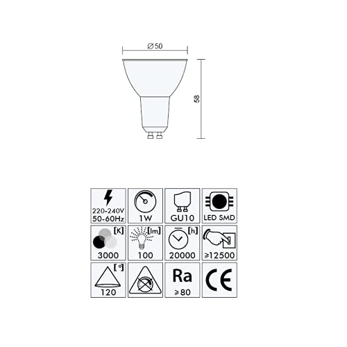 Kwazar Luminaire 10 Stück GU10 LED Lampen 1W, 100 Lumen, Warmweiss 3000K, 120° Strahlwinkel, Ersetzt 15W Halogenlampen, Reflektorlampen für Decken- und Akzentbeleuchtung