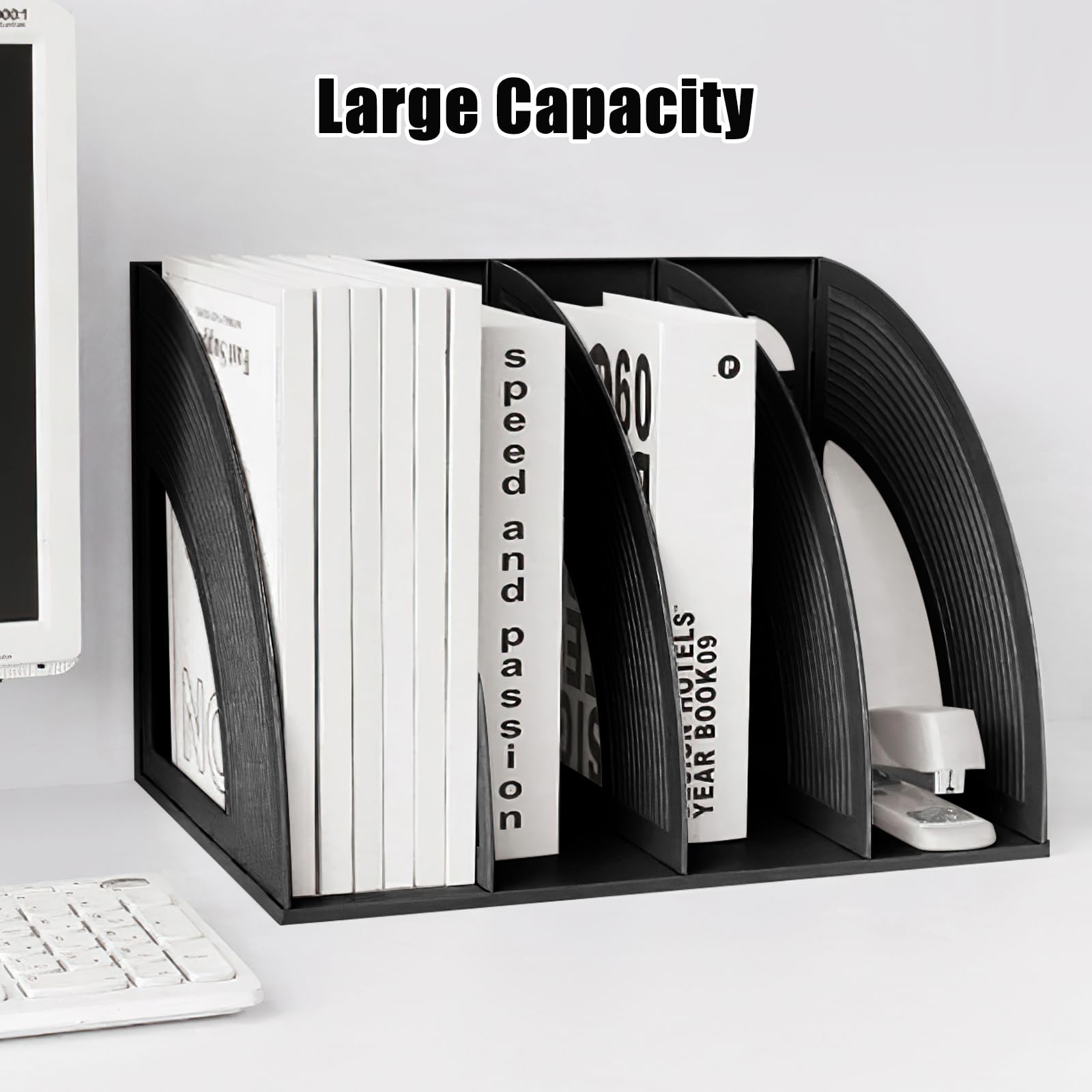 Offenes Sektordesign macht es für mehr Grössen von Dokumenten geeignet, ohne Tiefenbeschränkung. Sie können A4-Papier, Ordner, Zeitschriften und andere Dateien darin aufbewahren, um Ihren Schreibtisch ordentlich zu halten