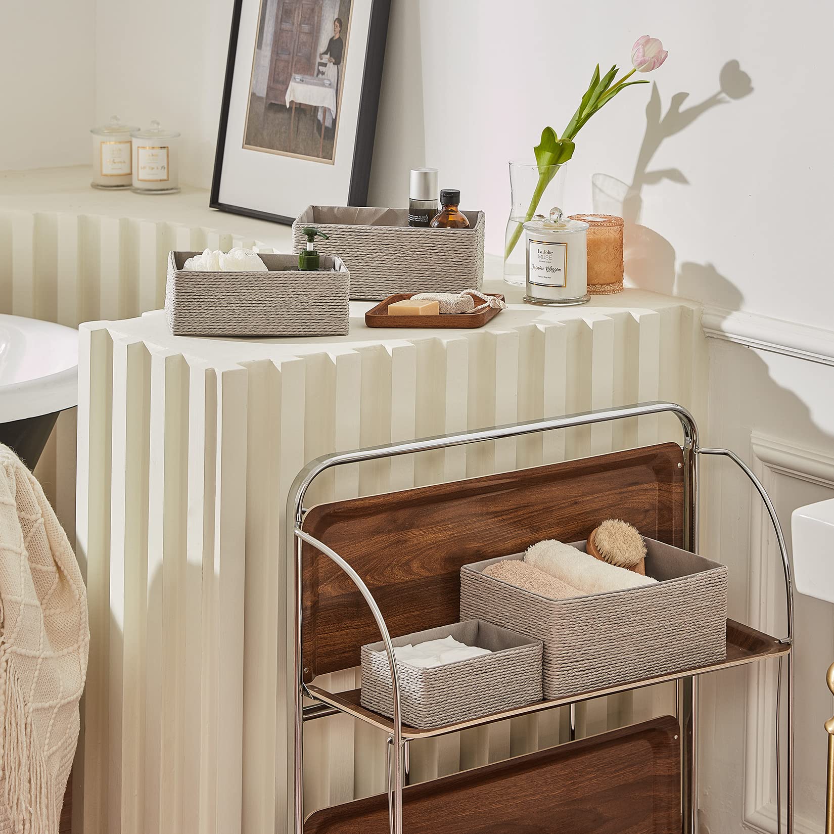 La Jolíe Muse Aufbewahrungskörbe Set 4 – Flechtkorb Papierbehälter zur Aufbewahrung, Makeup-Boxen für Schrank Bad Schlafzimmer Wohnzimmer Grau