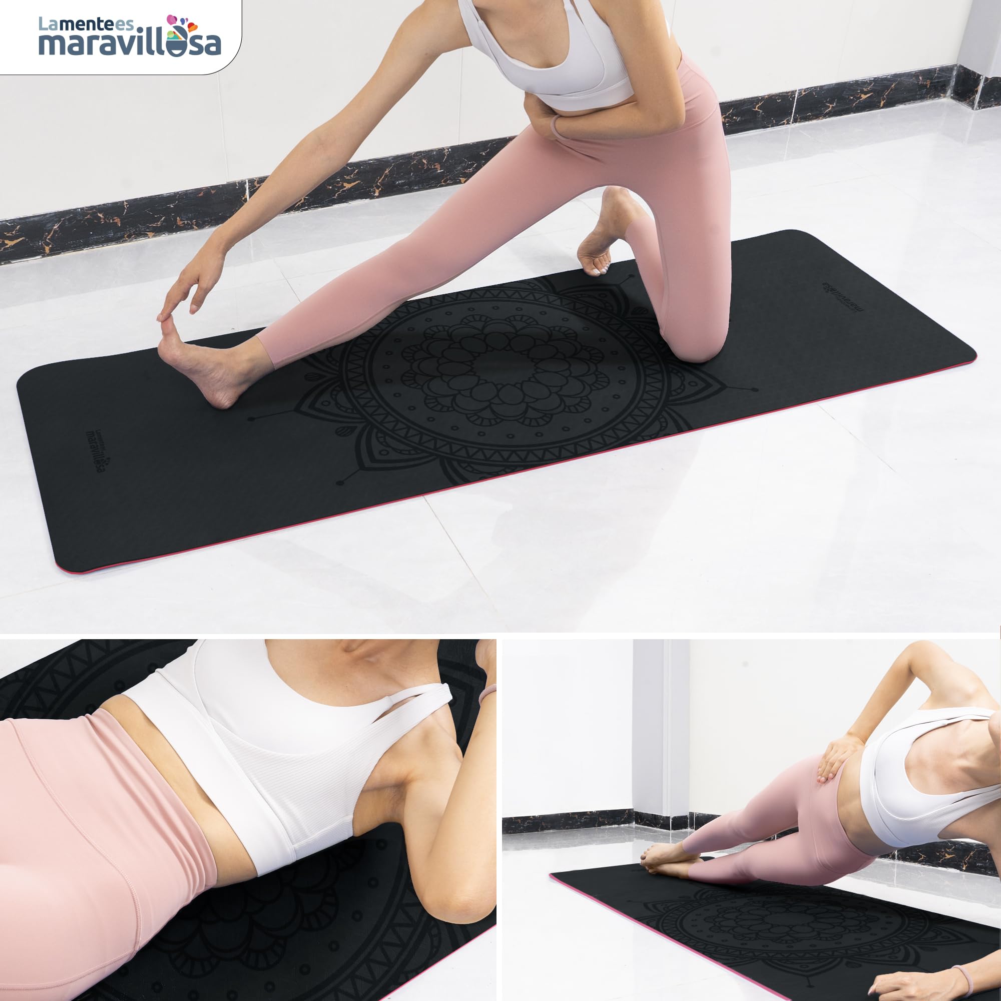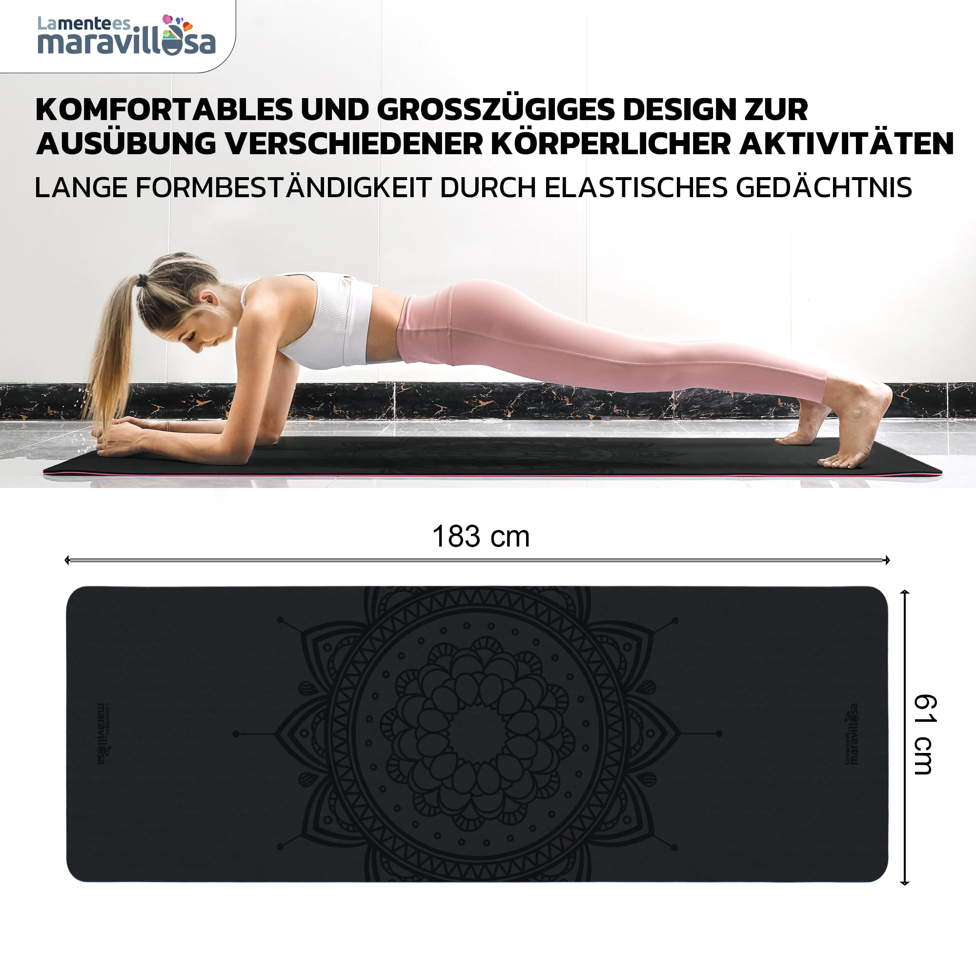 LA MENTE ES MARAVILLOSA - Gymnastikmatte, Rutschfest Yogamatte inkl. Tragegurt + Tasche + Übungs-E-Book, Gepolstert, Hautfreundliches TPE für Fitness/Pilates/Workout 183x61 cm (Mandala, Schwarz/Rosa)