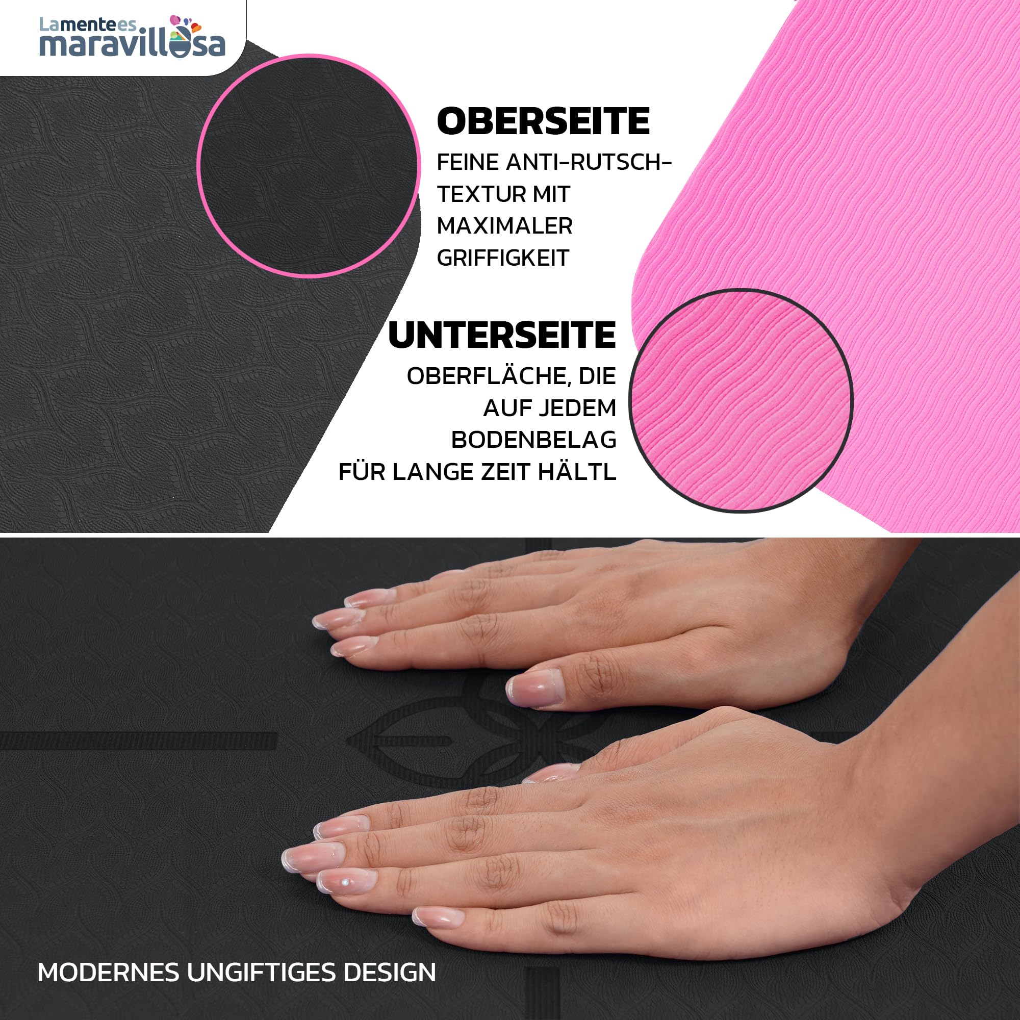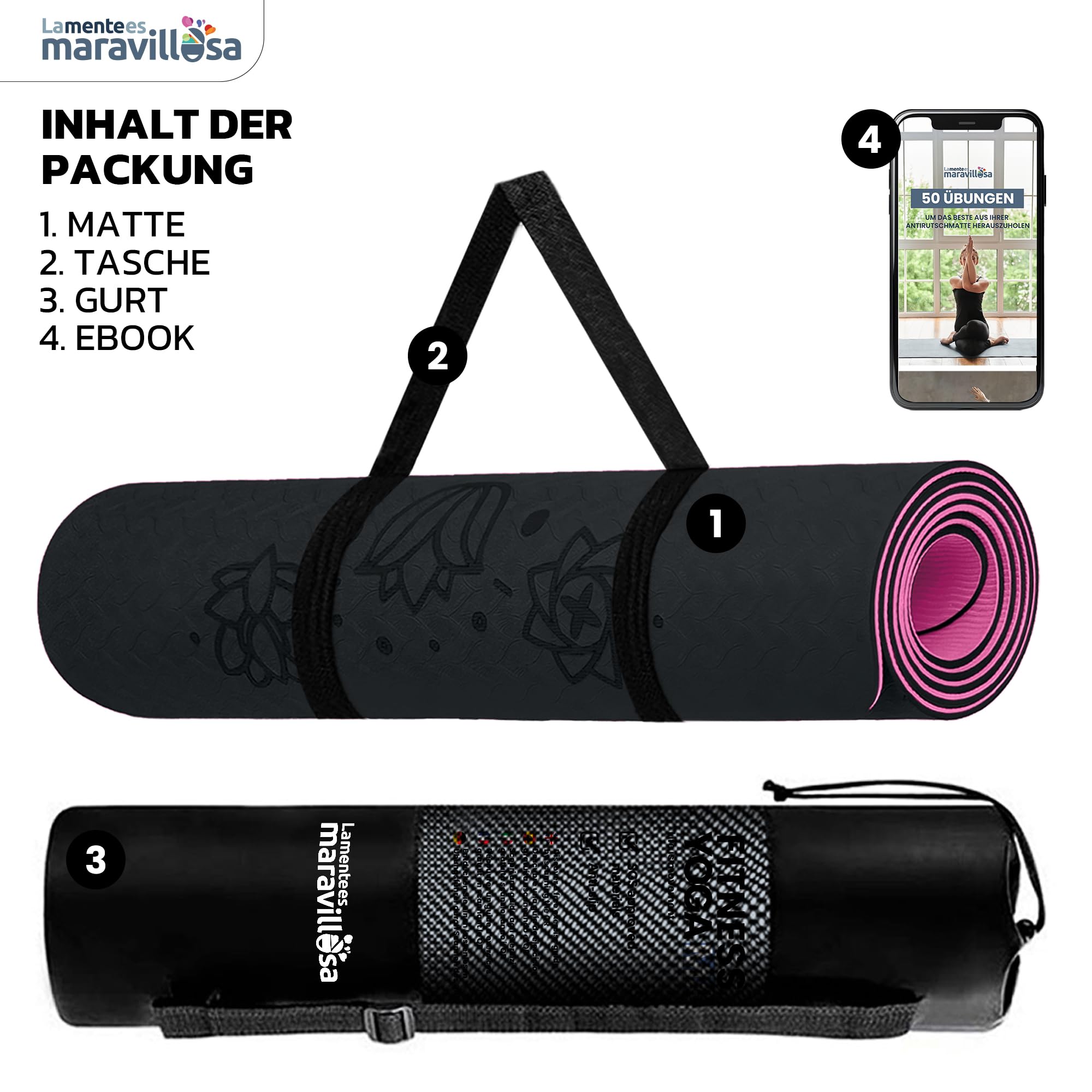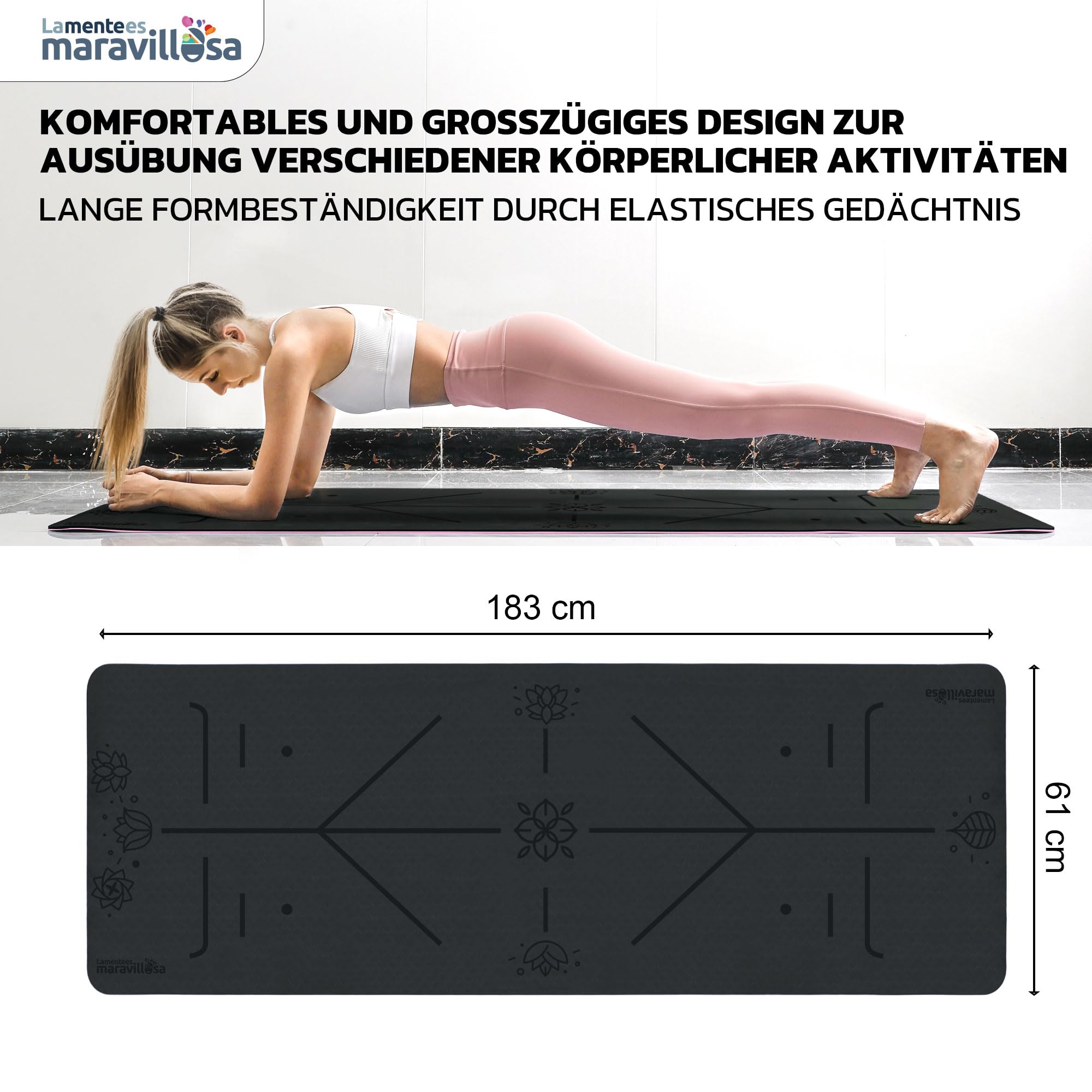 LA MENTE ES MARAVILLOSA - Gymnastikmatte Rutschfest【TPE | 183x61cm】Inkl Tragegurt + Tasche + Übungs-E-Book, Gelenkschonende Yogamatte für Fitness, Pilates | Indoor/Outdoor Geeignet