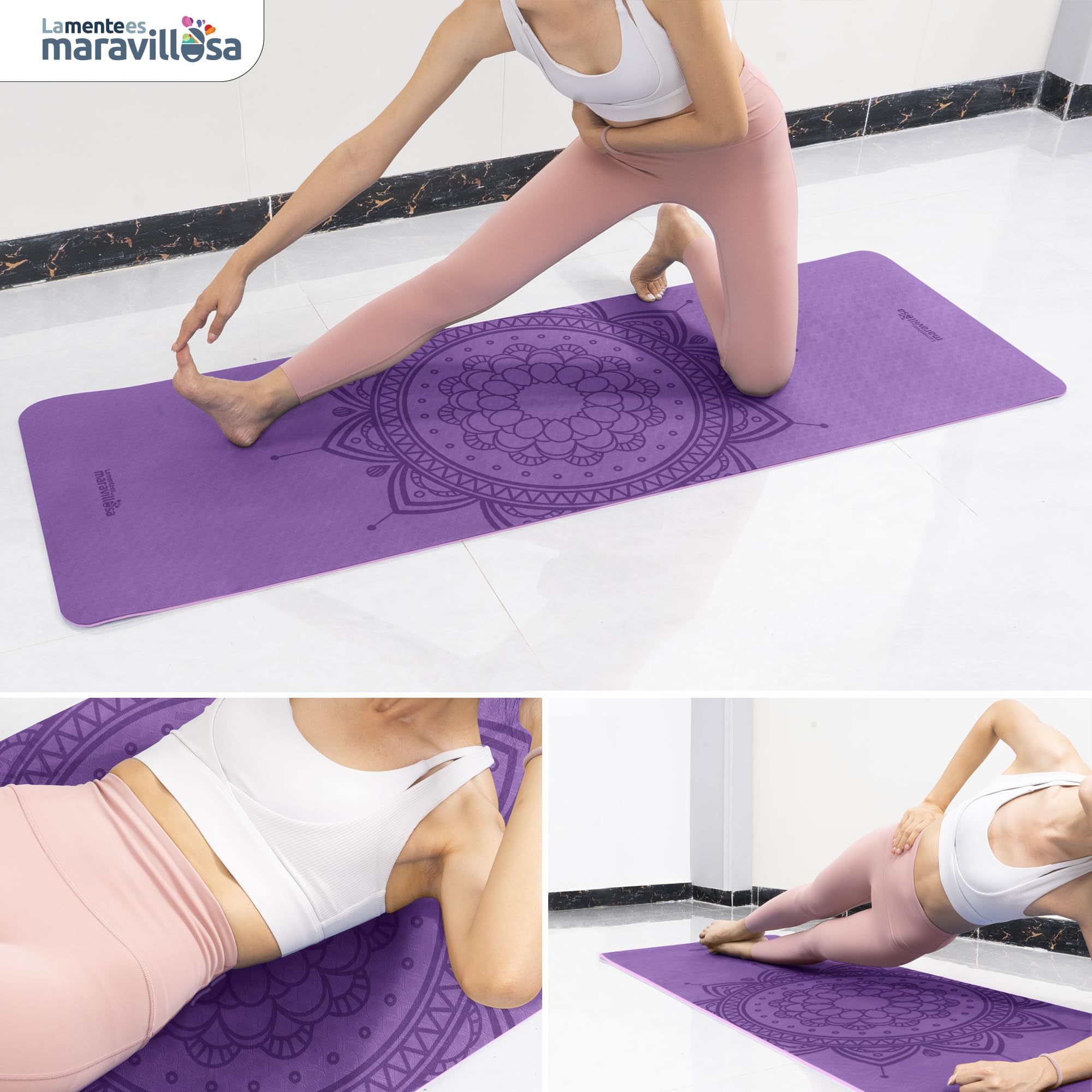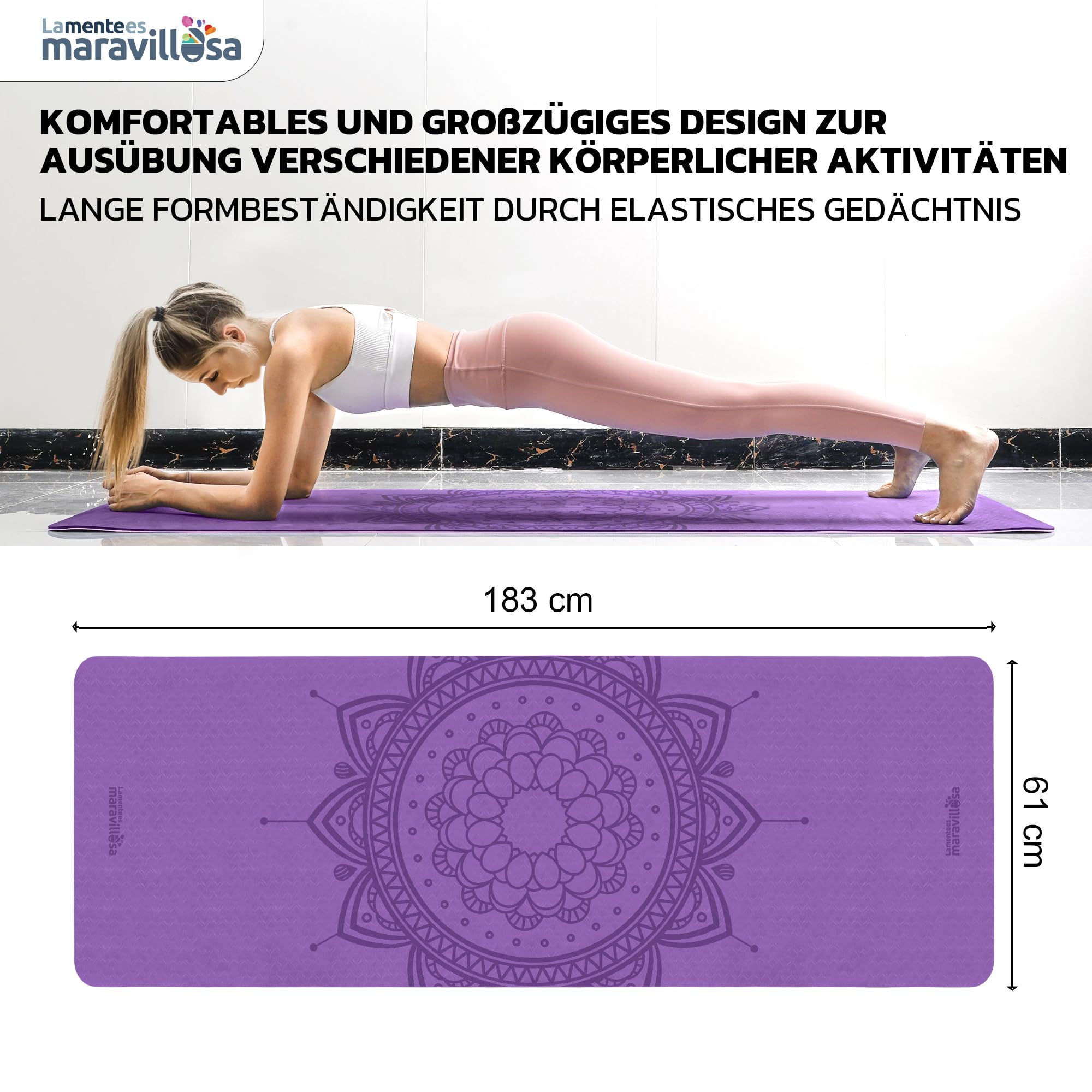LA MENTE ES MARAVILLOSA - Gymnastikmatte, Rutschfest Yogamatte inkl. Tragegurt + Tasche + Übungs-E-Book, Gepolstert, Hautfreundliches TPE für Fitness/Pilates/Workout 183x61 cm (Mandala, Lila/Rosa)