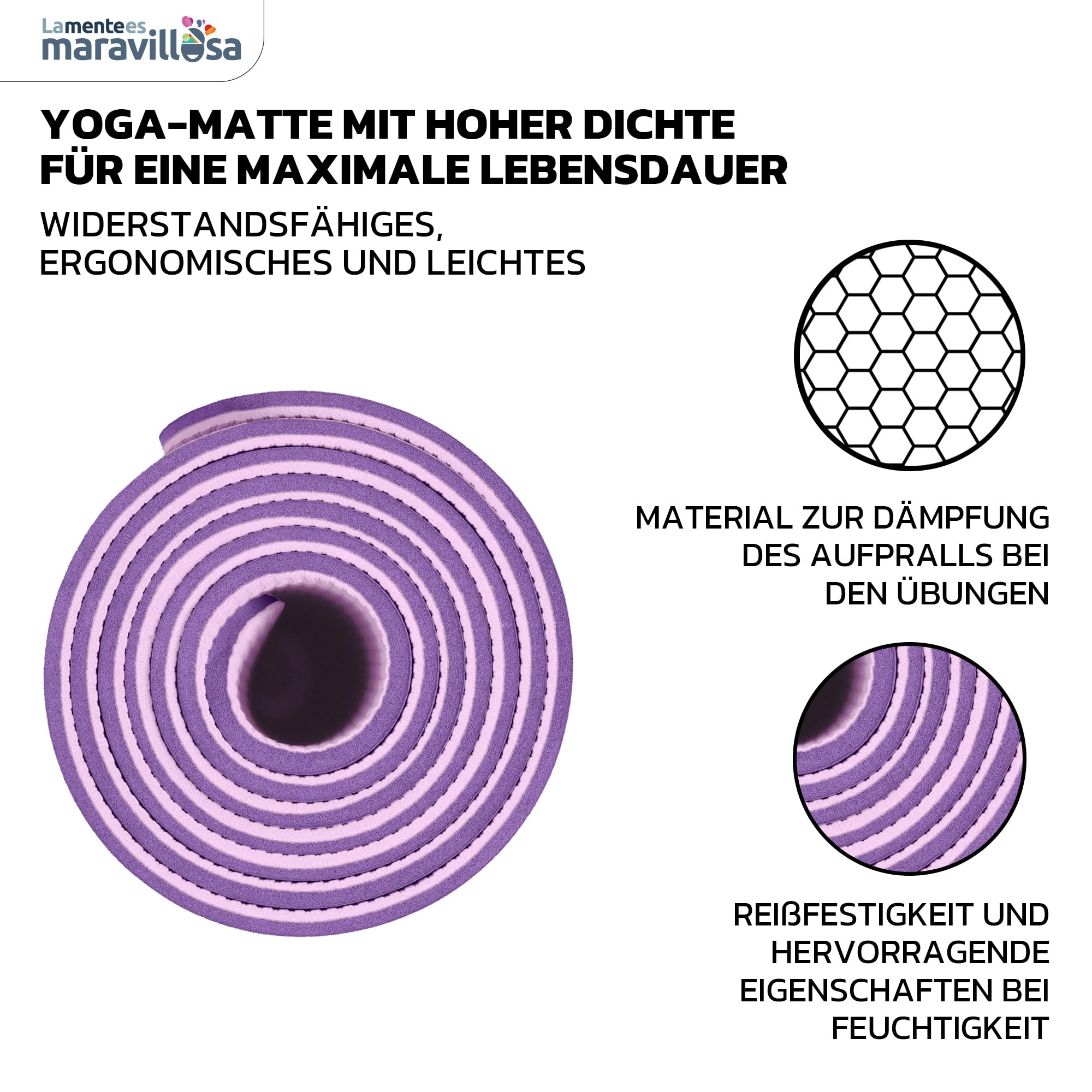 LA MENTE ES MARAVILLOSA - Gymnastikmatte Rutschfest【TPE | 183x61cm】Inkl Tragegurt + Tasche + Übungs-E-Book, Gelenkschonende Yogamatte für Fitness, Pilates | Indoor/Outdoor Geeignet