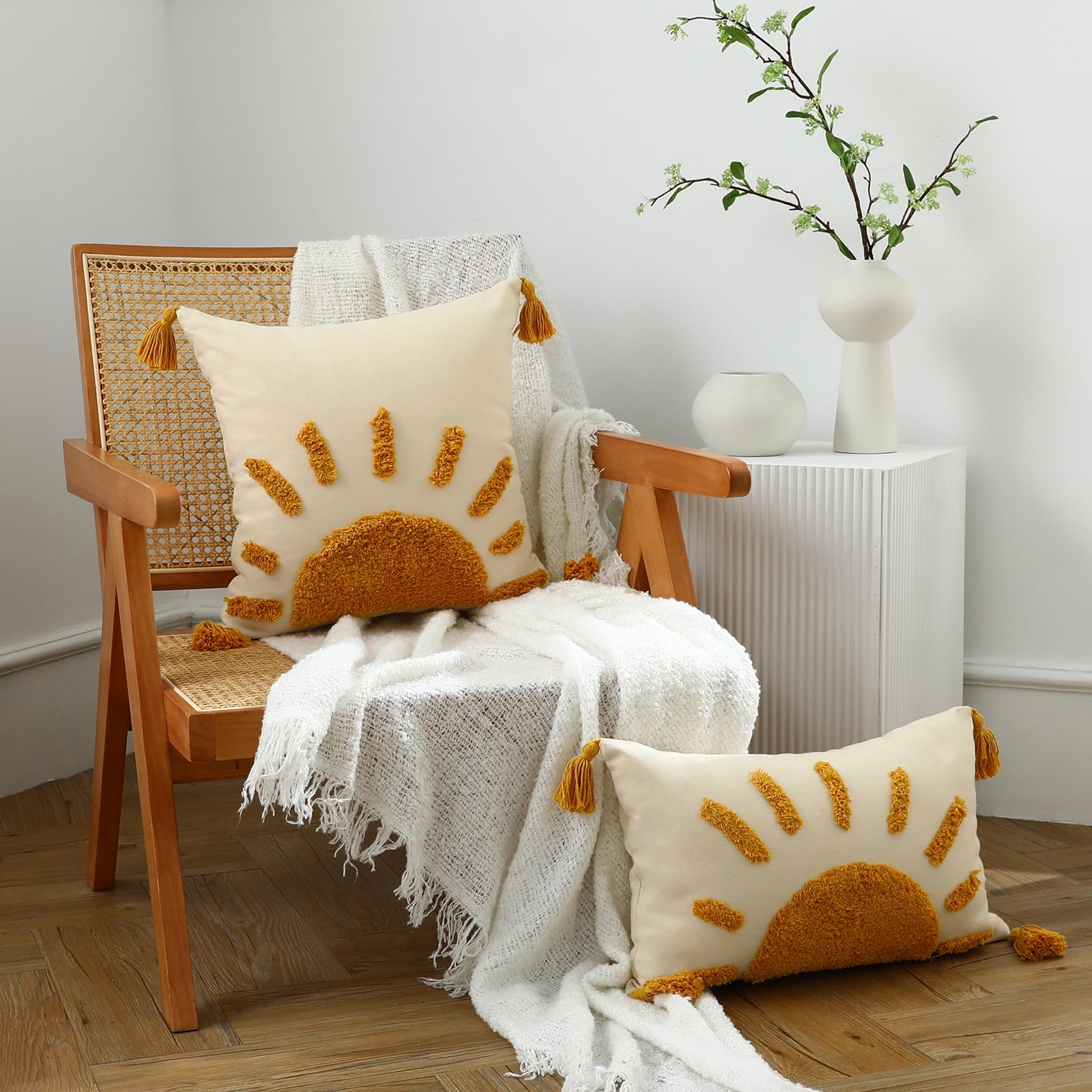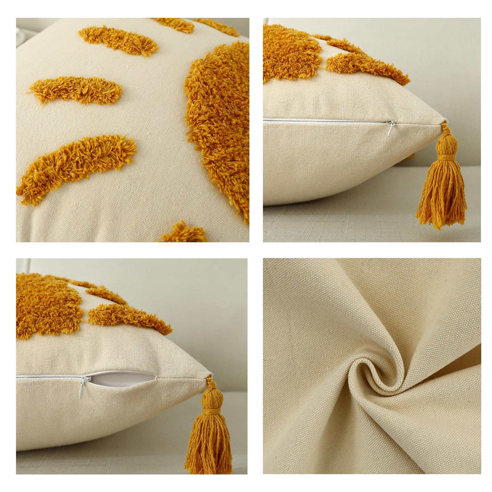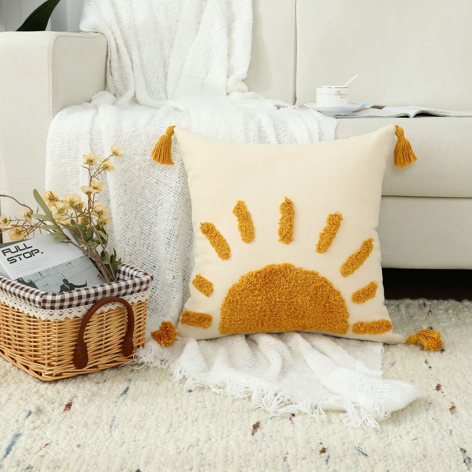 Labilin Kissenbezug 50x50 Gelb 1er Set Kissenbezüge Kissenhülle Gewebte Getuftete Sonnen Dekokissen mit Quasten Sofakissen Couchkissen Dekokissen Zierkissenbezug Deko Kissenhüllen Wohnzimmer