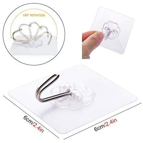 LABOTA Klebehaken Extra Stark, 20 Stück Haken Selbstklebend Transparent Praktisch Klebenägel Wand, Adhesive Hooks für Küche Badezimmer Wand & Decke Aufhänger, Max 10kg