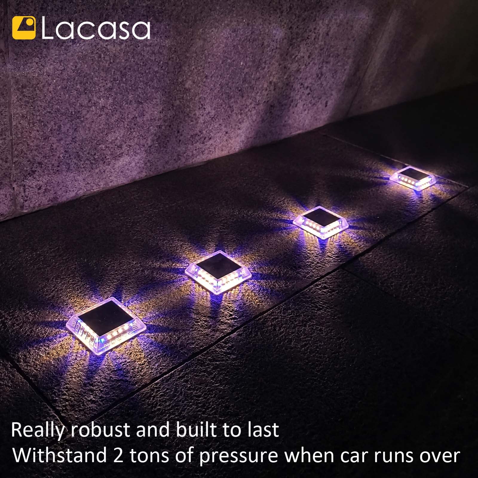 Lacasa Solar Bodenleuchten Aussen, 4 Stück Solarleuchten für Aussen 30LM Solarlampen IP68 Wasserdicht Auto ON/OFF LED Wegeleuchten für Garten Rasen Terrasse Hof, Mischfarben (Warmweiss + Blaues Licht)