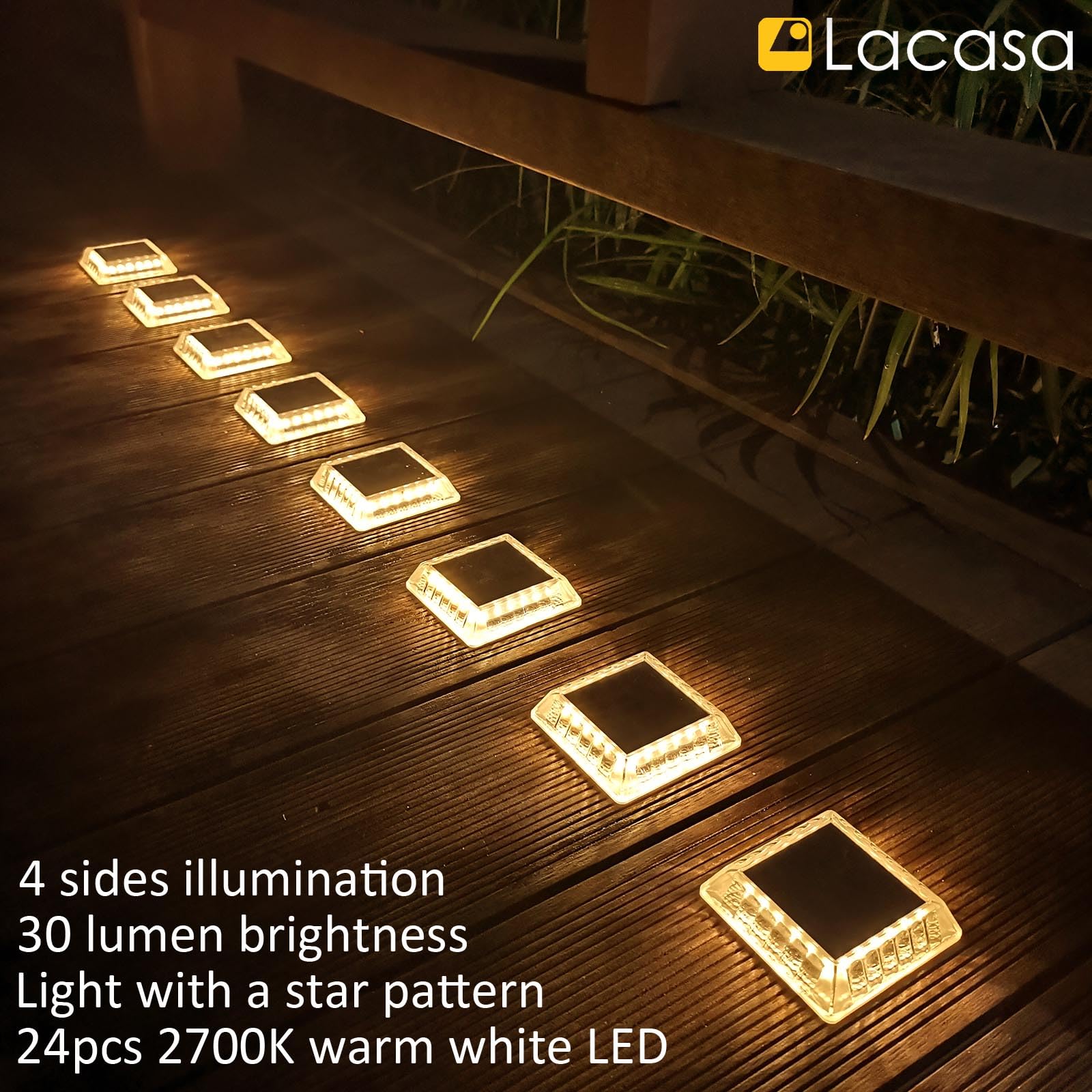 Lacasa Solar Bodenleuchten Aussen, 8 Stück Solarleuchten für Aussen Warmweiss 2700K, 30LM Solarlampen LED Wegeleuchten IP68 Wasserdicht Auto ON/OFF Solar Gartenleuchten für Garten Rasen Terrasse Hof