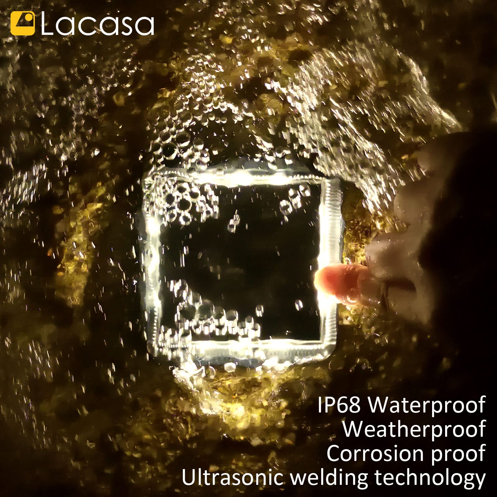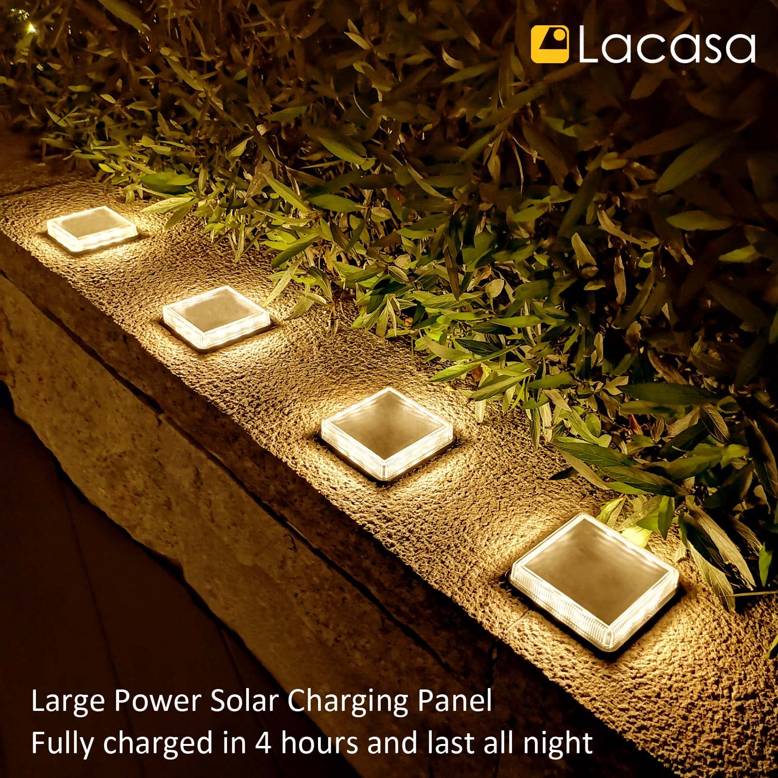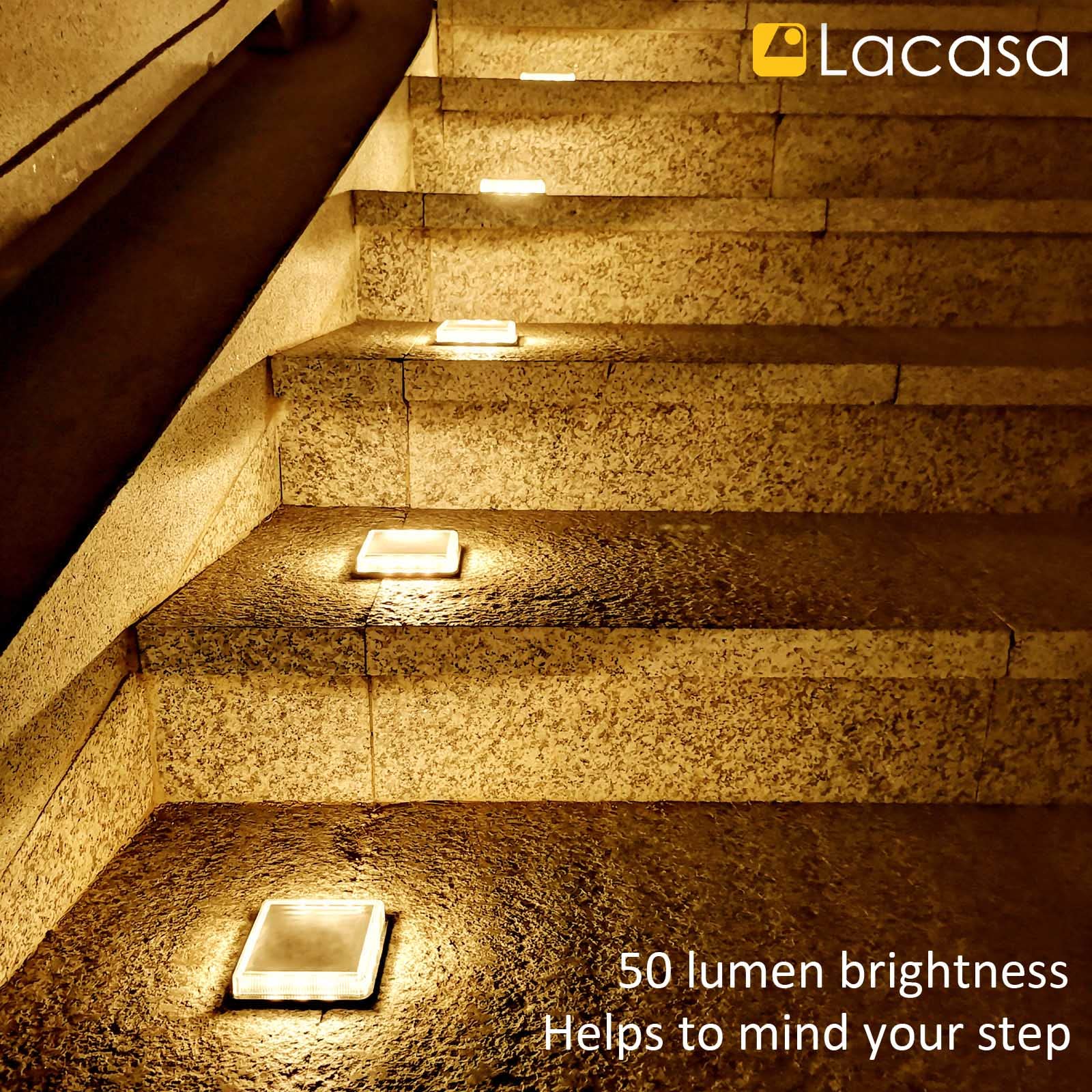 Lacasa Solar Bodenleuchten Aussen Solarleuchte Garten, 50LM LED Stufenleuchte 3000K Warmweiss Treppenlicht Aussen Wasserdicht IP68 für Gehweg Weg Treppe, Eckig, 4 Stück