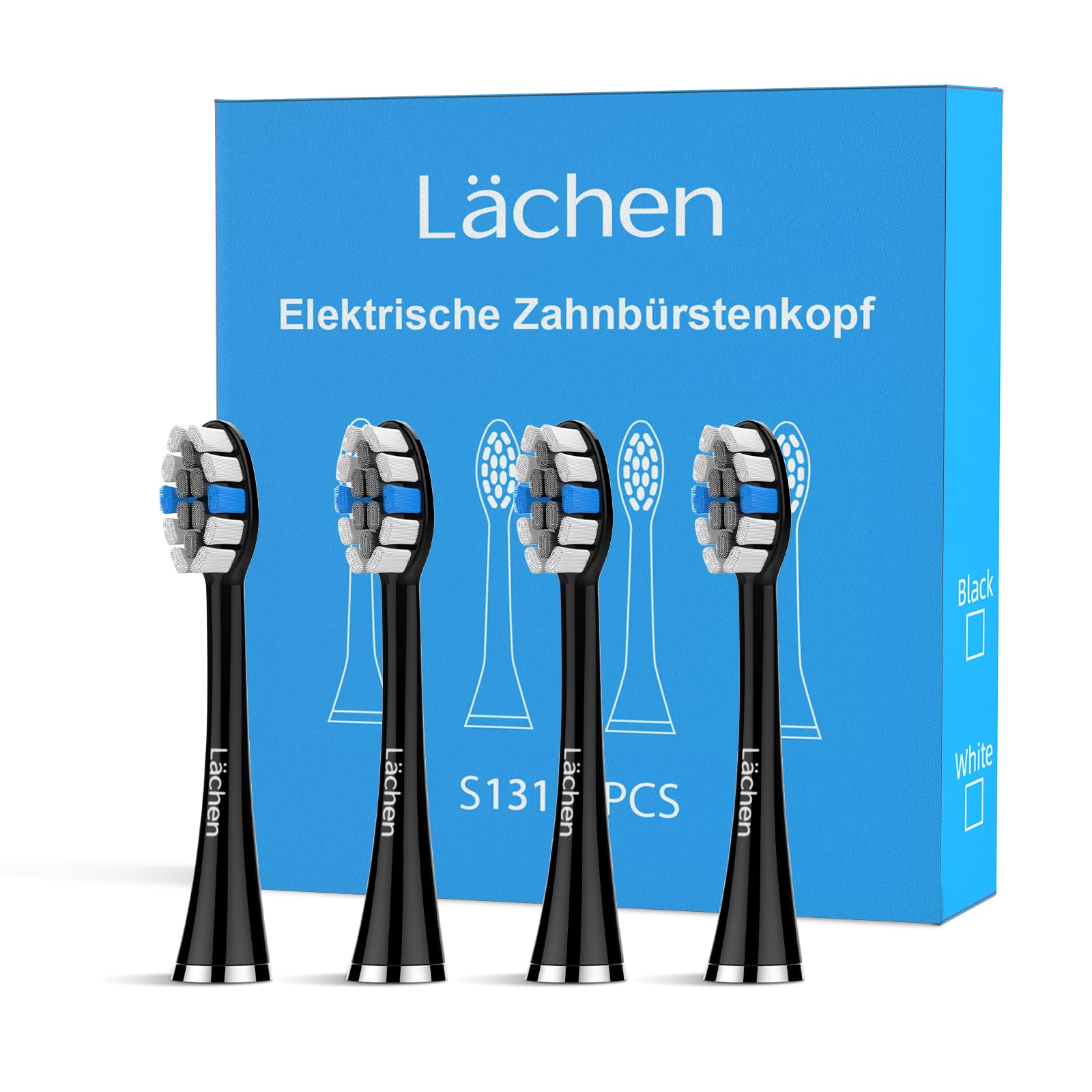 Lächen Ersatzbürstenkopf,Passend für alle elektrischen Zahnbürsten von Lächen, 4 Stück (S131 schwarz)