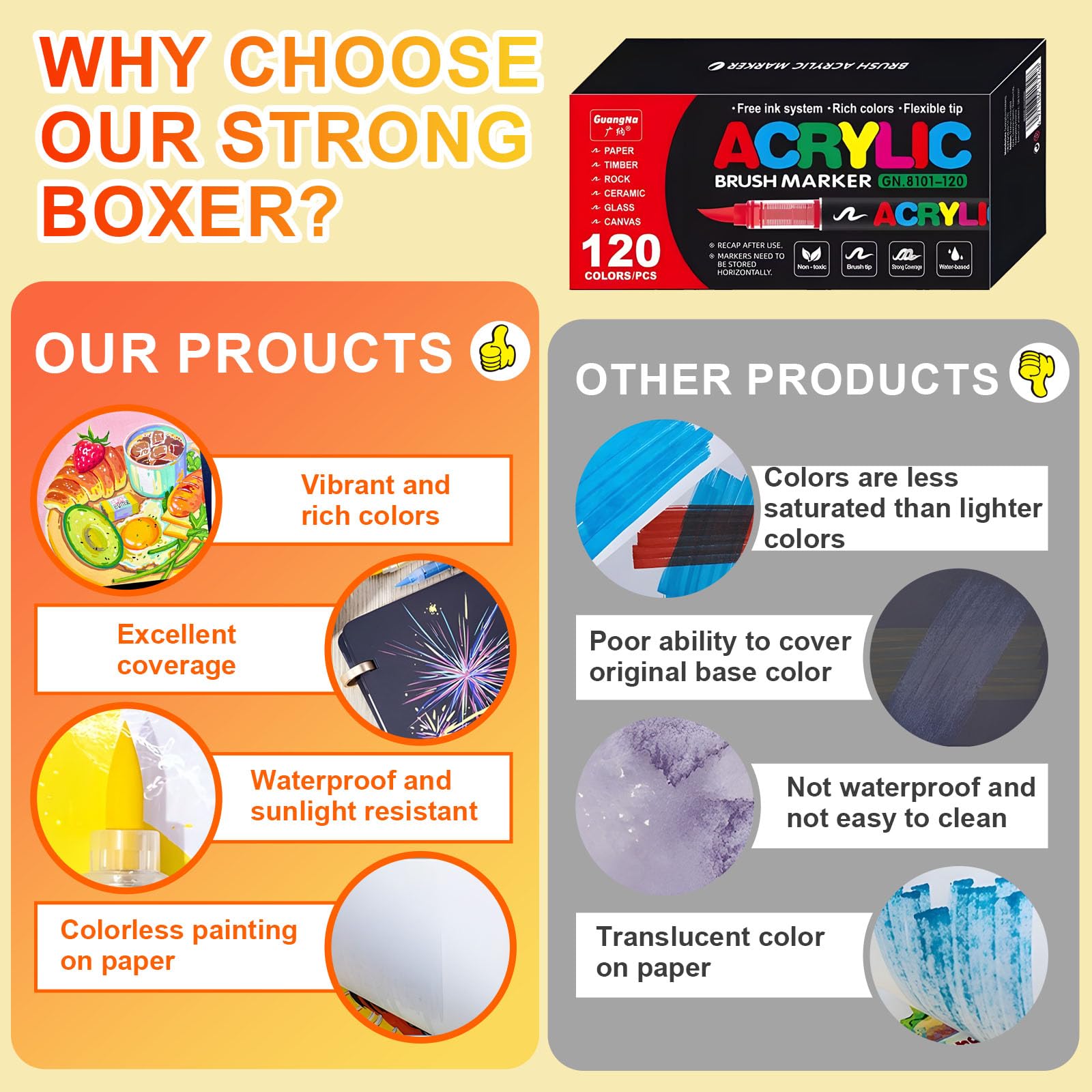 Laconile 120 Farben Acrylstifte für Steine Wasserfest, Brush Tip Acrylic Pens Set, Schnelltrocknend und Ungiftig, Ideal Acrylstifte zum Bemalen für Steinen, Glas, Leinwand, Keramik, Holz