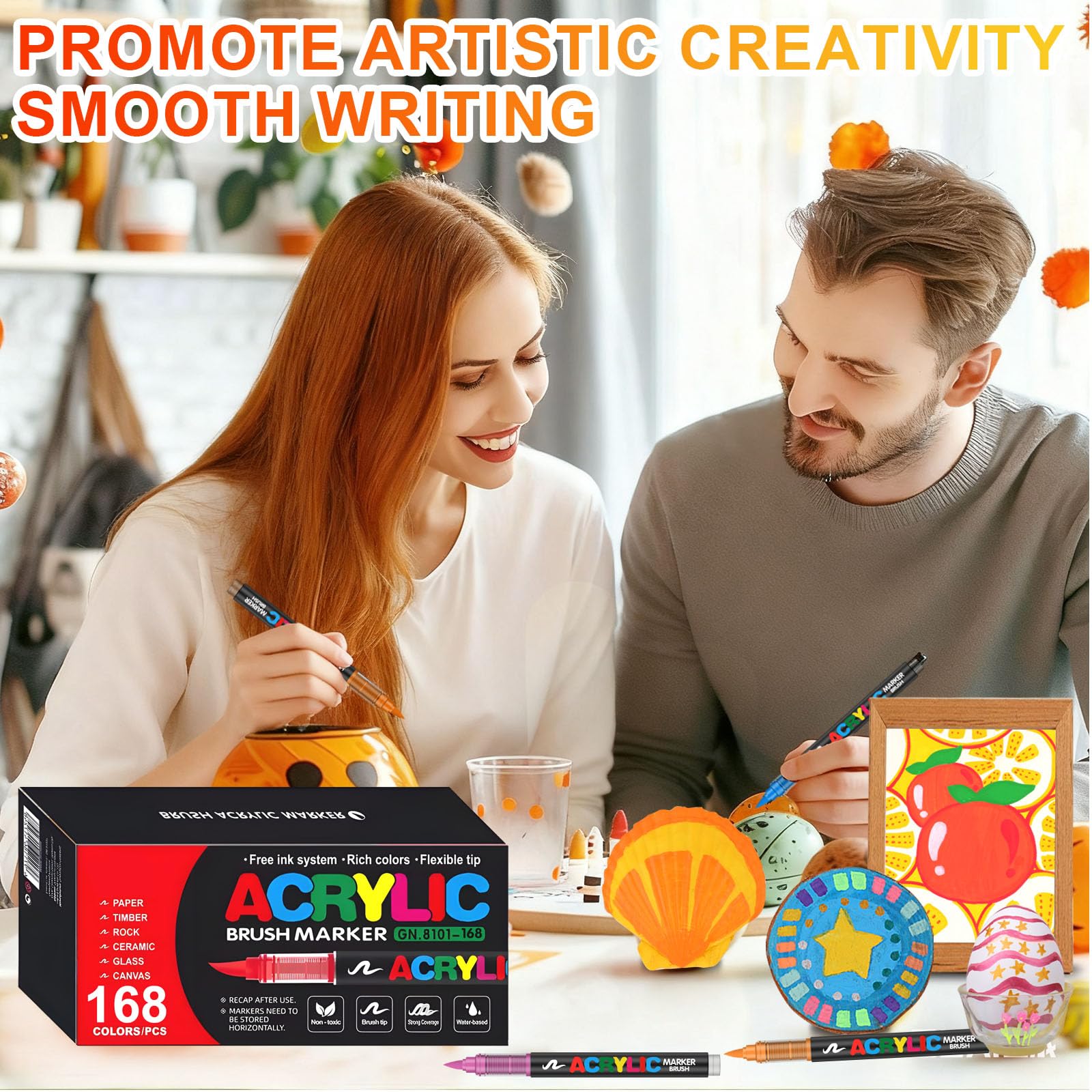 • 168 Farben Acrylstifte für Steine Wasserfest, Brush Tip Acrylic Pens Set, Schnelltrocknend und Ungiftig, Ideal Acrylstifte zum Bemalen für Steinen, Porzellan, Glas, Leinwand, Keramik, Holz, Metall