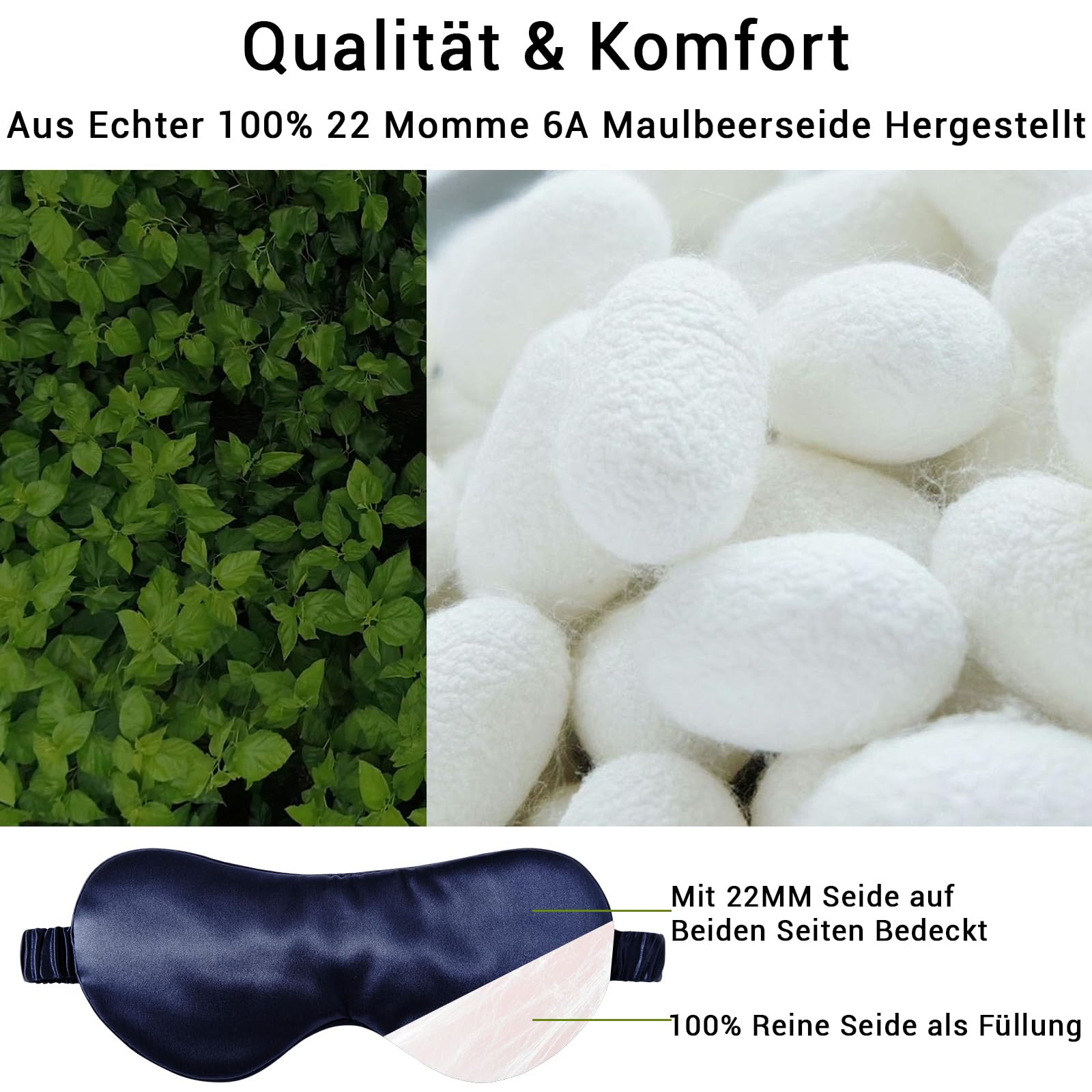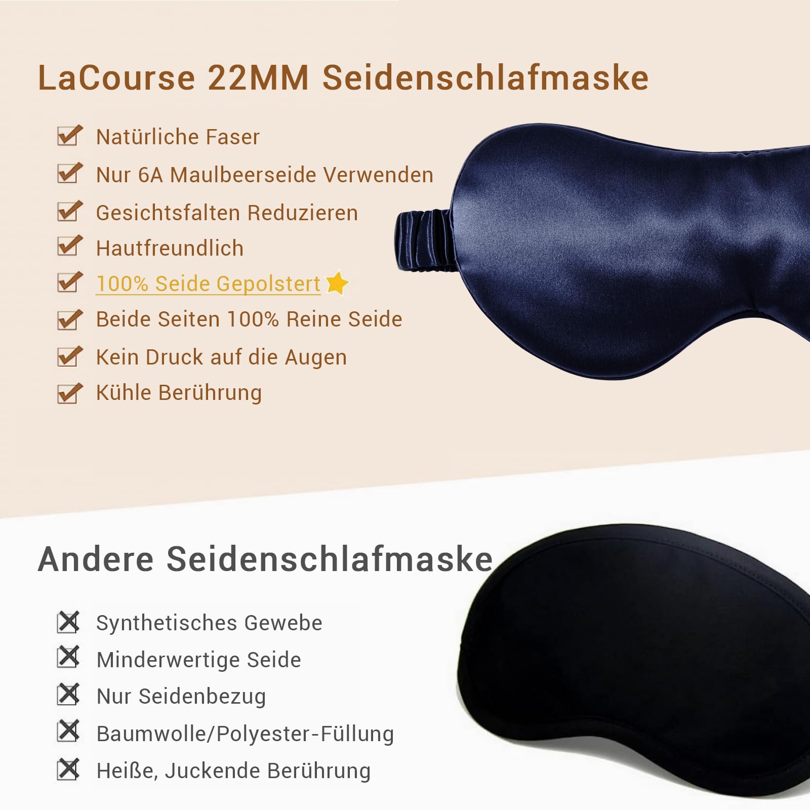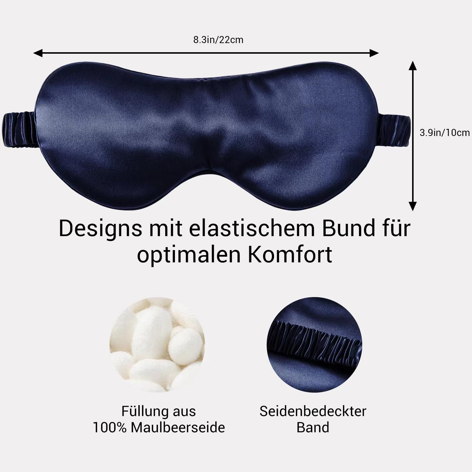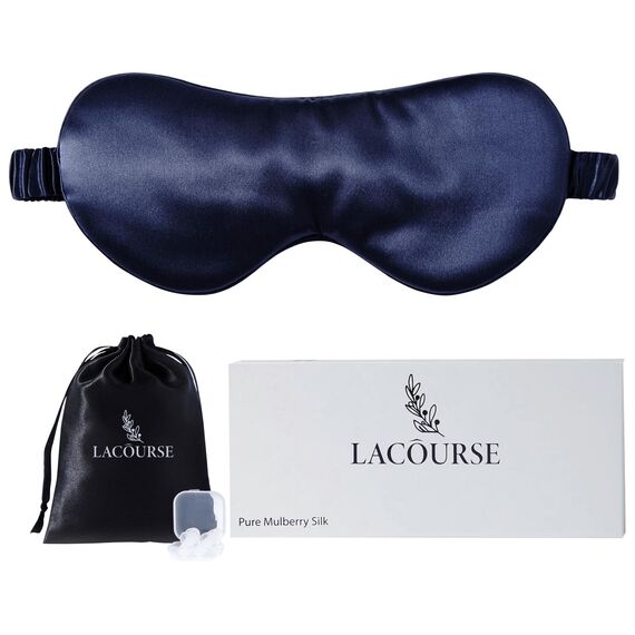 LaCourse 22 Momme Schlafmaske aus 100% natürlicher Maulbeerseide, geeignet für Schlaf, Kühle, Bequeme & Verdunkelnde Schlafmaske mit elastischem Seidenband, reiner Seidenfüllung (Marineblau)