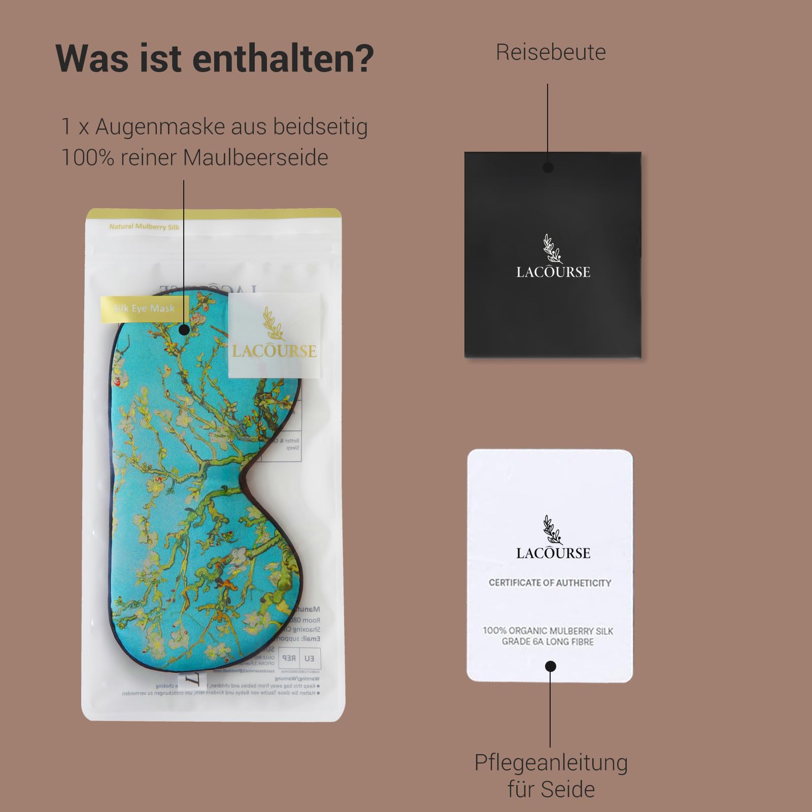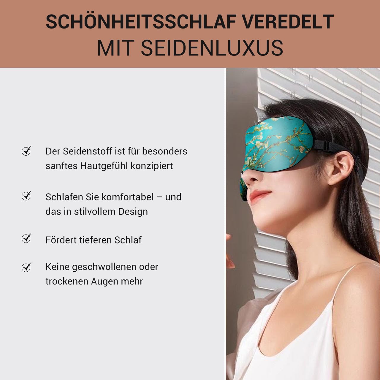 LaCourse 100% Maulbeerseide Schlafmaske mit Reisetasche. Beide Seiten Echte 19 Momme Seide, Verstellbare Augenmaske für Frauen, Grün-Blumig
