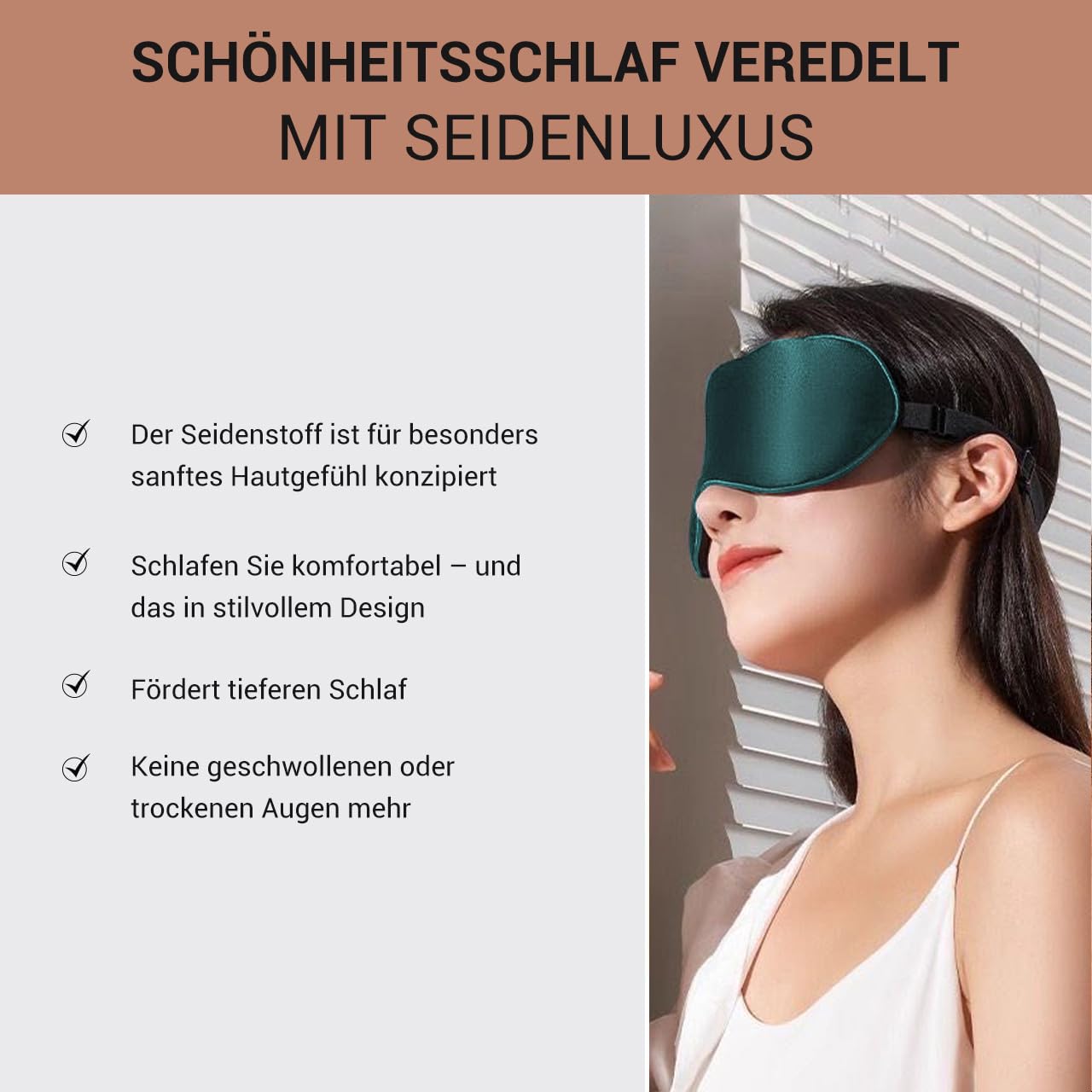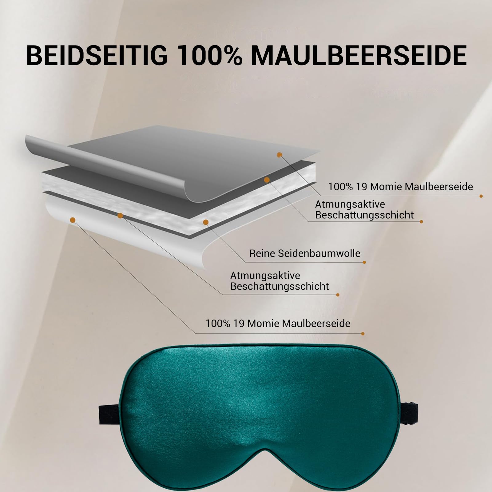 LaCourse 100% Schlafmaske Seide Bio zum Schlafen mit Reisetasche. Beide Seiten aus 19 Momme Seide, Verstellbare Augenmaske Schlafmaske für Frauen & Herren, Schwarzgrün