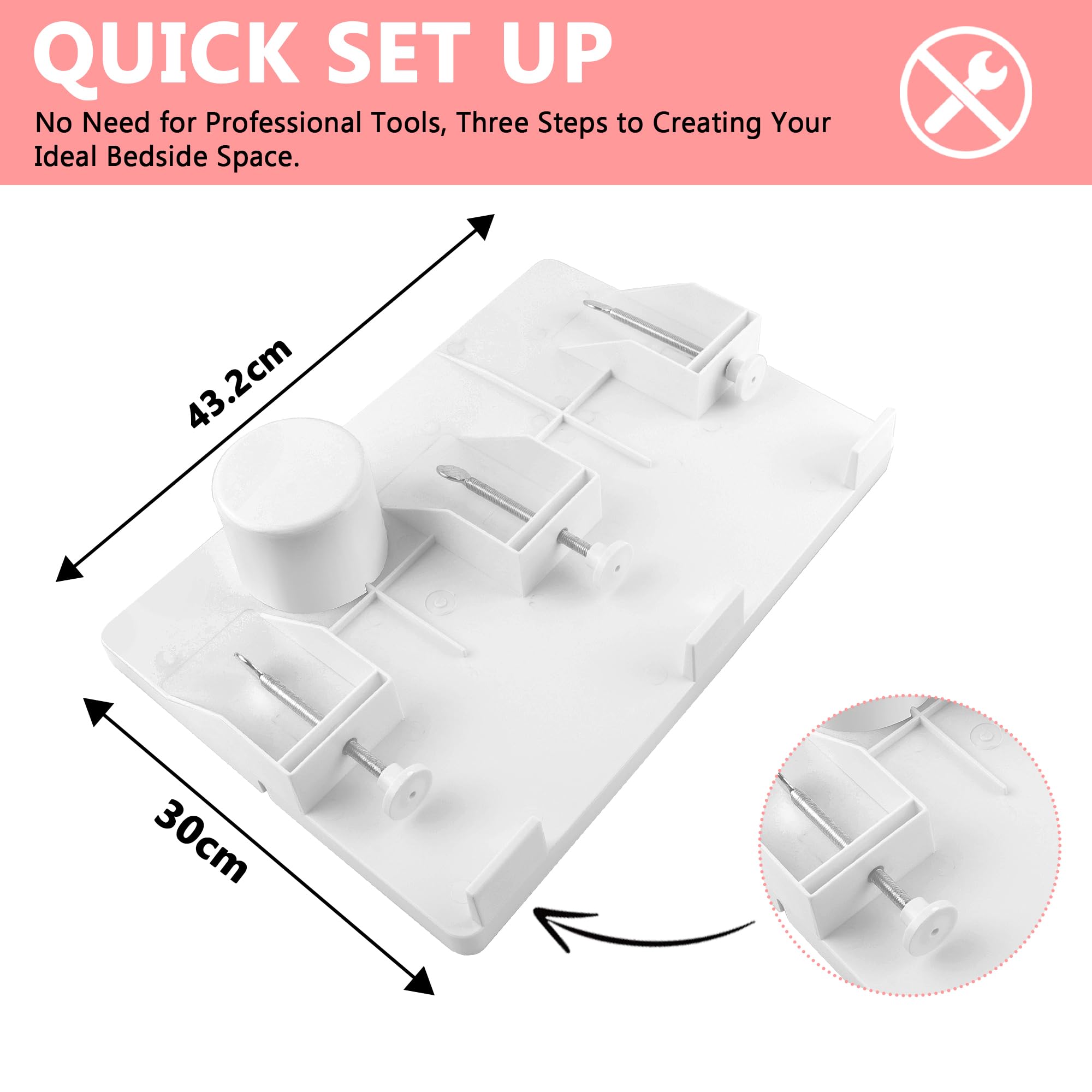 - 【Optimale Abmessungen】Das klappbare Nachttischgestell misst 43×30 cm und bietet ausreichend Stauraum für Elektronikgeräte, Bücher, Wecker, Taschentücher und andere Alltagsgegenstände. Alles ist griffbereit, ohne dass Sie das Bett verlassen müssen.