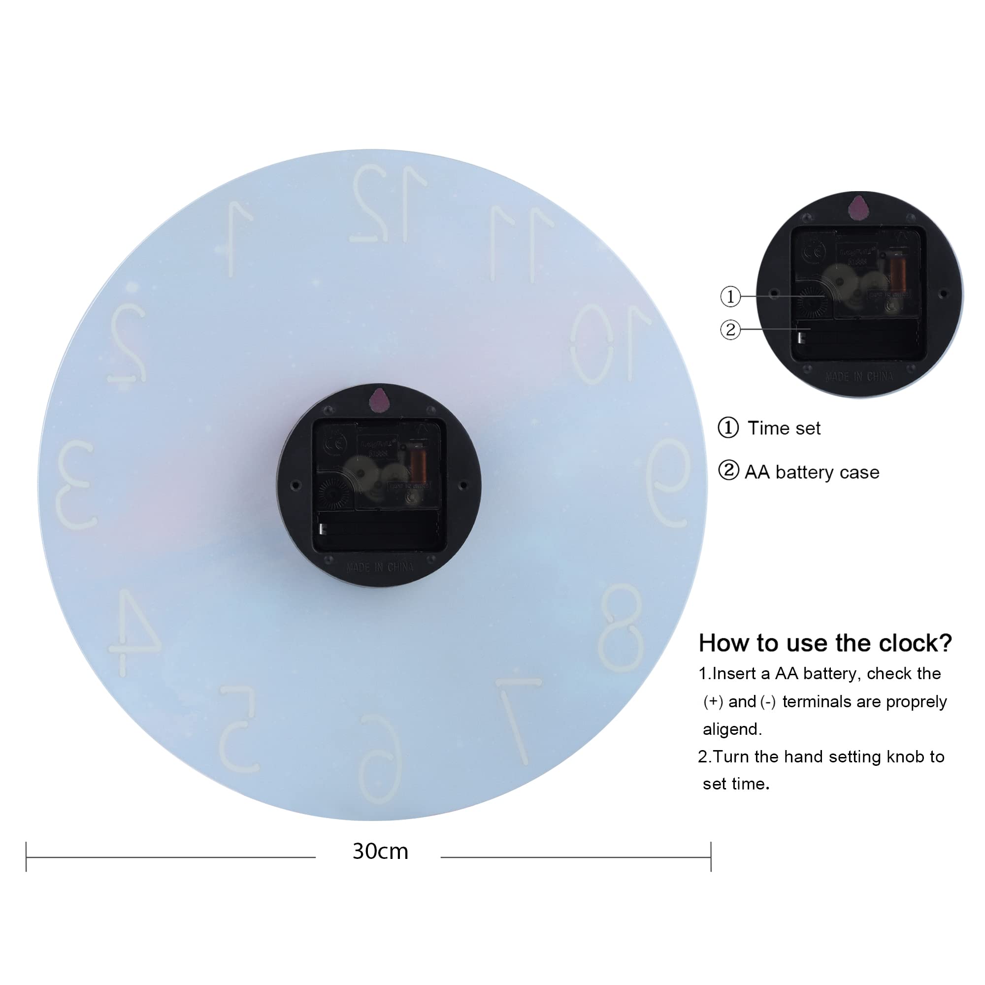 Lafocuse 30cm Wanduhr Glas Ohne Tickgeräusche, Kreativ Milchstrasse Stylisch Modern, Qualität Quarzuhr Deko für Wohnzimmer Schlafzimmer Küche