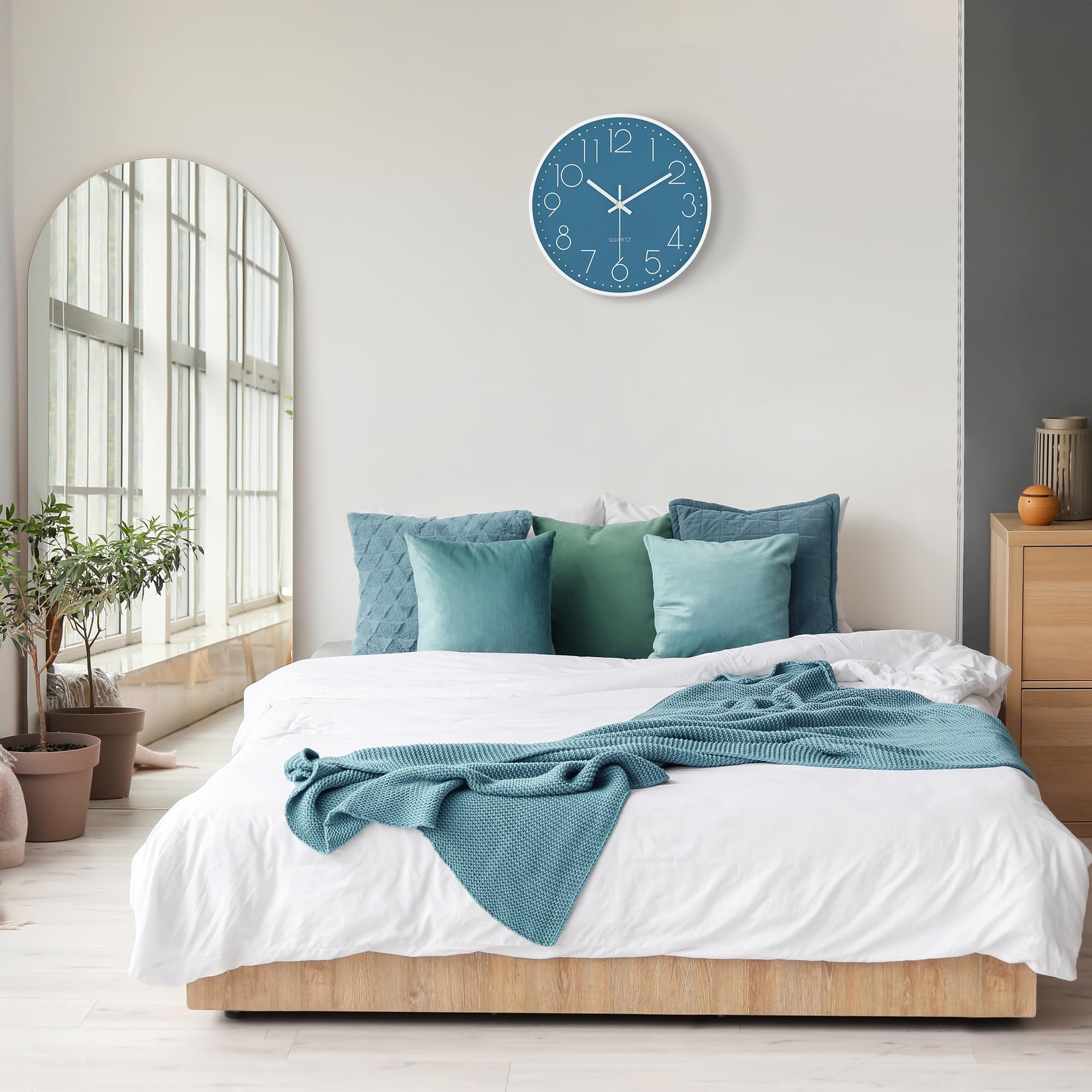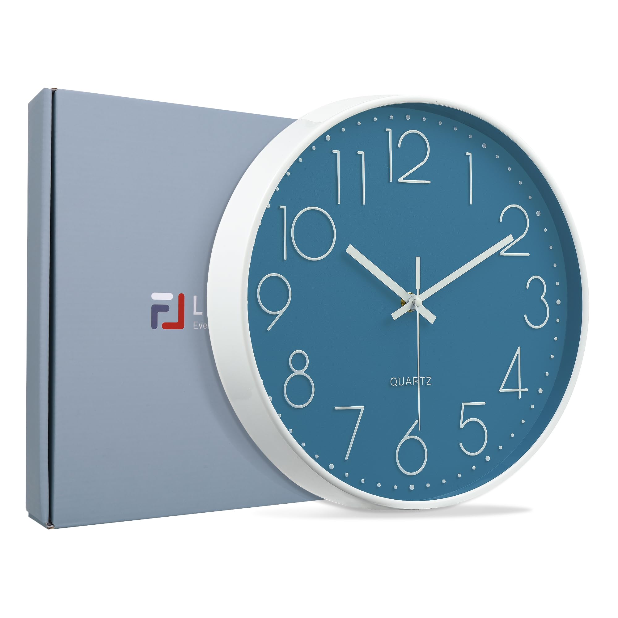 Lafocuse 3D Ziffern Lautlos Wanduhr Cerulean Blau, 30cm Modern Leicht Ablesbar Küchenuhr, Ohne Tickgeräusche Wanduhr Analog Deko für Wohnzimmer Büro Küche