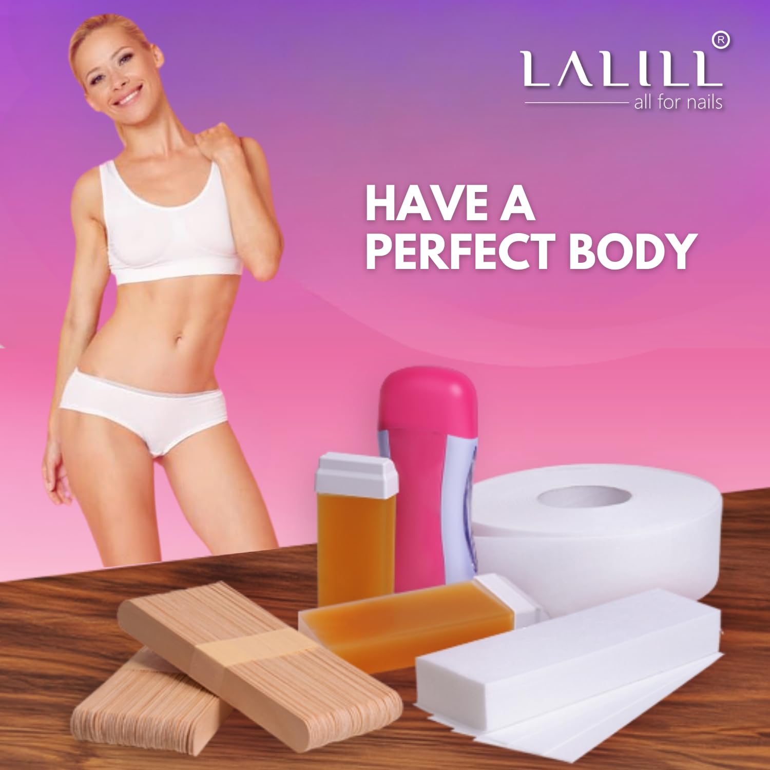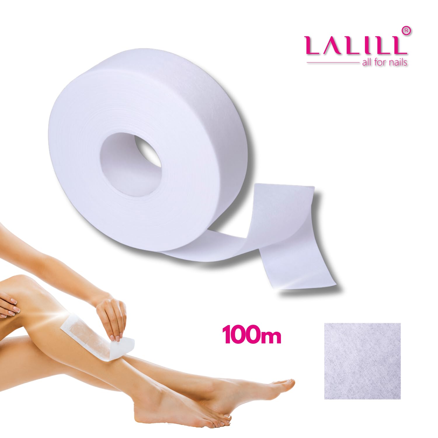 LALILL Vlies auf 1 Rolle für Wachs - WAX, weiss, 100 m x 7 cm - Vliesrolle für Warmwachs, Zuckerwachs, Zuckerpaste, Sugaring, abreissbare Enthaarungsstreifen, Epilation