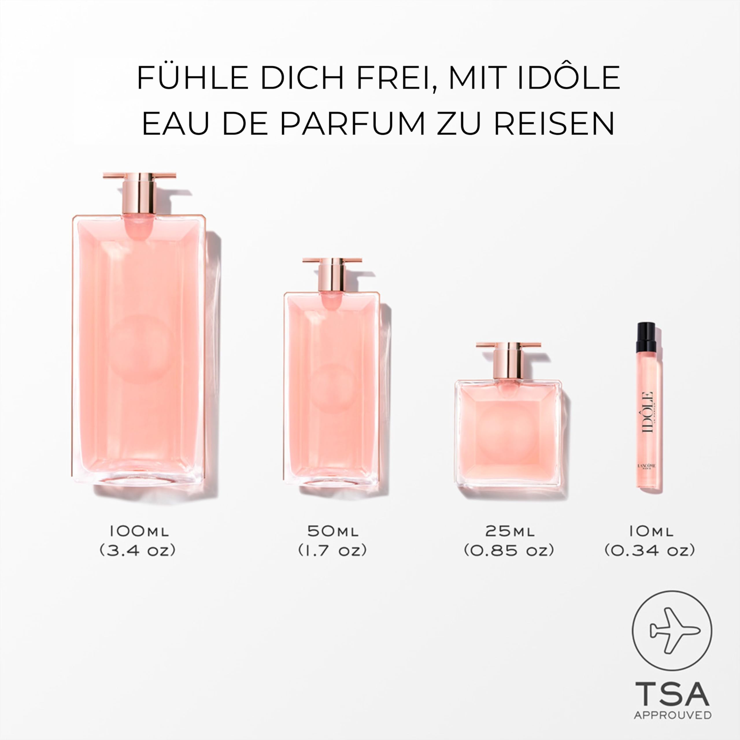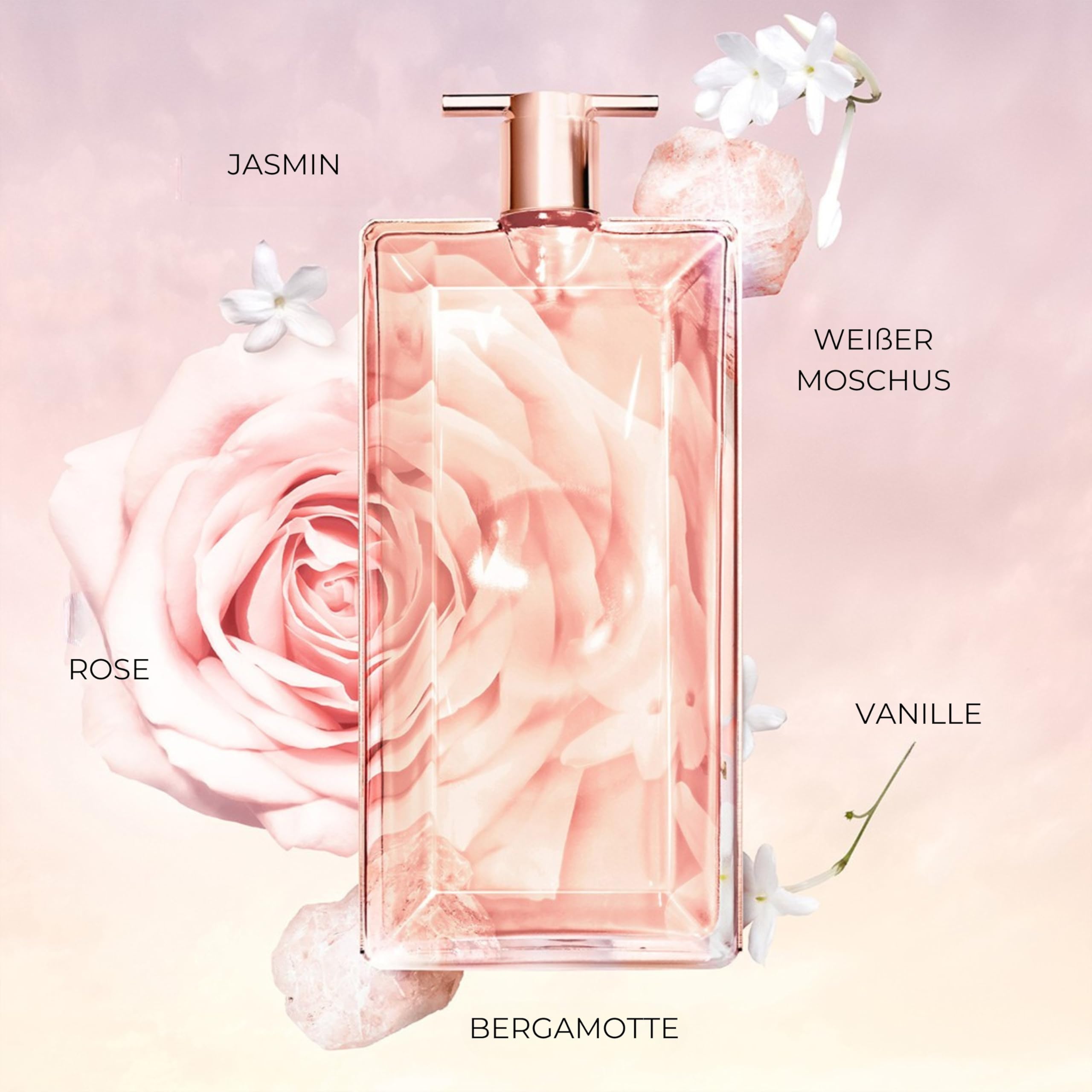 Lancôme Idôle Eau de Parfum, femininer, strahlender Duft mit Rose, Jasmin und Chypre-Akkord, nachhaltig und nachfüllbar