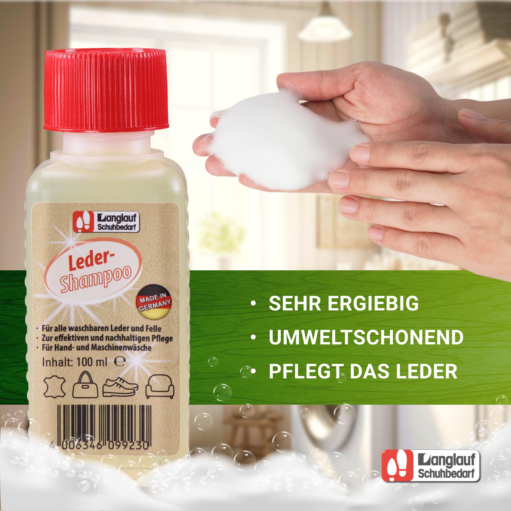 Selbst bei empfindlichen Fellen bleibt die Struktur erhalten – völlig ohne harte Stellen oder Brüche. ????️ Do-it-yourself Lederreinigung – einfach und effektivSo bekommst Du perfekte Ergebnisse wie ein Profi:Stark verschmutzte Stellen im Handbad einweichen.Mit einer weichen Bürste sanft vorbehandeln.Lauwarm waschen (Handwäsche oder Maschine).Restschaum nicht vollständig ausspülen – er pflegt beim Trocknen nach.Leder liegend glattziehen und mehrfach nachziehen.Glattleder anschliessend mit geeigneter Lederpflege nachbehandeln.Rauh- und Veloursleder nach dem Trocknen mit einer Bürste aufbürsten.✨ Ergebnis: saubere Farbe, weiche Struktur, frisches Gefühl.???? 100 ml Hochkonzentrat – extrem ergiebig und umweltfreundlichEine Flasche reicht für mehrere Waschgänge.Milde, nachhaltige und ressourcenschonende Formel.Deutlich günstiger als die Spezialreinigung im Fachbetrieb. Mit diesem Reiniger lässt sich fast jedes Leder wieder auffrischen und schützen – ein Must-have für alle, die Leder lieben.