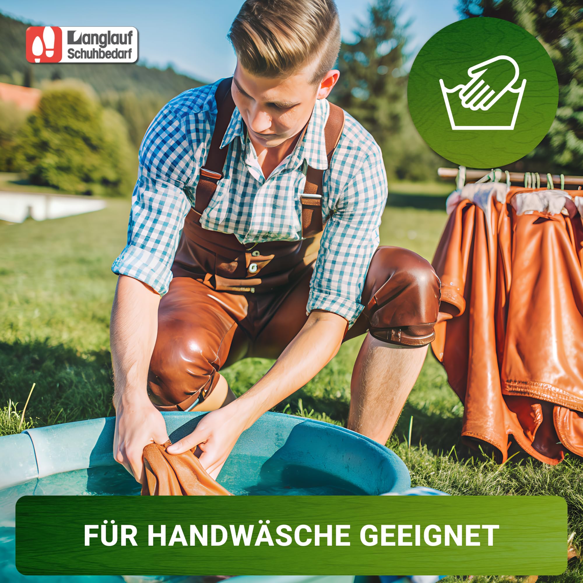 Dabei bleibt das Leder weich, geschmeidig und farbfrisch – ganz ohne Austrocknen oder Verhärten. ???? Warum dieses Lederwaschmittel? Weil Dein Leder mehr verdient.Reinigt gründlich: entfernt Schmutz, Staub, Hautfette und Gerüche – selbst bei stark belasteten Partien wie Kragen, Bündchen oder Revers.Rückfettende Formel: pflanzliche Kokos- und Lanolin-Derivate sorgen dafür, dass Leder weich bleibt, Feuchtigkeit speichert und wieder natürlich aussieht.Frischt Farben auf: verschmutzte oder matte Oberflächen erhalten sichtbar neue Lebendigkeit.Sanft zu sensiblen Materialien: ideal für Lammfell, Wildleder, Velours, Glattleder und gemischte Textilleder.Ohne Schrumpf-Risiko: bei richtiger Temperatur wird Dein Leder nicht hart, nicht brüchig und nicht kleiner.Handwäsche und Maschine: absolut unkompliziert, umweltfreundlich und hochergiebig. ???????????? Perfekt für:Motorradbekleidung und Handschuhe ????️Lammfellauflagen, Babyschaffelle, Decken ????Lederjacken, Mäntel, Schuhe, Taschen ????????Wildleder, Velours, matte FelleLeder mit leichten Abschürfungen oder ausgeblichenen Partien???? Profi-Wirkung dank pflanzlicher Rückfettung Die enthaltenen Kokos- und Lanolin-Derivate wirken wie ein Pflegeschutzfilm: