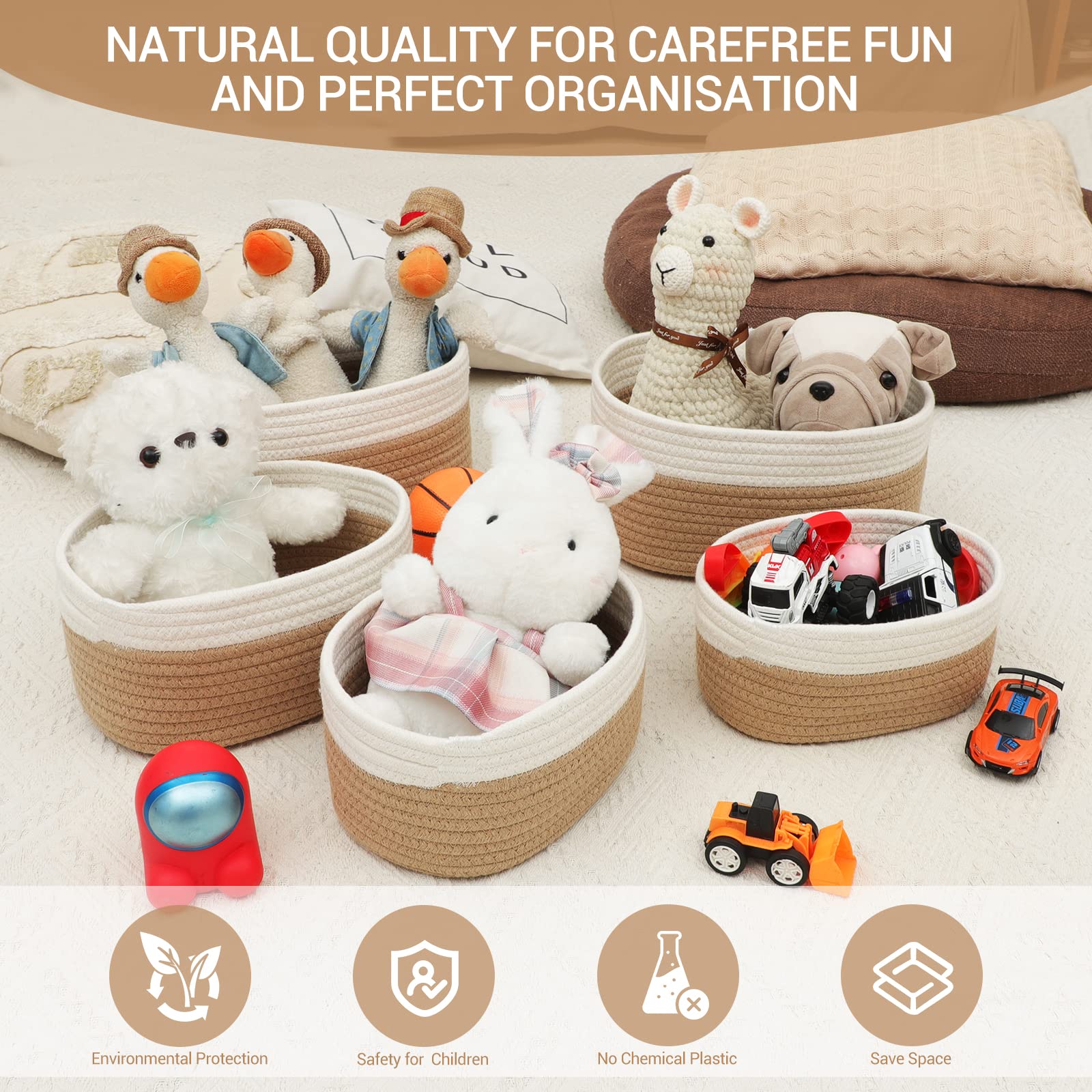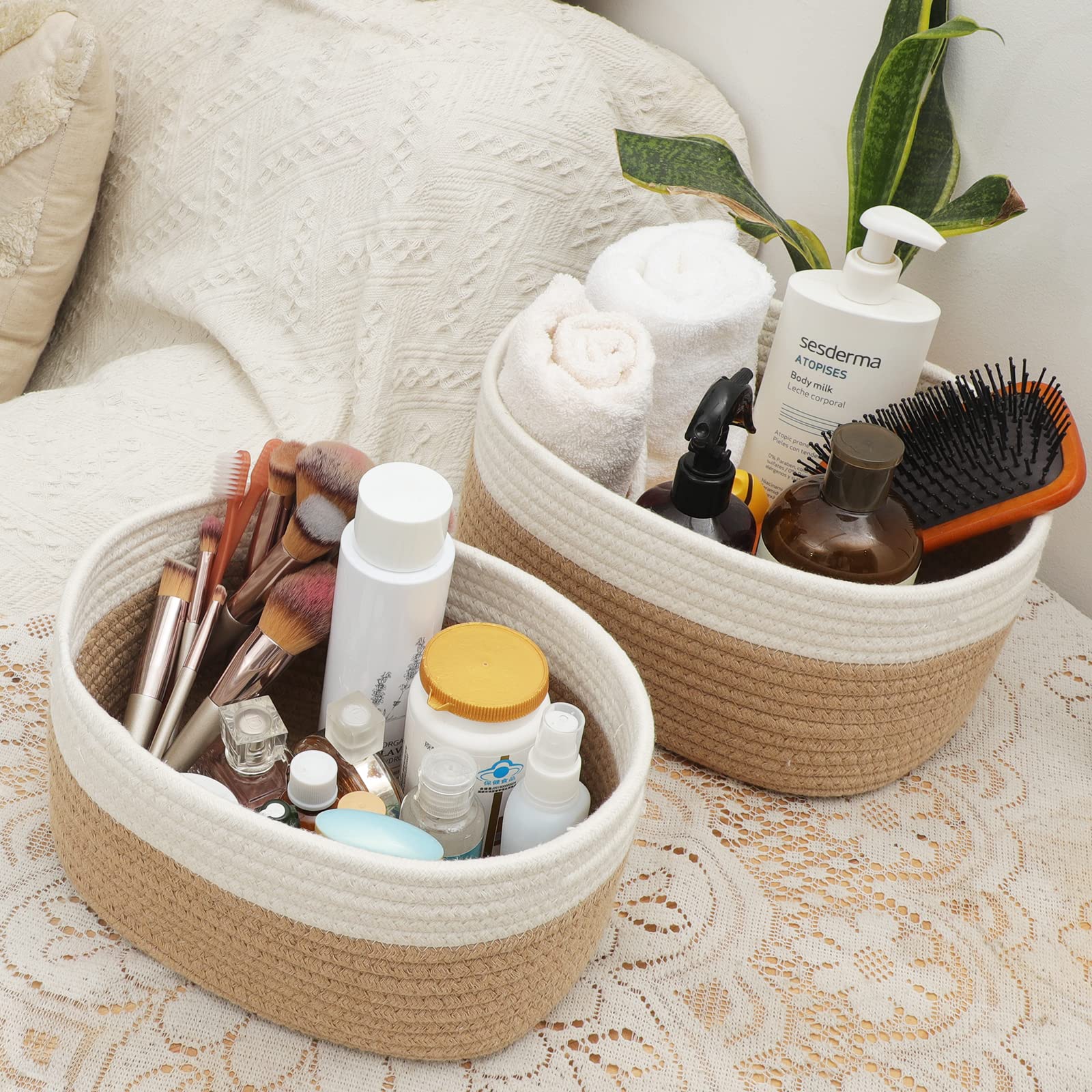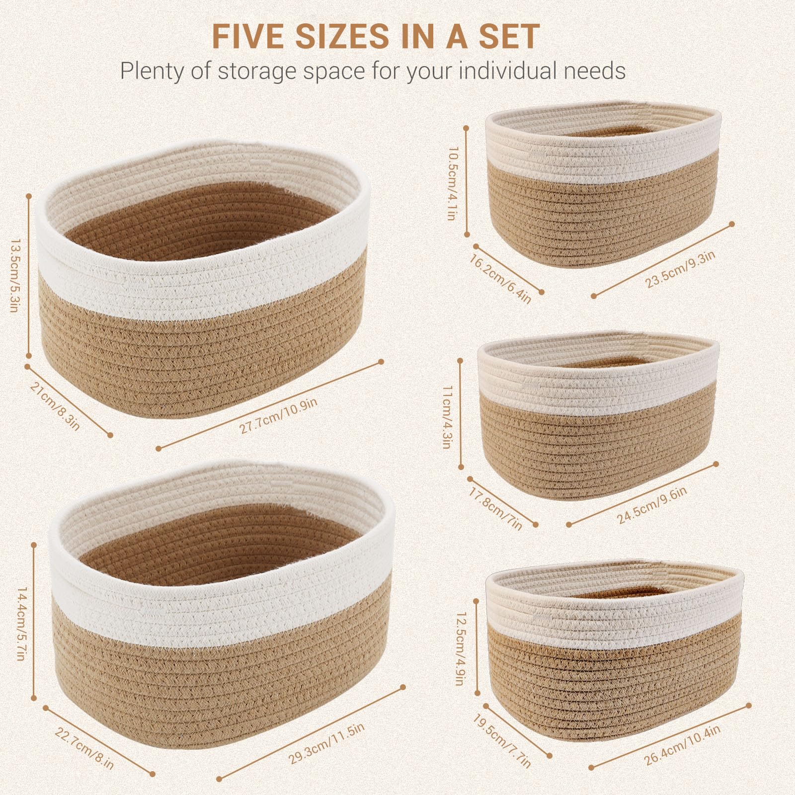 Lannvan Aufbewahrungskorb 5er Set aus Baumwolle,Körbe Korb Geflochten Körbe Aufbewahrung Storage Basket Aufbewahrungskörbe Geflochtener Korb für Bad Badezimmer Kinderzimmer Wickeltisch,Weiss und Jute