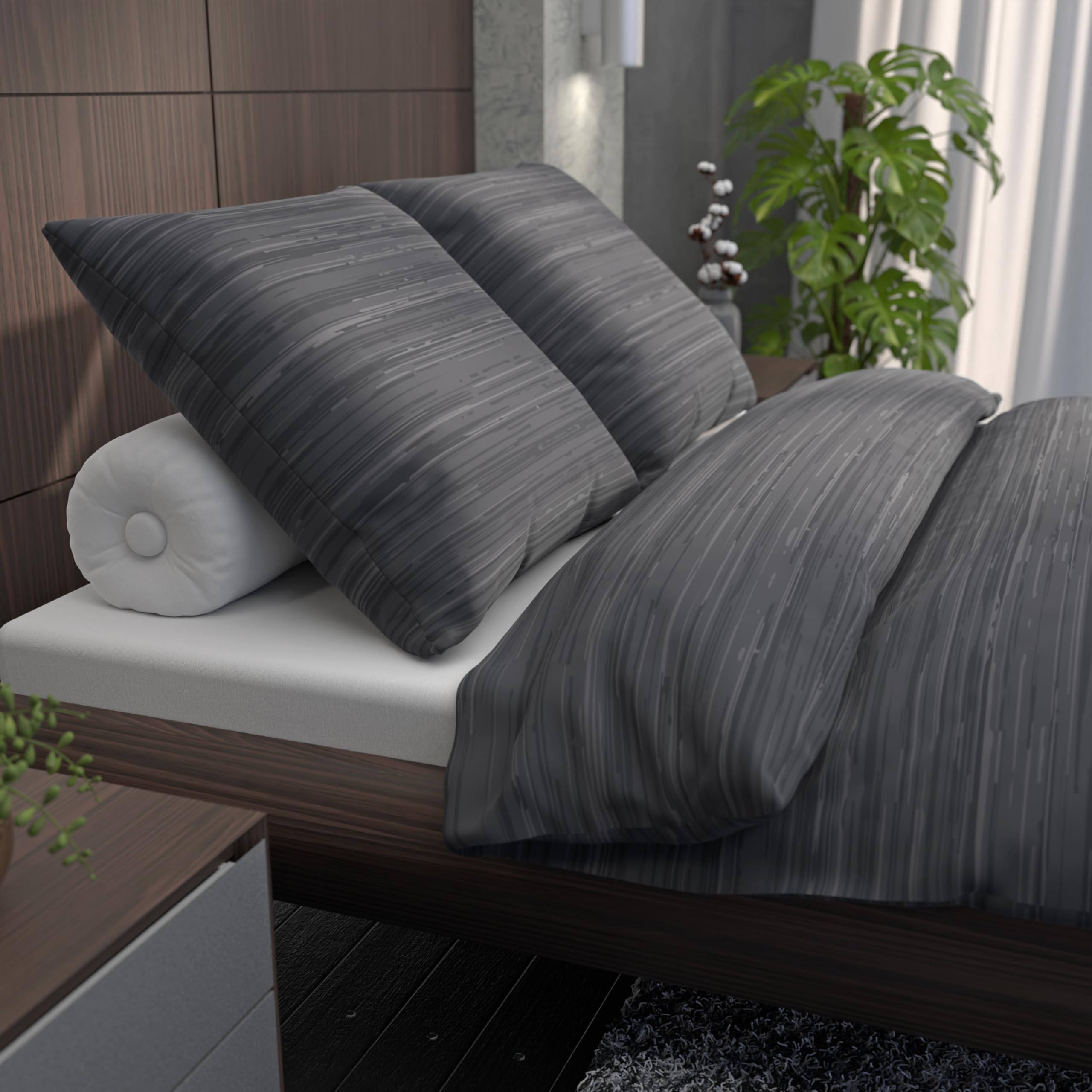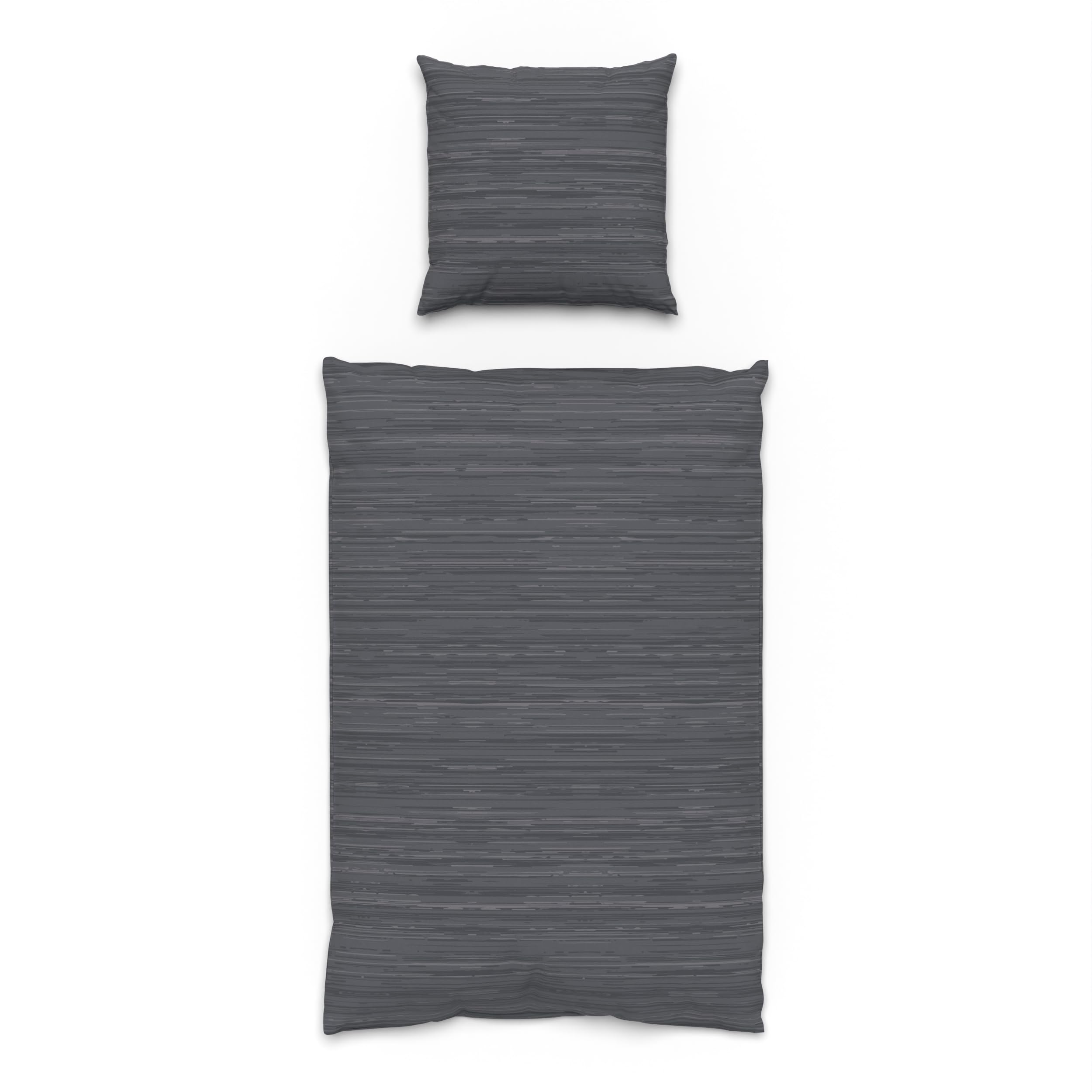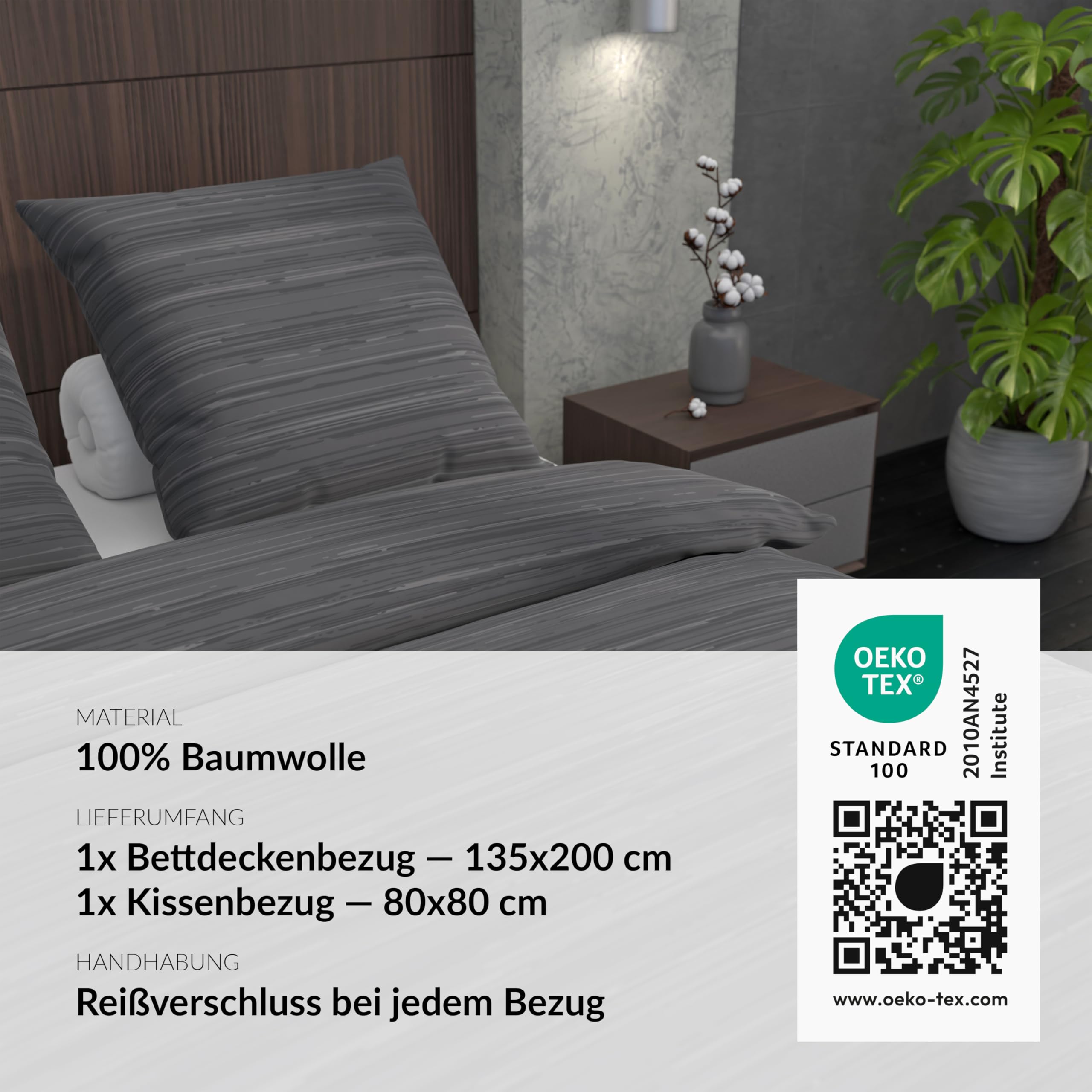 LARAWELL Bettwäsche 135x200 Baumwolle Ganzjahres Bettwäsche-Sets grau getreift Premium