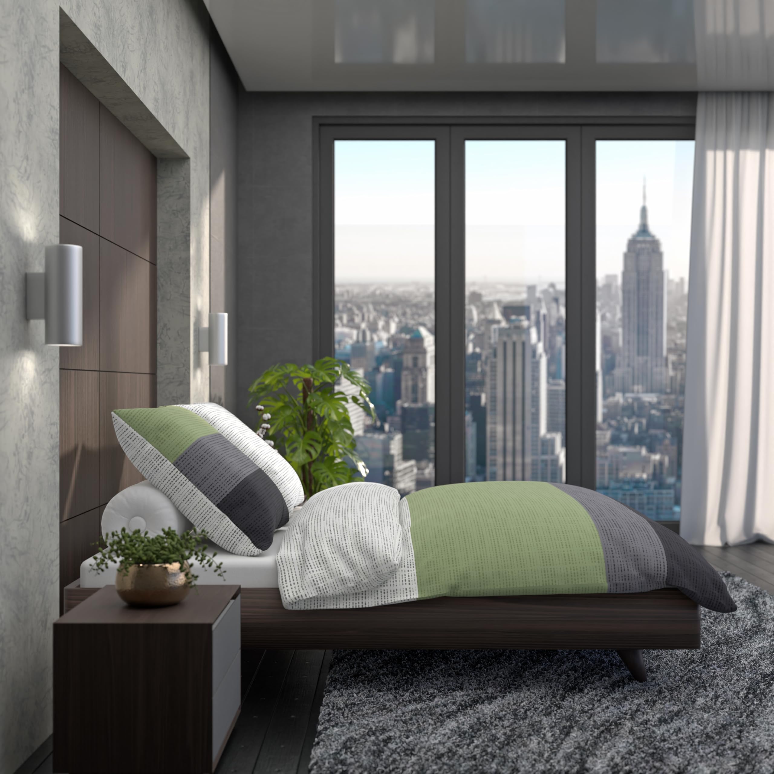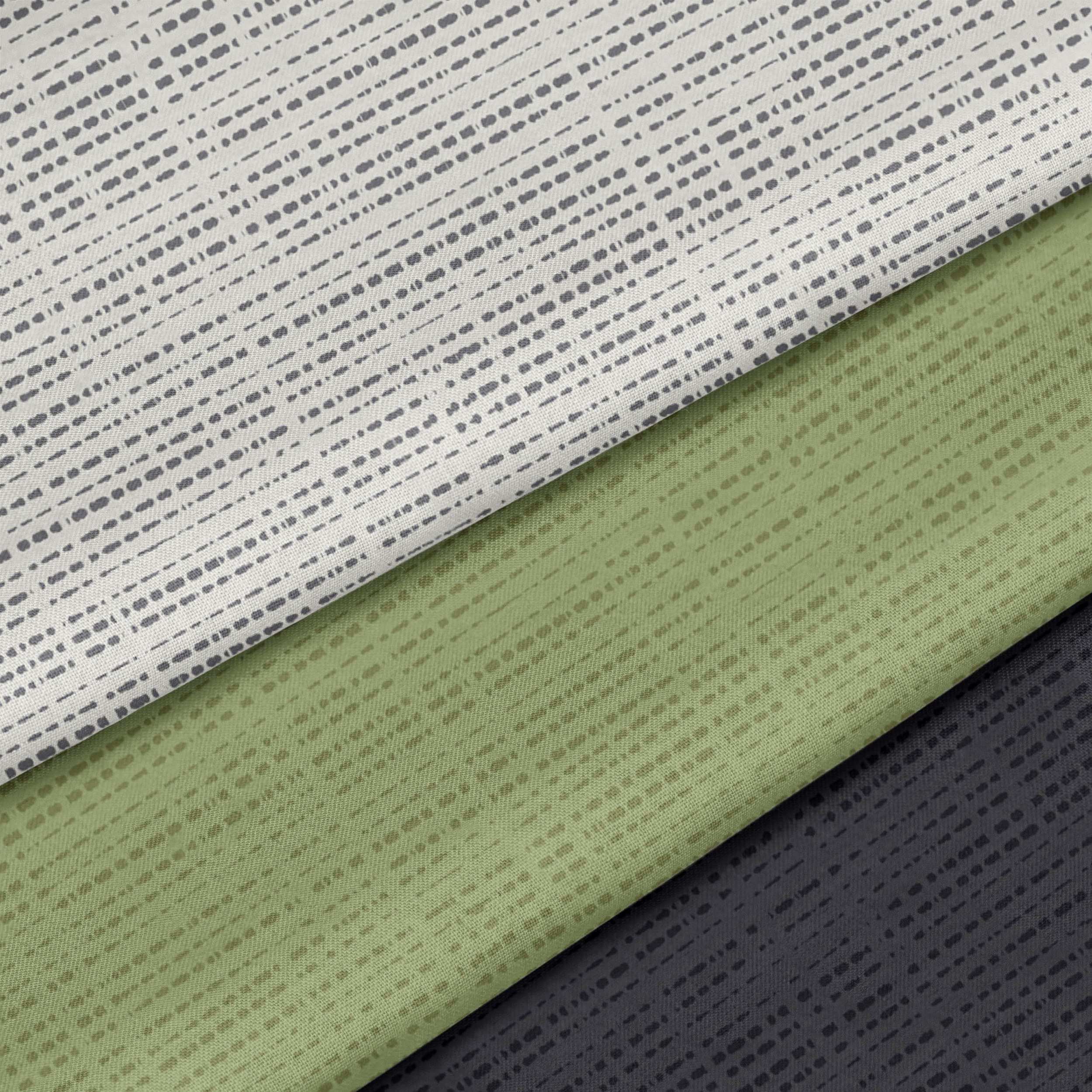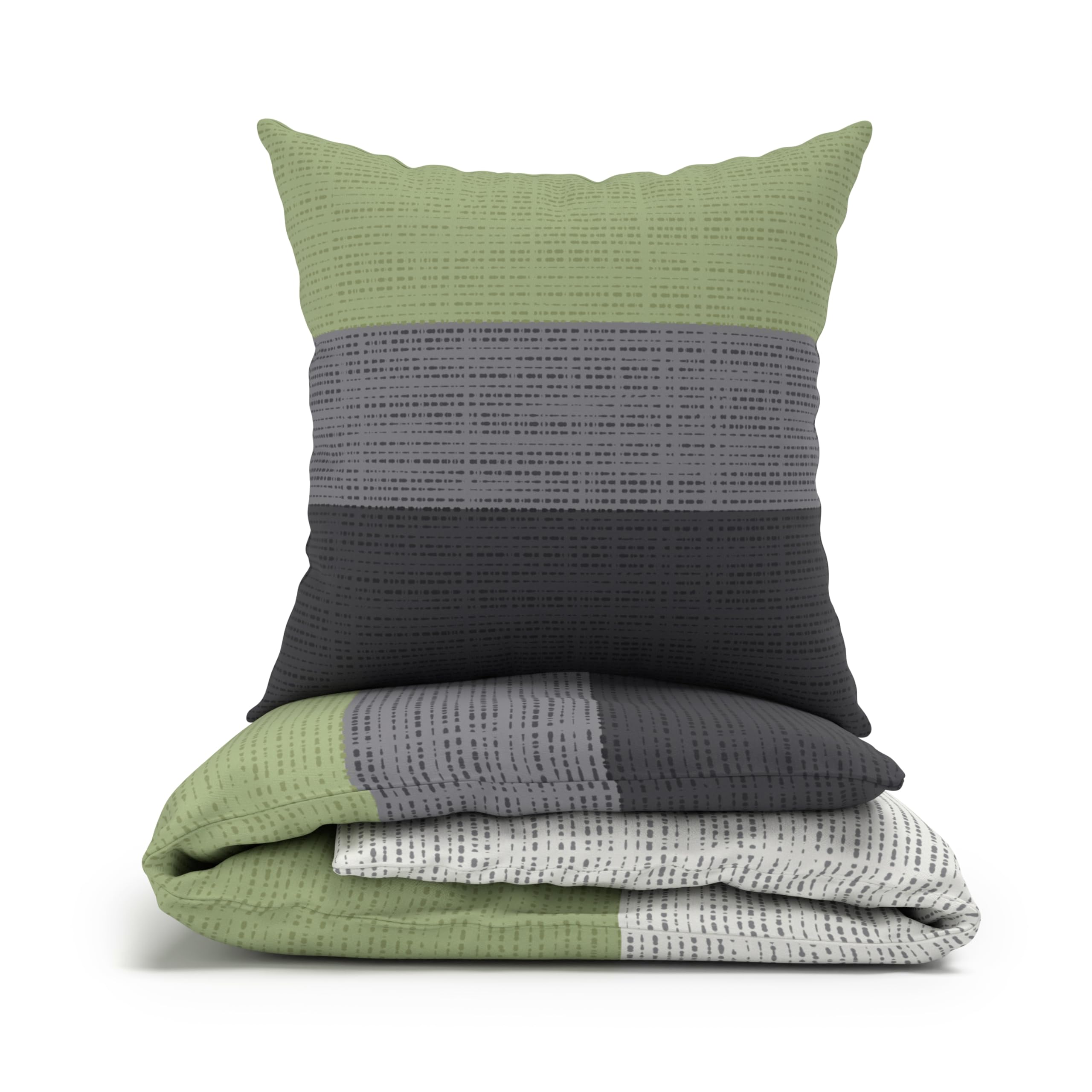 LARAWELL Bettwäsche 135x200 Baumwolle grün grau gestreift Premium