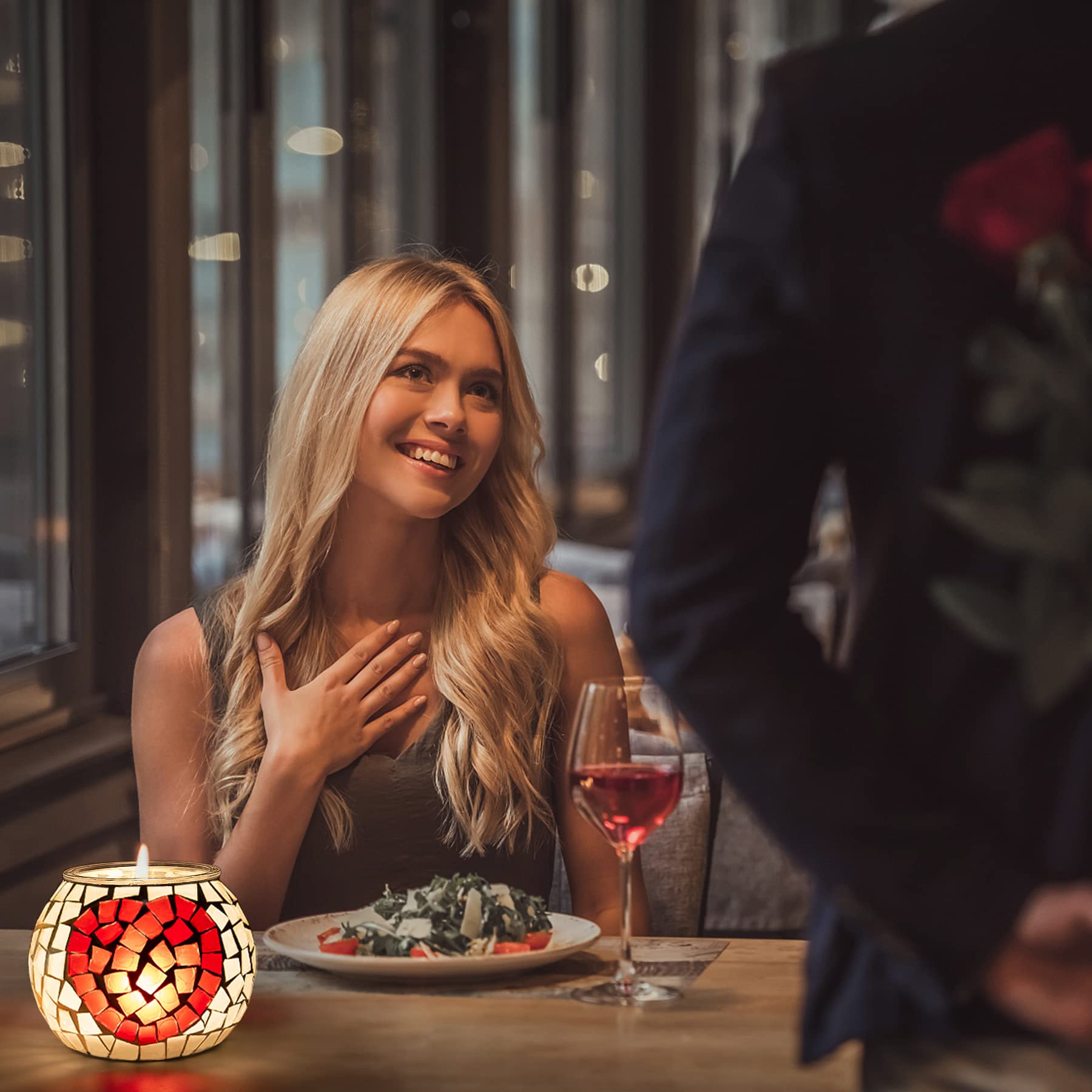 Larcenciel Teelichthalter 4 Stück, Mosaik Kerzenständer Glas Romantischer Teelichtgläser mit Herz- und Blumenmotiv Handgemachte Kerzenhalter, Bunte Teelichtdeko für Geburtstage, Weihnachten, Partys
