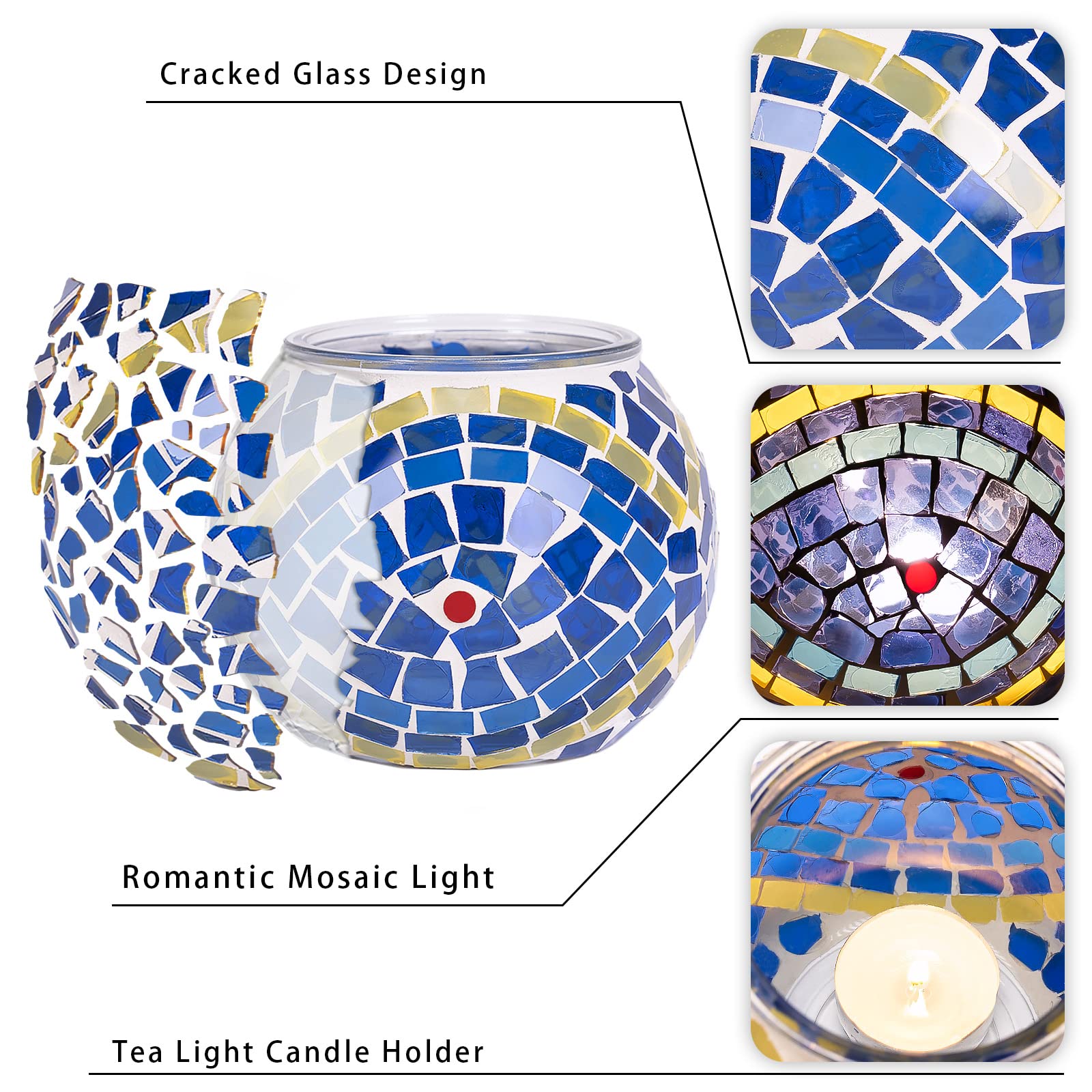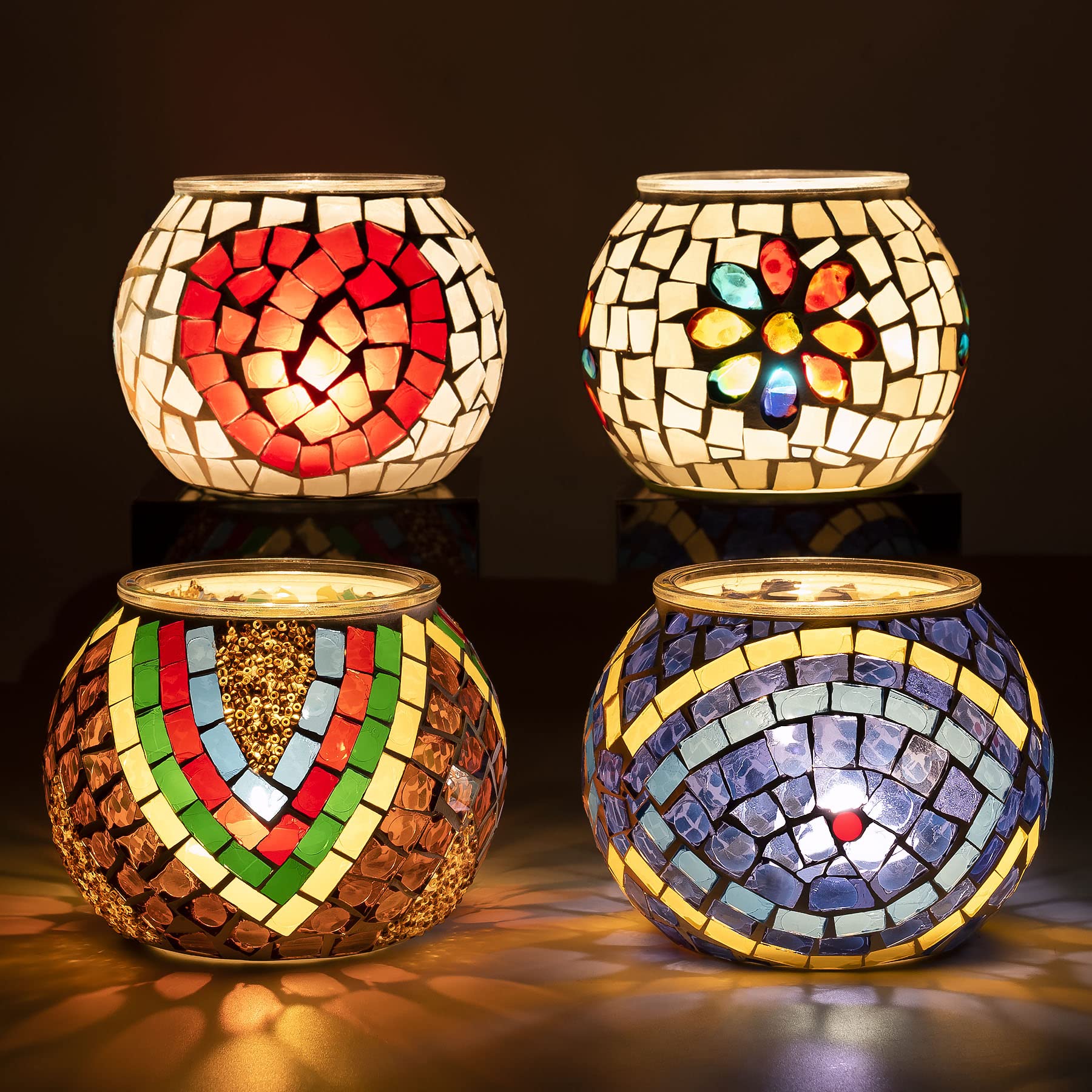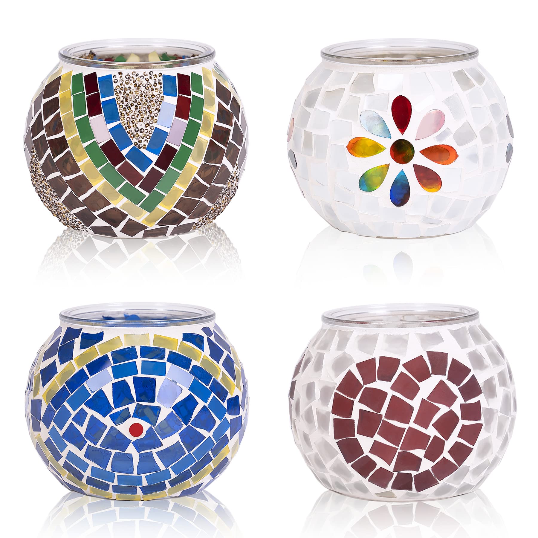 Enthält:4x Mosaik-Kerzenhalter
