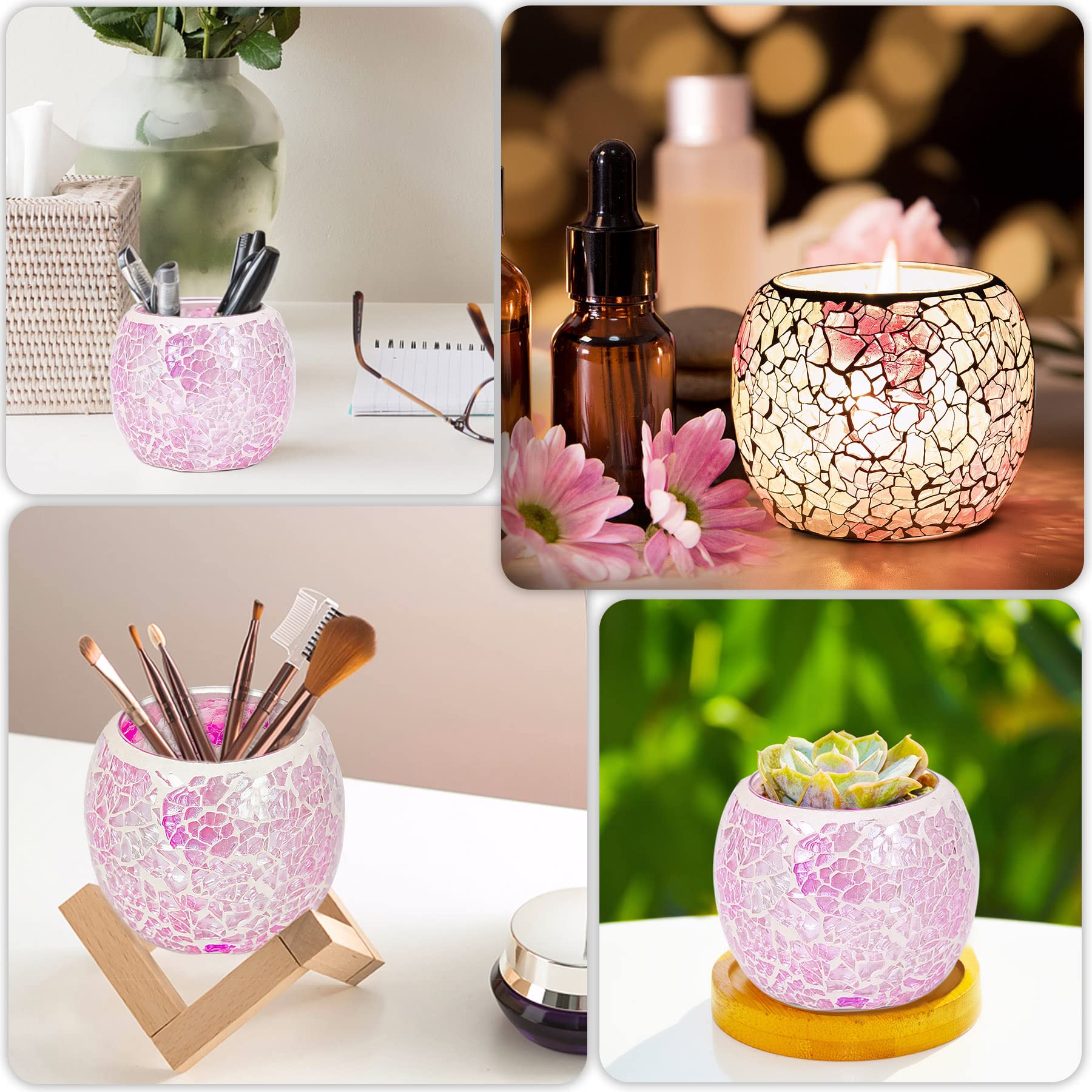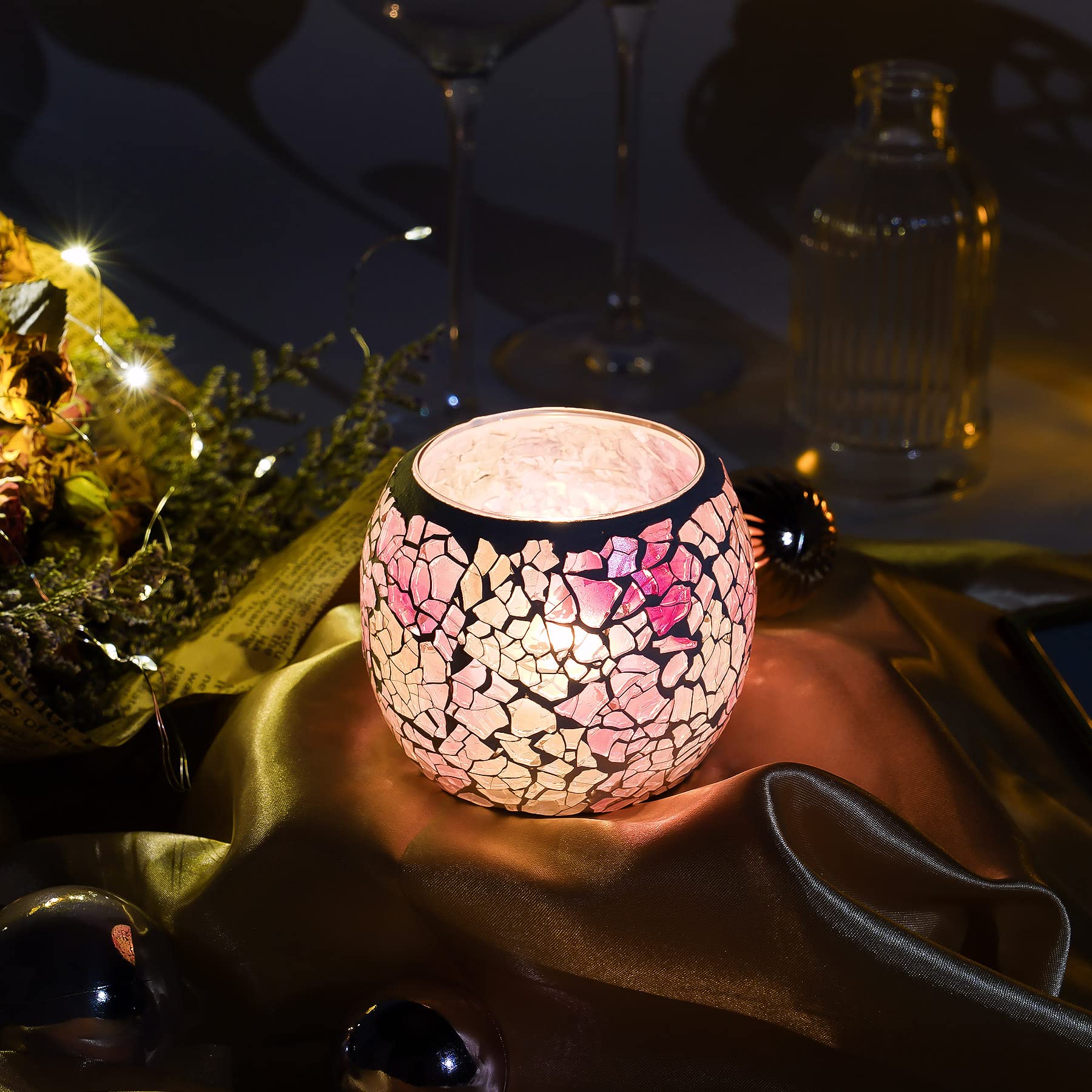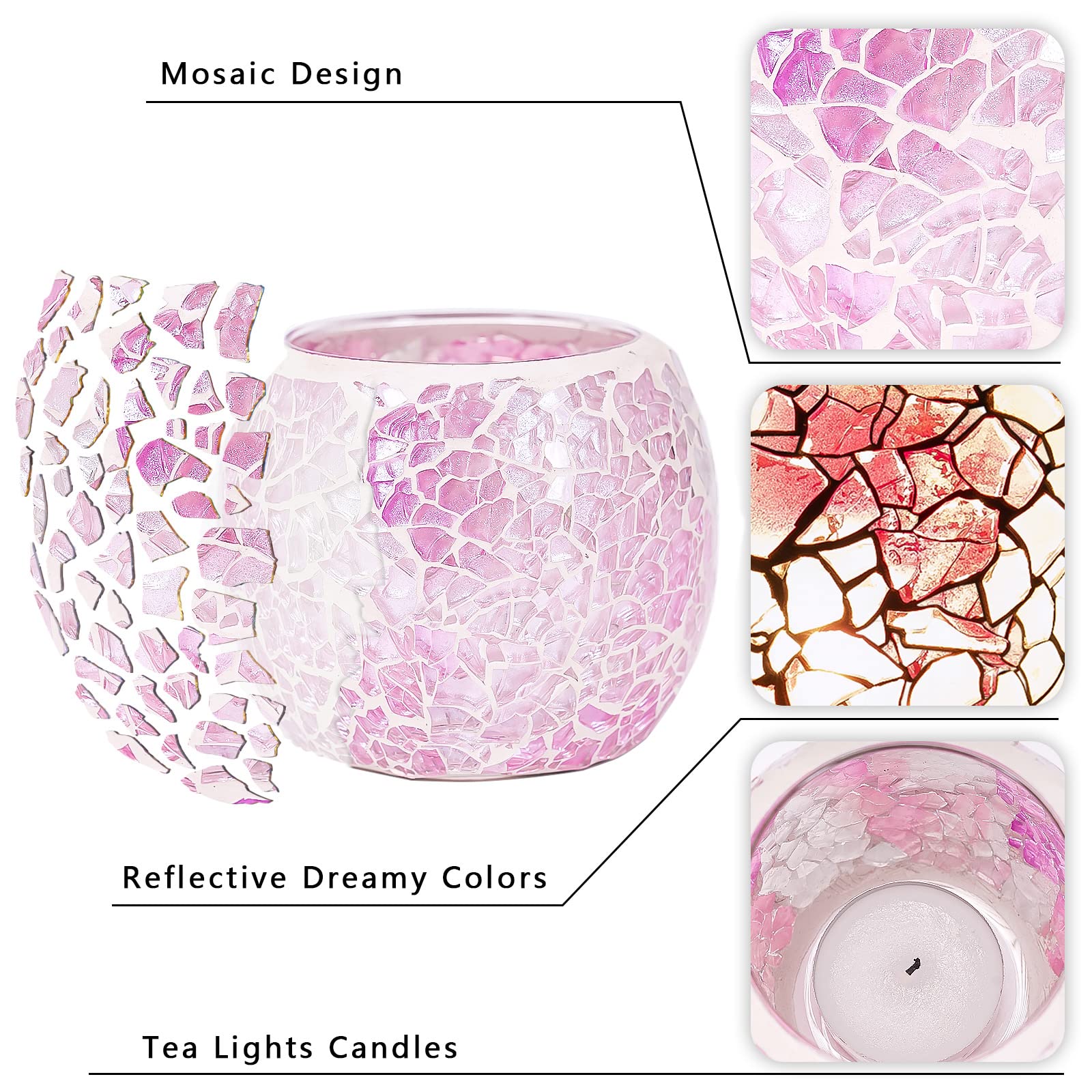 Larcenciel Teelichthalter Rosa, Mosaik Kerzenständer Glas Kerzenhalter für Tischdeko und Hausdekoration, Handgemachte Teelichtgläser Windlichter für Hochzeiten, Partys, Geburtstage, Weihnachten