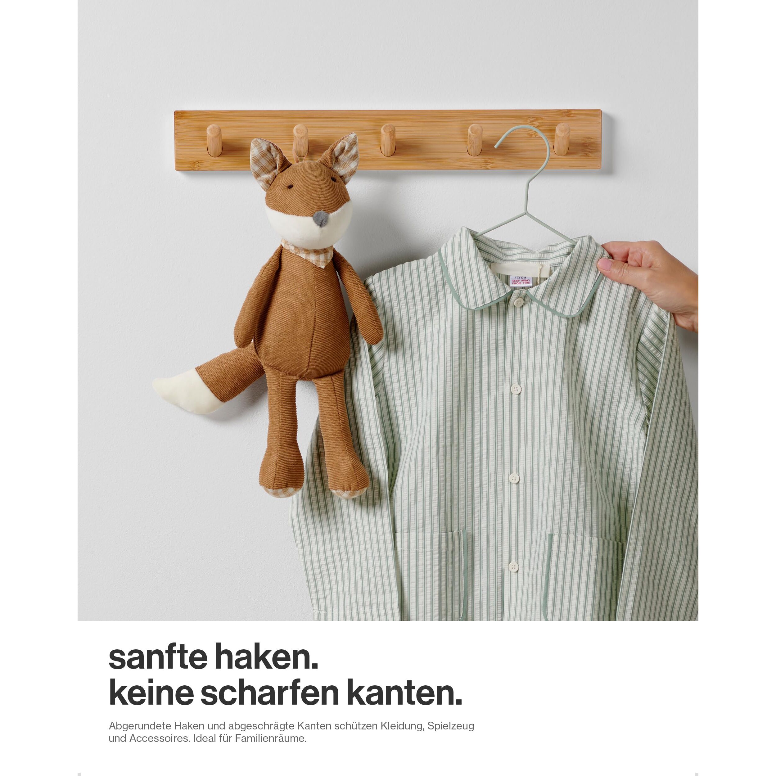 Ideal zur Platzoptimierung in Ihrem Diele, Schlafzimmer, Flur oder Büro. Unser stabiler Wand-Kleiderbügel ist eine unverzichtbare platzsparende Aufbewahrungslösung. Revolutionieren Sie Ihre Organisation zu Hause mit unserer hochwertigen Bambus-Wandgarderobe – eine sinnvolle, modische und nachhaltige Lösung für Ihre Aufbewahrungsdilemma.
