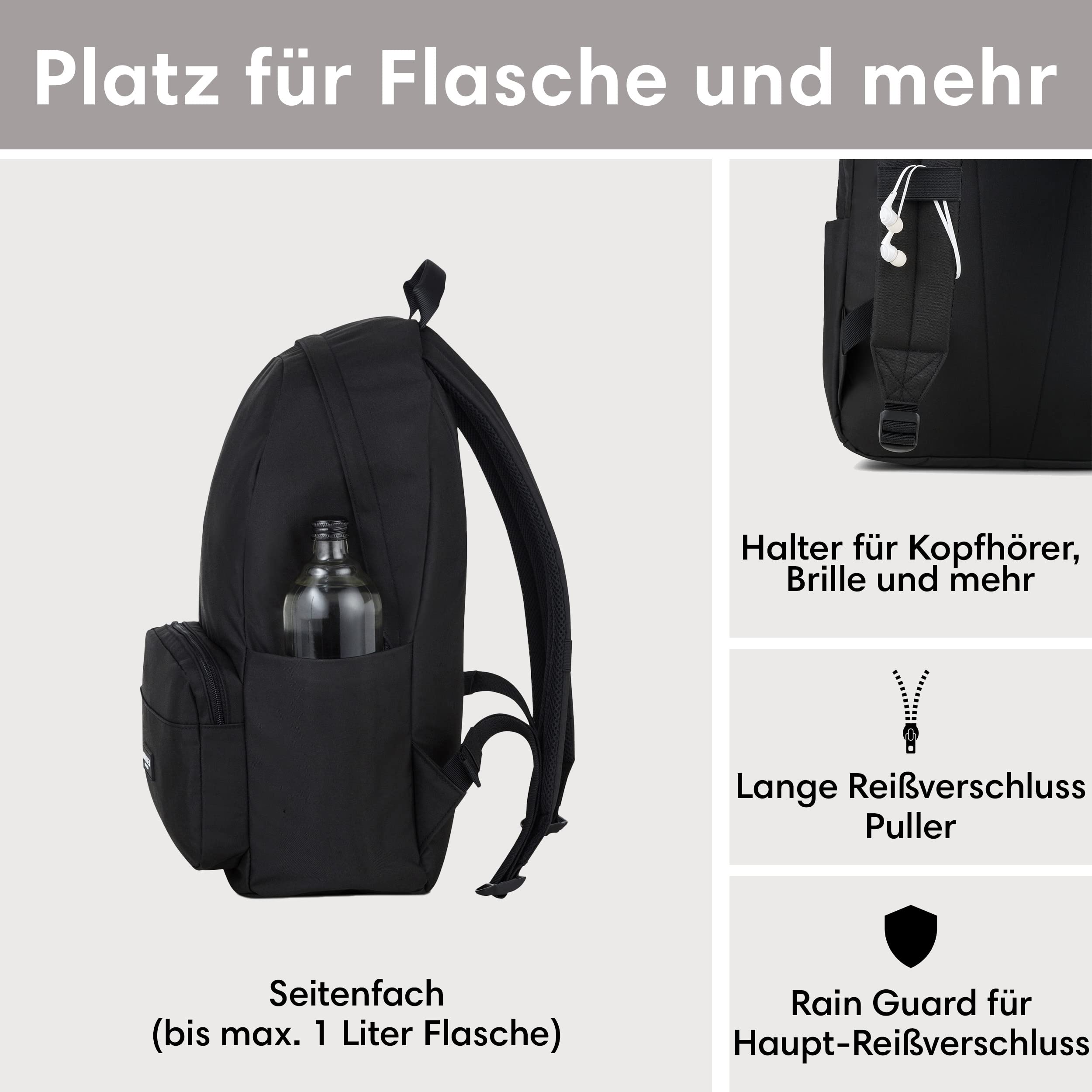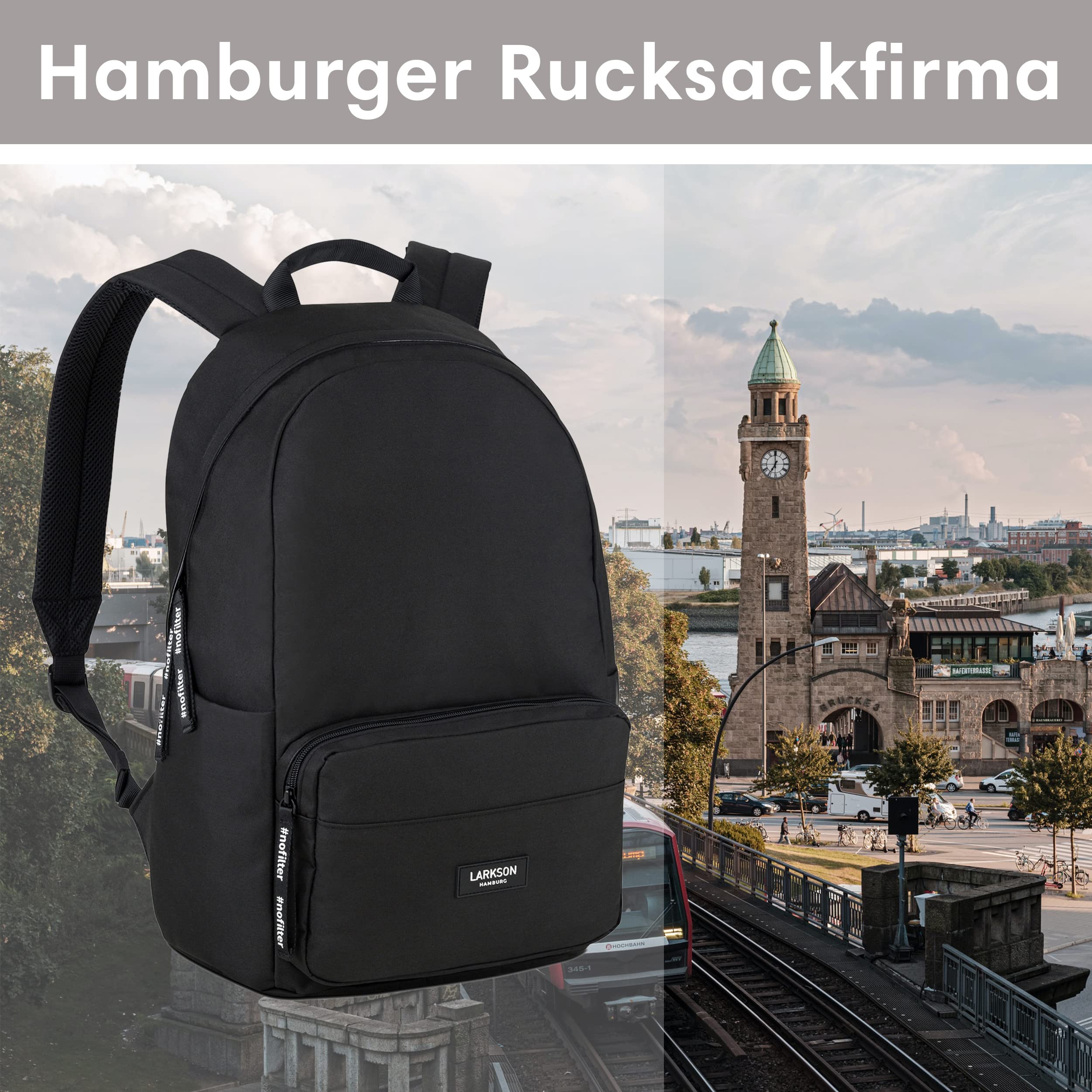 LARKSON Schulrucksack Mädchen & Jungen Teenager Schwarz - No 3 - Rucksack Damen & Herren für Schule - 16" Laptopfach - Aus Recyceltem PET - Wasserabweisend