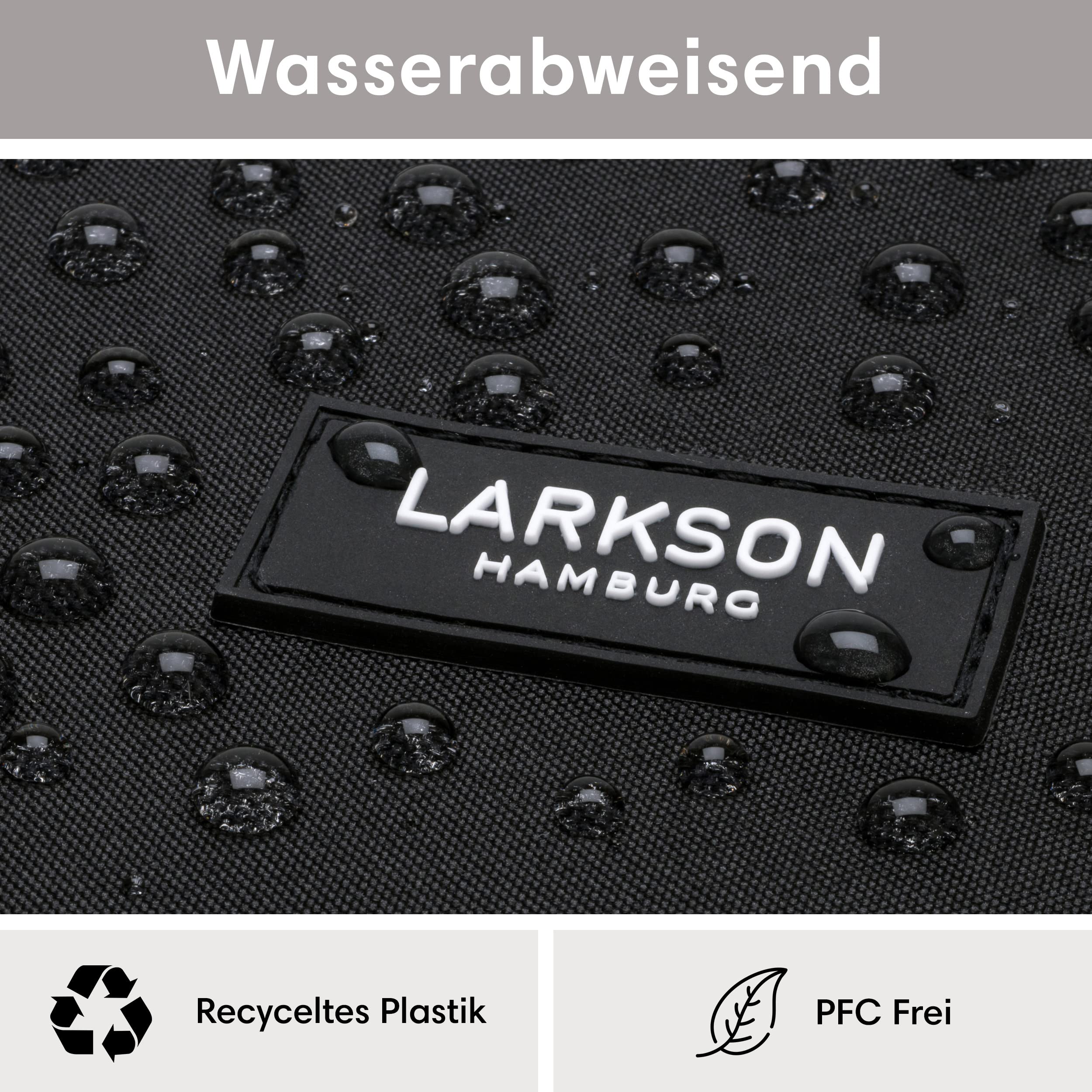 Moderner LARKSON Rucksack für die Schule, Uni und FreizeitDer LARKSON Tagesrucksack ist mit seinem modernen Look und angesagtem Printdesign ein idealer Begleiter für Mädchen und Jungen.Im grossen Hauptfach des Rucksacks befindet sich ein gepolstertes Laptopfach für Geräte bis 16 Zoll und zwei Fächer für Kleinigkeiten. An den Aussenseiten sind Einsteckfächer für eine Trinkflasche, Regenschirm etc. vorhanden. Zusätzlich gibt es noch ein Reissverschlussfach mit Schlüsselbefestigungshaken auf der Vorderseite. Die Träger sind weich gepolstert und haben an einer Seite ein Gummiband zur Befestigung von Kopfhörern oder Sonnenbrille. Der Aussenstoff sowie das Innenfutter des LARKSON Rucksacks bestehen aus Polyester, das aus recycelten PET-Flaschen hergestellt wurde. Eine TPE-Beschichtung auf der Rückseite des Aussenstoffs sorgt für zusätzliche Stabilität. Zum Imprägnieren wird ein PFC-freies Mittel genutzt, damit keine Schadstoffe in die Umwelt gelangen.HighlightsModernes & praktisches Design