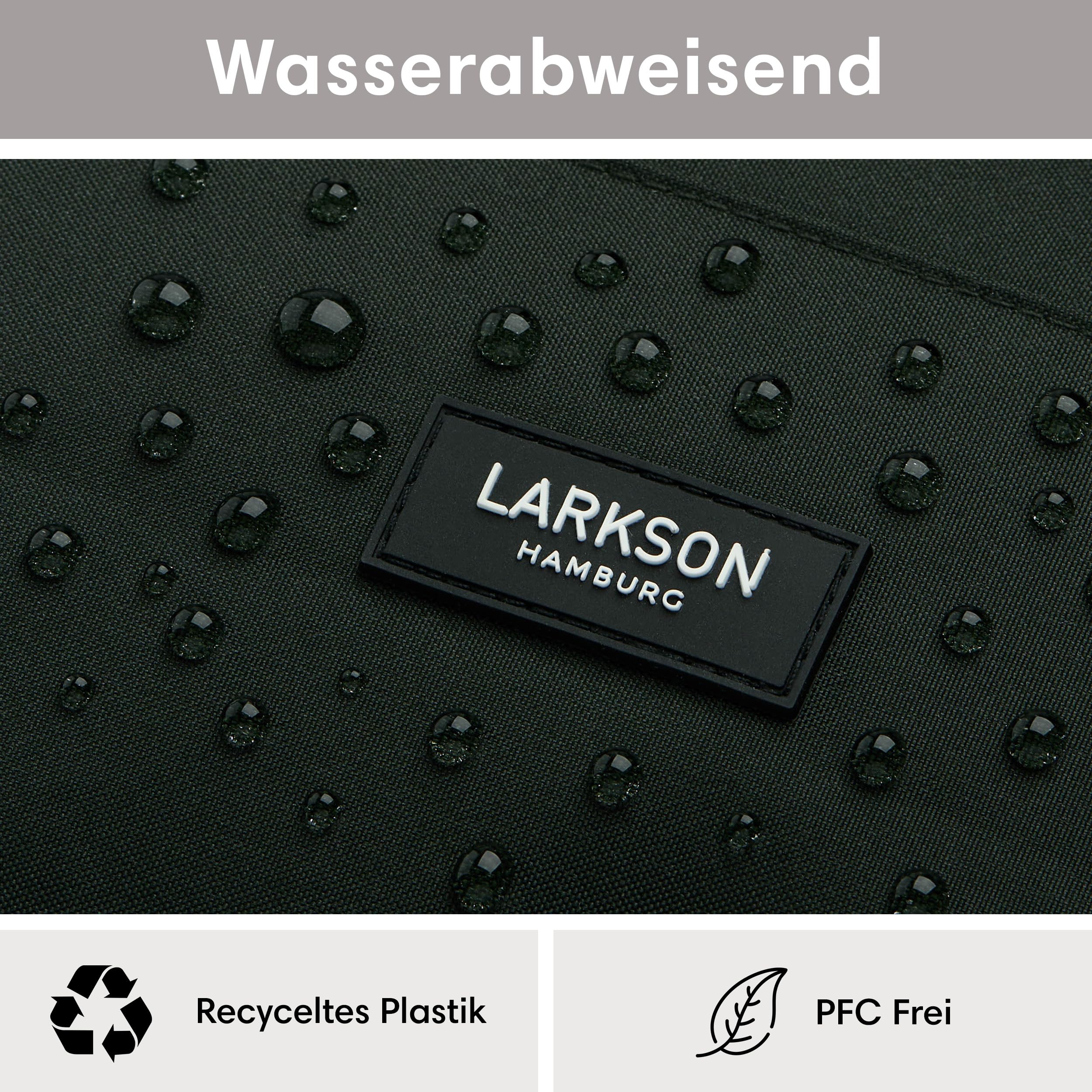 Moderner LARKSON Rucksack für die Schule, Uni und FreizeitDer LARKSON Tagesrucksack ist mit seinem modernen Look und angesagtem Printdesign ein idealer Begleiter für Mädchen und Jungen.Im grossen Hauptfach des Rucksacks befindet sich ein gepolstertes Laptopfach für Geräte bis 16 Zoll und zwei Fächer für Kleinigkeiten. An den Aussenseiten sind Einsteckfächer für eine Trinkflasche, Regenschirm etc. vorhanden. Zusätzlich gibt es noch ein Reissverschlussfach mit Schlüsselbefestigungshaken auf der Vorderseite. Die Träger sind weich gepolstert und haben an einer Seite ein Gummiband zur Befestigung von Kopfhörern oder Sonnenbrille. Der Aussenstoff sowie das Innenfutter des LARKSON Rucksacks bestehen aus Polyester, das aus recycelten PET-Flaschen hergestellt wurde. Eine TPE-Beschichtung auf der Rückseite des Aussenstoffs sorgt für zusätzliche Stabilität. Zum Imprägnieren wird ein PFC-freies Mittel genutzt, damit keine Schadstoffe in die Umwelt gelangen.HighlightsModernes & praktisches Design