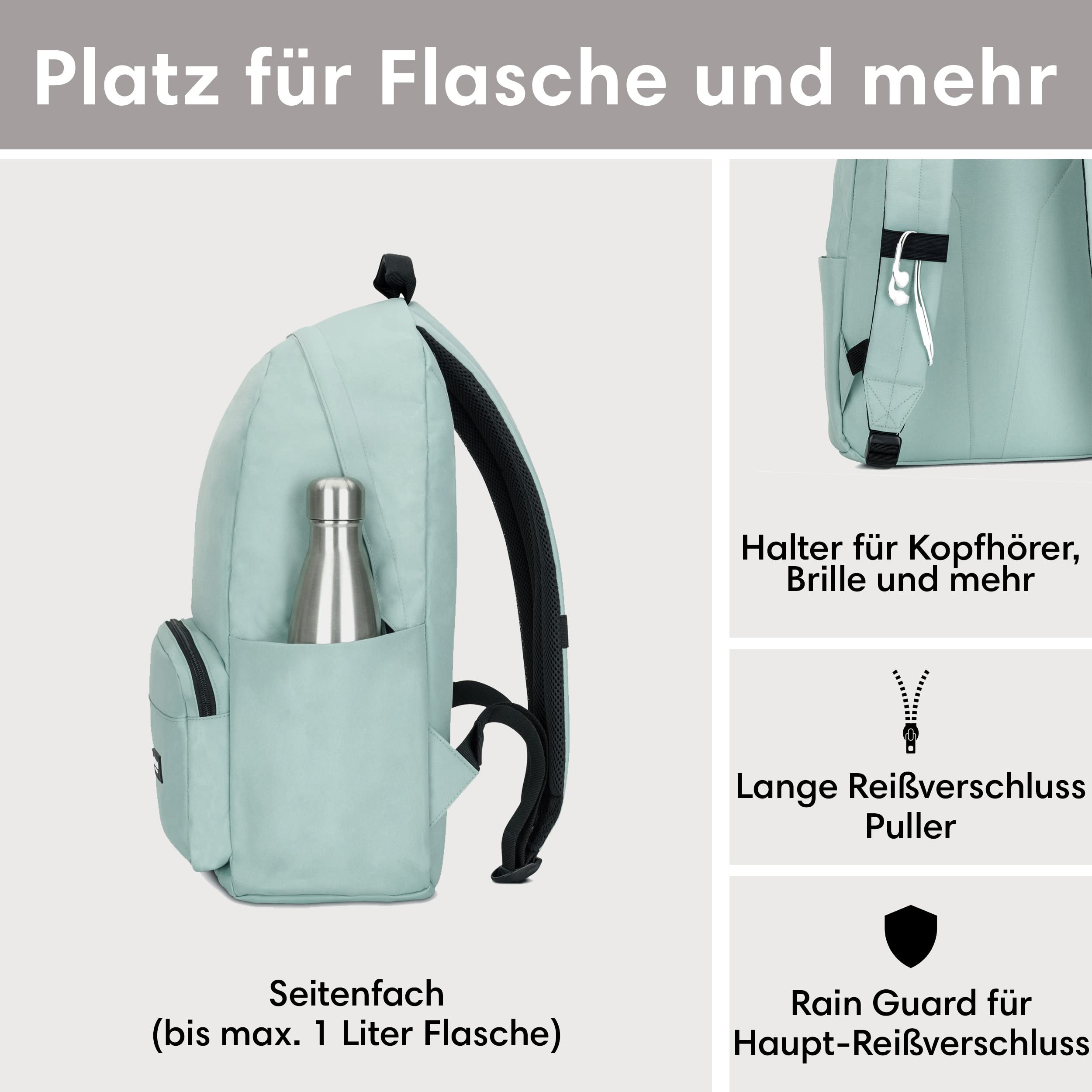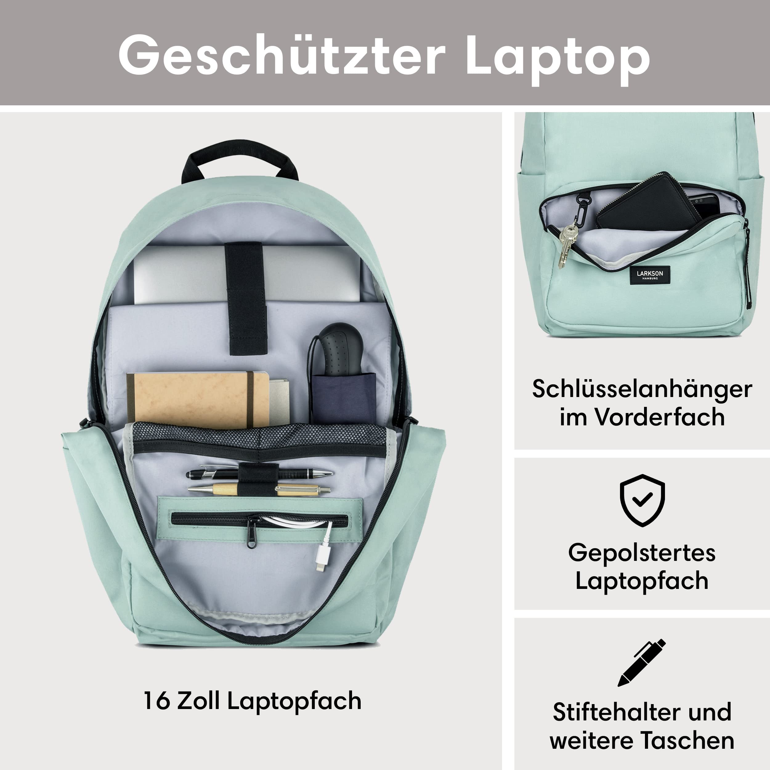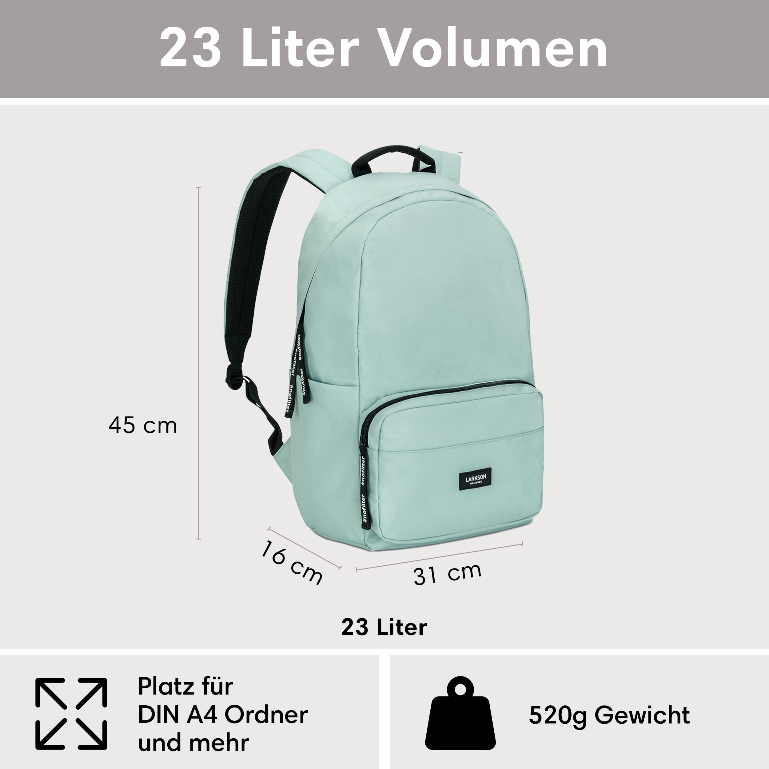LARKSON Schulrucksack Mädchen & Jungen Teenager Mint - No 3 - Rucksack Damen & Herren für Schule - 16" Laptopfach - Aus Recyceltem PET - Wasserabweisend