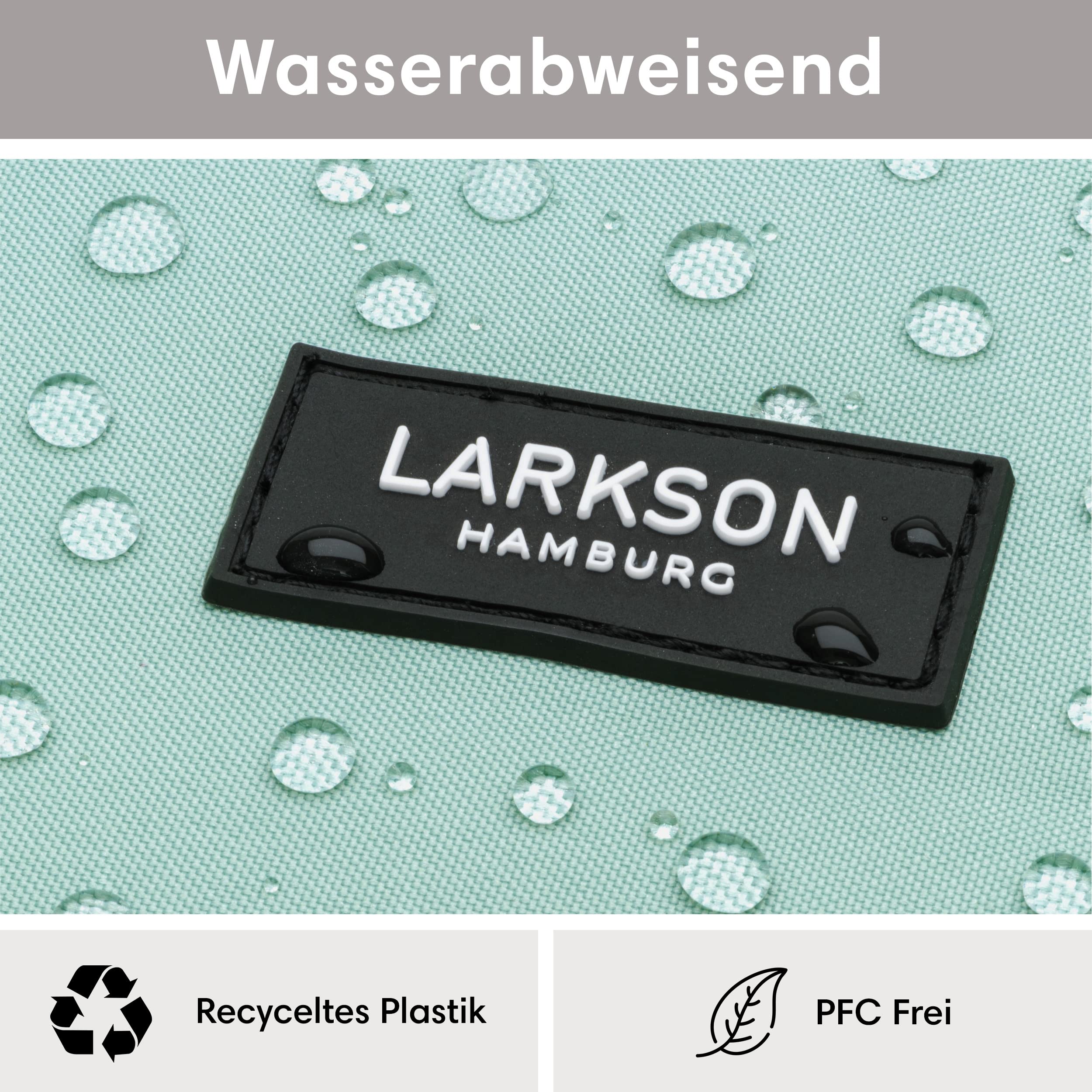 Moderner LARKSON Rucksack für die Schule, Uni und FreizeitDer LARKSON Tagesrucksack ist mit seinem modernen Look und angesagtem Printdesign ein idealer Begleiter für Mädchen und Jungen.Im grossen Hauptfach des Rucksacks befindet sich ein gepolstertes Laptopfach für Geräte bis 16 Zoll und zwei Fächer für Kleinigkeiten. An den Aussenseiten sind Einsteckfächer für eine Trinkflasche, Regenschirm etc. vorhanden. Zusätzlich gibt es noch ein Reissverschlussfach mit Schlüsselbefestigungshaken auf der Vorderseite. Die Träger sind weich gepolstert und haben an einer Seite ein Gummiband zur Befestigung von Kopfhörern oder Sonnenbrille. Der Aussenstoff sowie das Innenfutter des LARKSON Rucksacks bestehen aus Polyester, das aus recycelten PET-Flaschen hergestellt wurde. Eine TPE-Beschichtung auf der Rückseite des Aussenstoffs sorgt für zusätzliche Stabilität. Zum Imprägnieren wird ein PFC-freies Mittel genutzt, damit keine Schadstoffe in die Umwelt gelangen.HighlightsModernes & praktisches Design