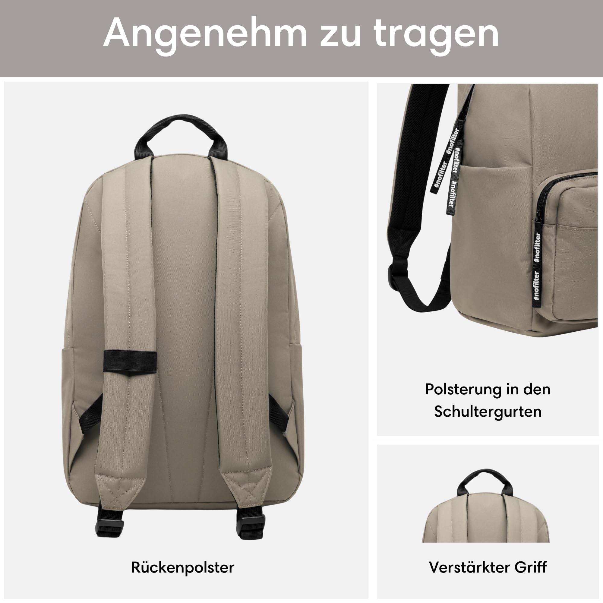 LARKSON Schulrucksack Mädchen & Jungen Teenager Grau - No 3 - Rucksack Damen & Herren für Schule - 16" Laptopfach - Aus Recyceltem PET - Wasserabweisend