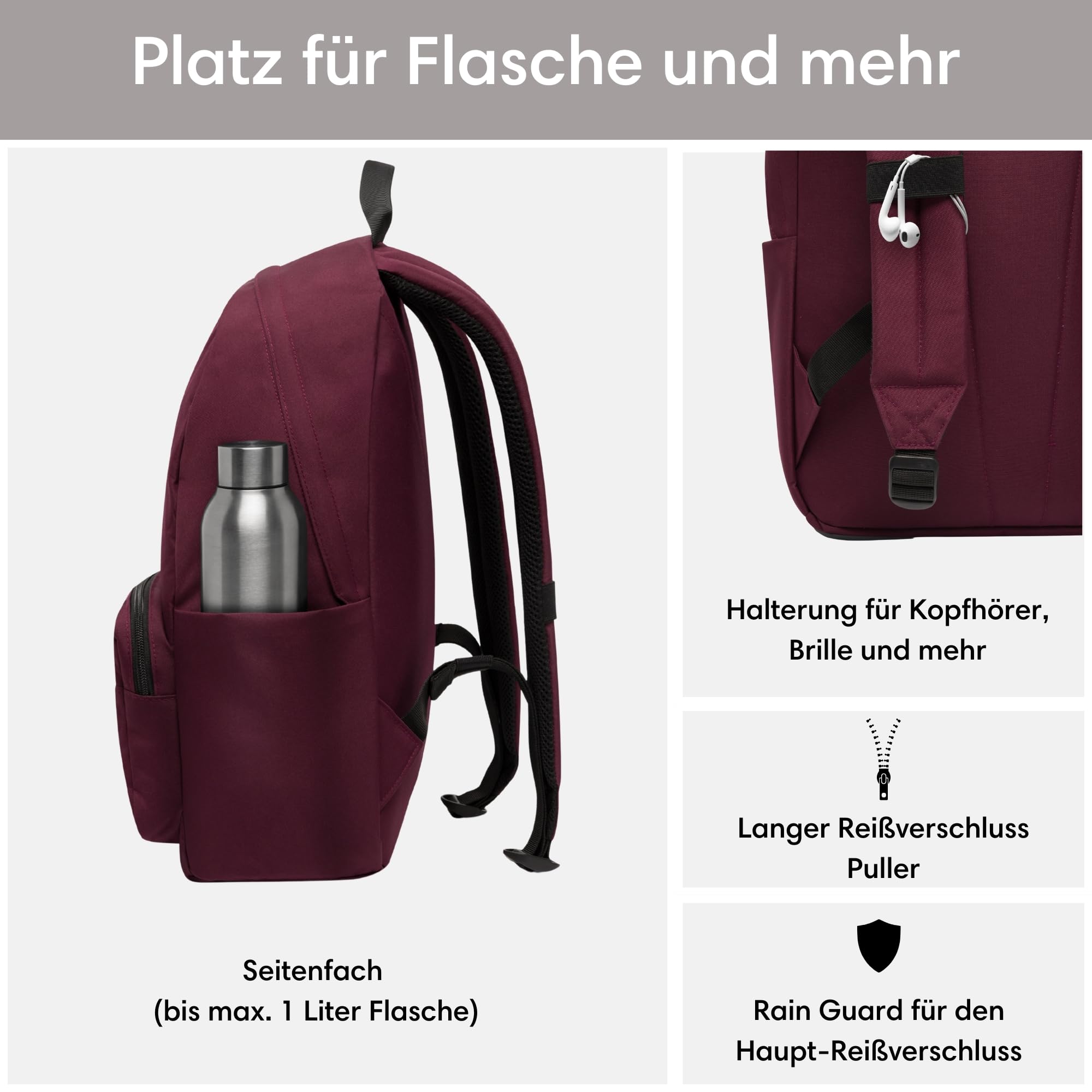 LARKSON Schulrucksack Mädchen & Jungen Teenager Rot - No 3 - Rucksack Damen & Herren für Schule - 16" Laptopfach - Aus Recyceltem PET - Wasserabweisend