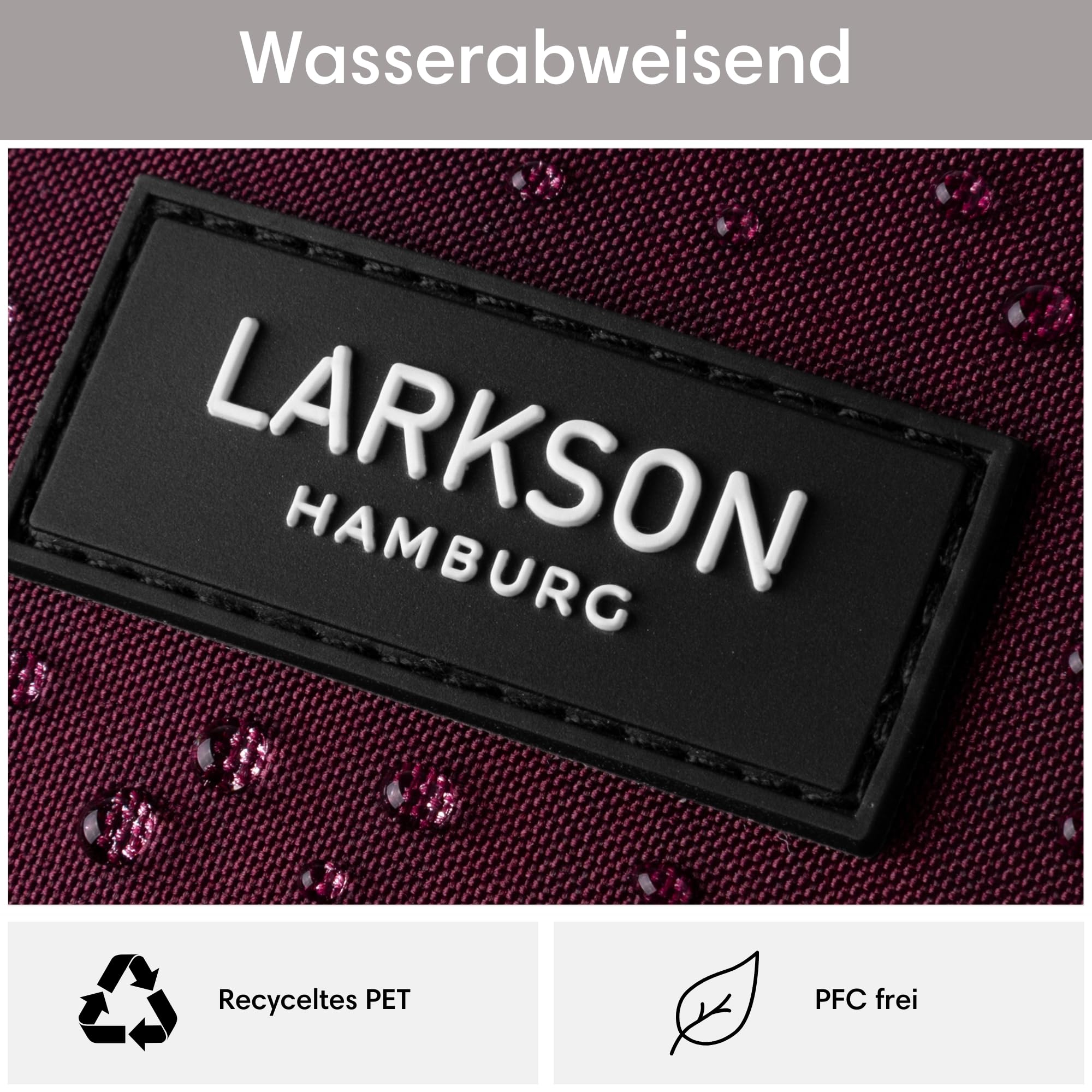 Moderner LARKSON Rucksack für die Schule, Uni und FreizeitDer LARKSON Tagesrucksack ist mit seinem modernen Look und angesagtem Printdesign ein idealer Begleiter für Mädchen und Jungen.Im grossen Hauptfach des Rucksacks befindet sich ein gepolstertes Laptopfach für Geräte bis 16 Zoll und zwei Fächer für Kleinigkeiten. An den Aussenseiten sind Einsteckfächer für eine Trinkflasche, Regenschirm etc. vorhanden. Zusätzlich gibt es noch ein Reissverschlussfach mit Schlüsselbefestigungshaken auf der Vorderseite. Die Träger sind weich gepolstert und haben an einer Seite ein Gummiband zur Befestigung von Kopfhörern oder Sonnenbrille. Der Aussenstoff sowie das Innenfutter des LARKSON Rucksacks bestehen aus Polyester, das aus recycelten PET-Flaschen hergestellt wurde. Eine TPE-Beschichtung auf der Rückseite des Aussenstoffs sorgt für zusätzliche Stabilität. Zum Imprägnieren wird ein PFC-freies Mittel genutzt, damit keine Schadstoffe in die Umwelt gelangen.HighlightsModernes & praktisches Design