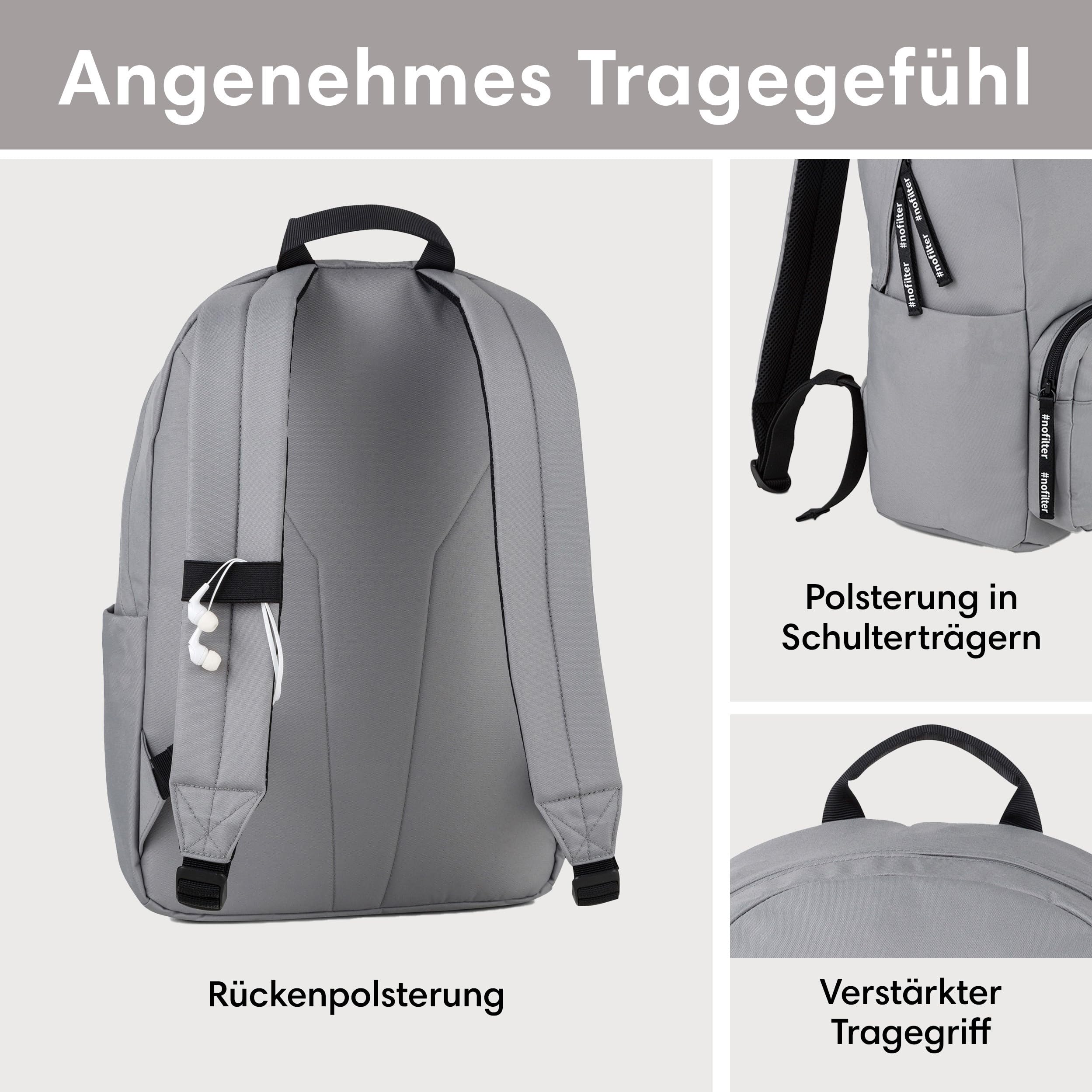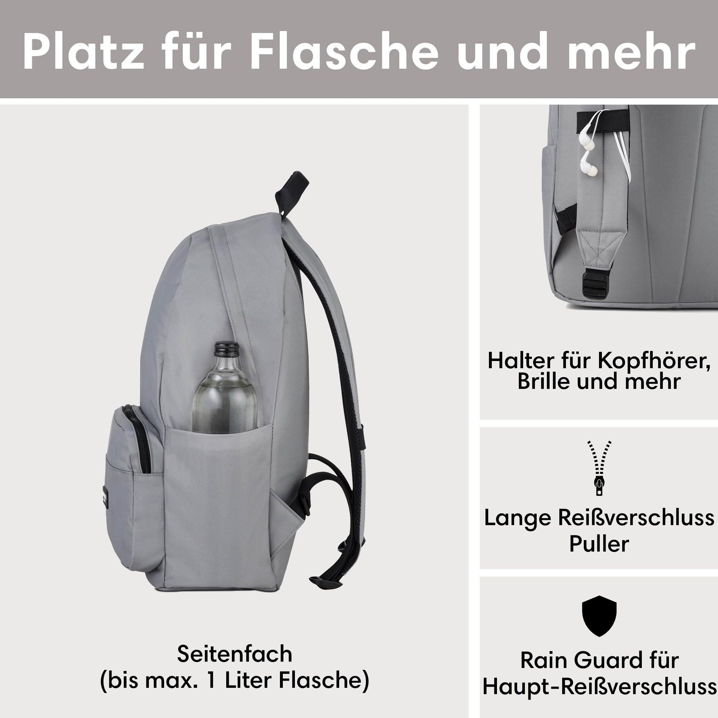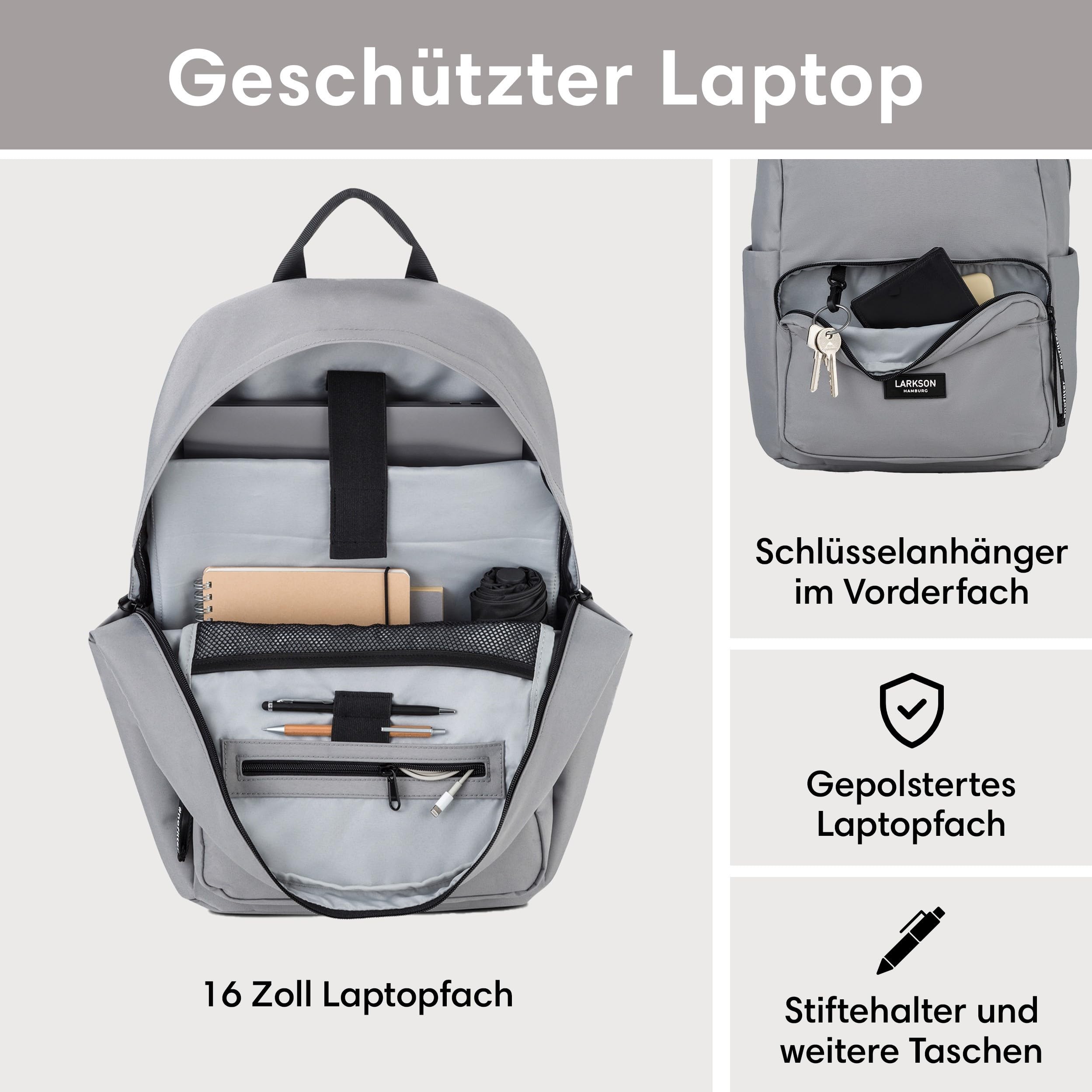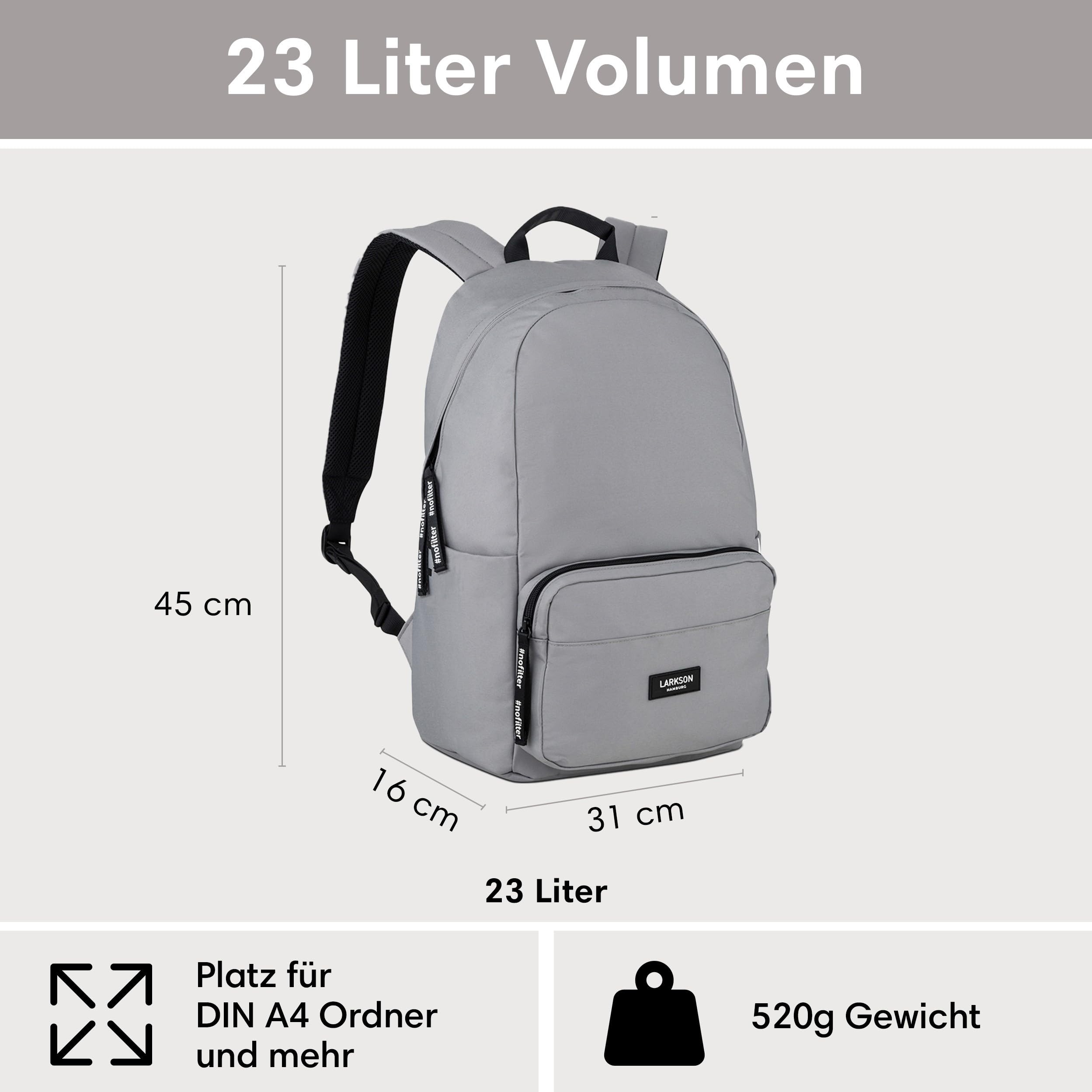 LARKSON Schulrucksack Mädchen & Jungen Teenager Grau - No 3 - Rucksack Damen & Herren für Schule - 16" Laptopfach - Aus Recyceltem PET - Wasserabweisend
