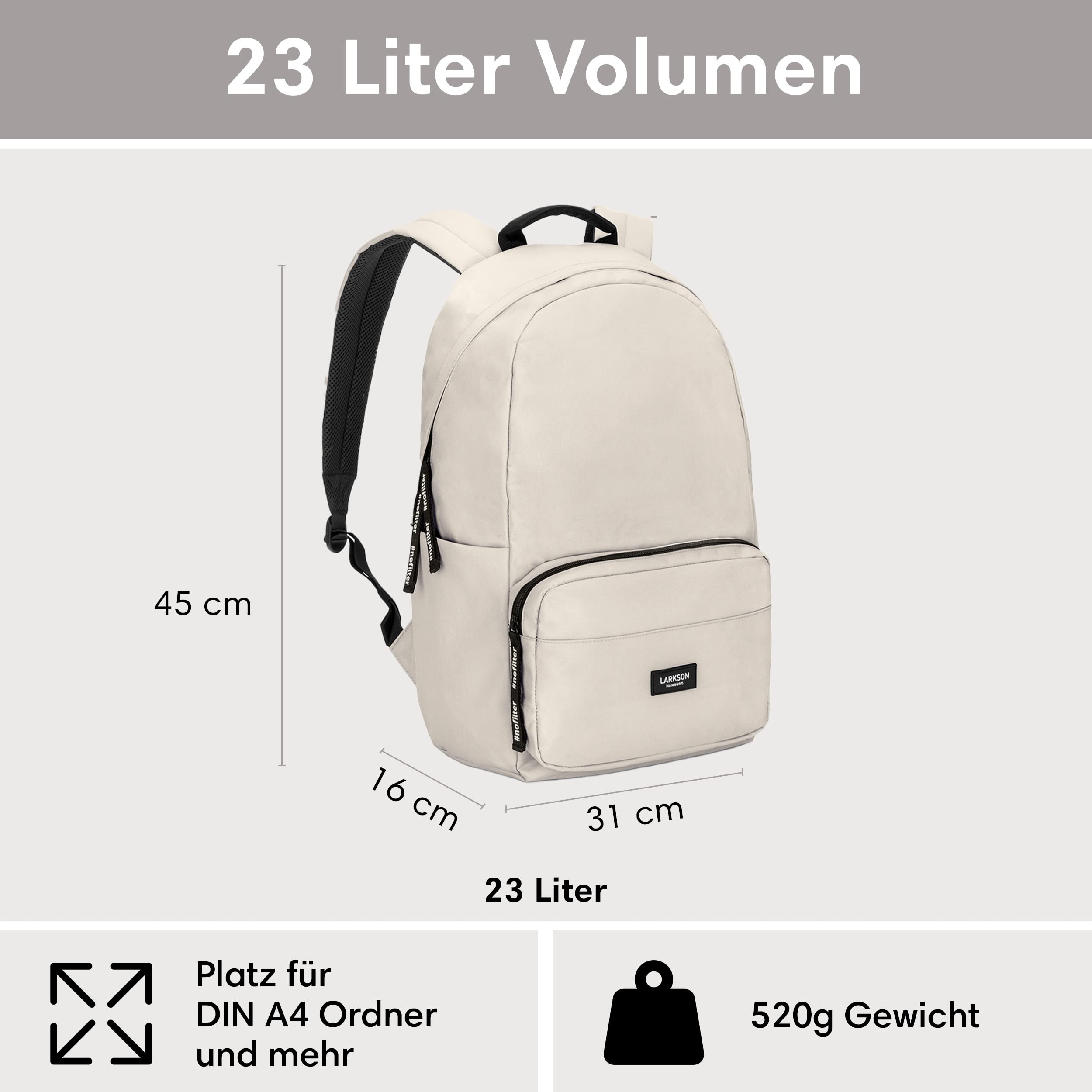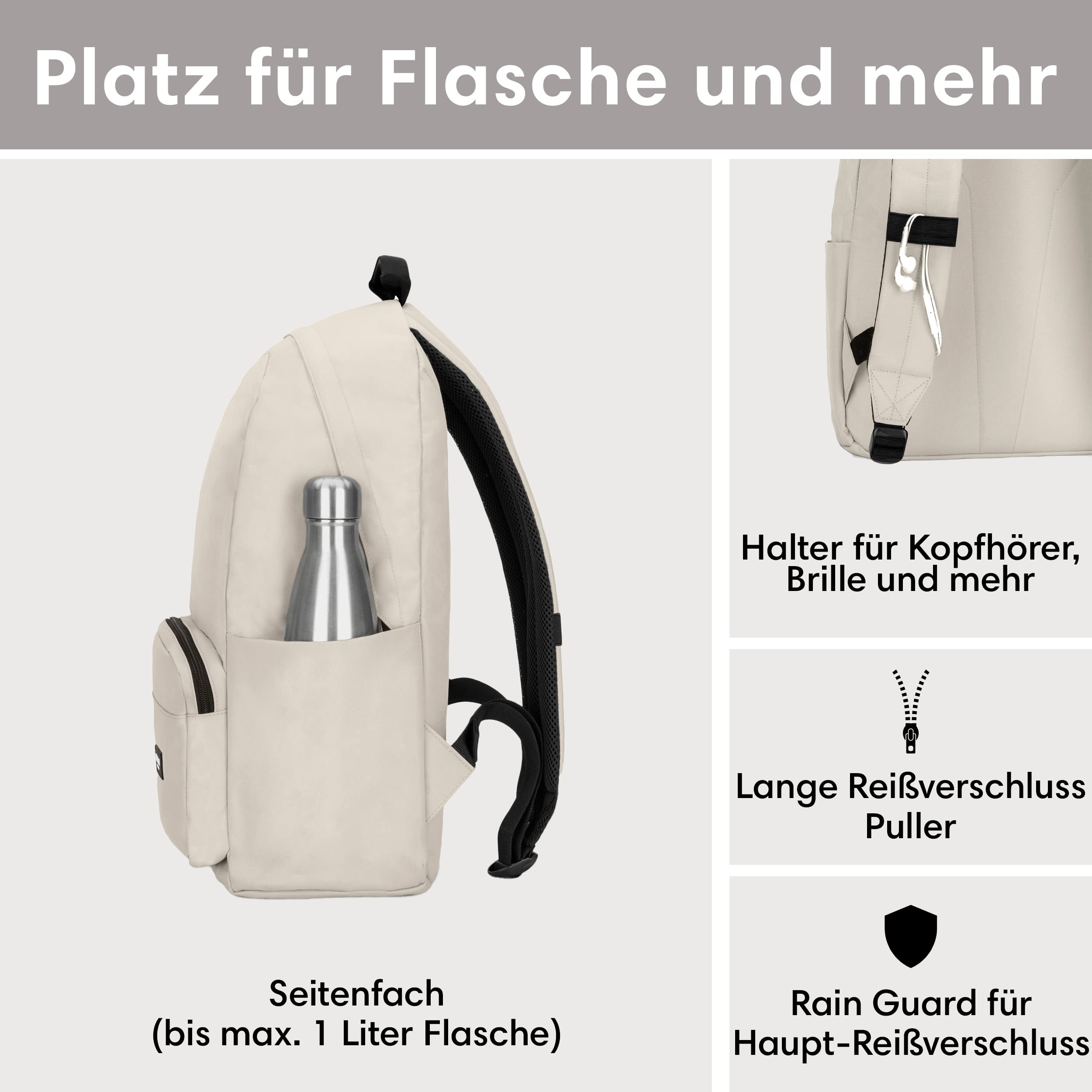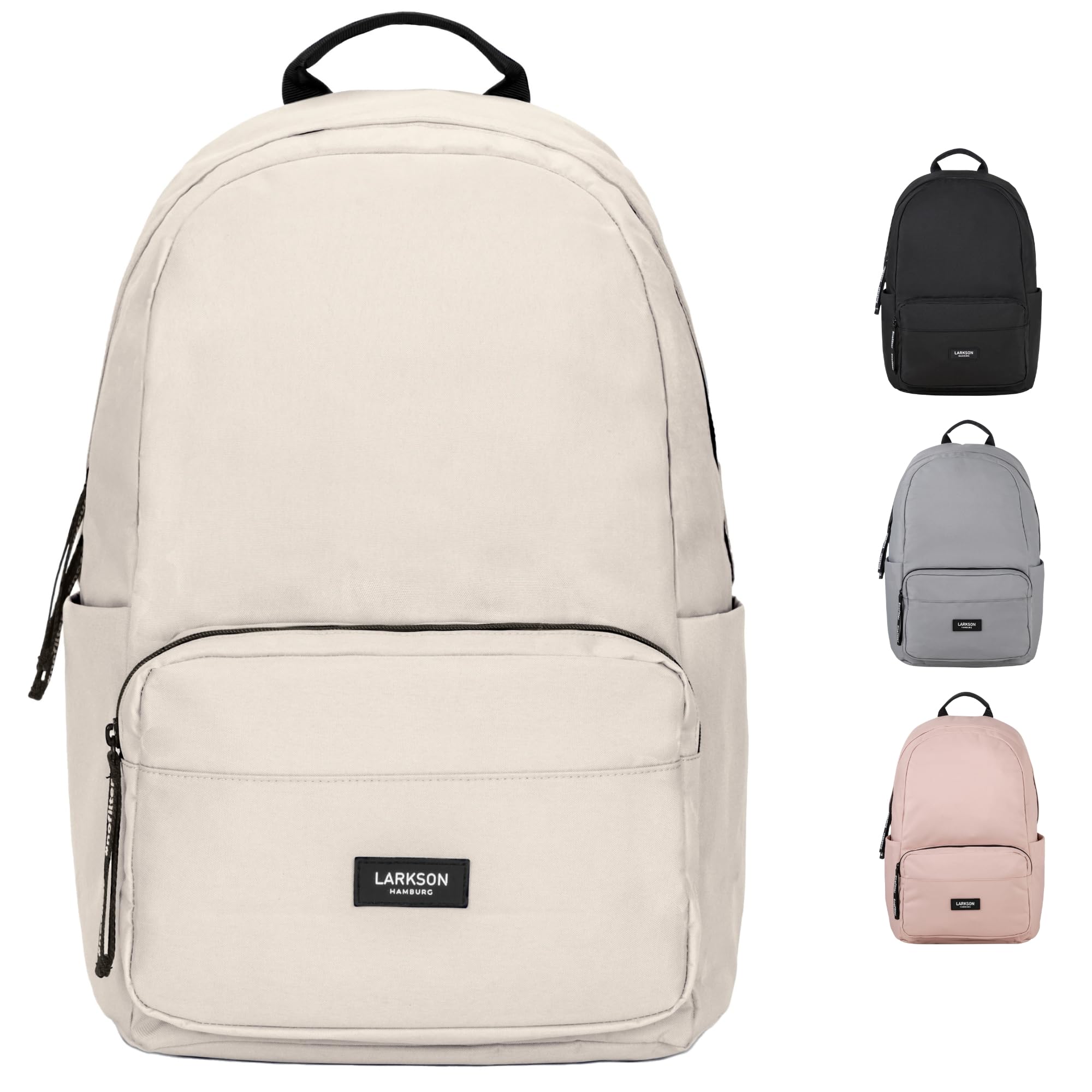 LARKSON Schulrucksack Mädchen & Jungen Teenager Beige - No 3 - Rucksack Damen & Herren für Schule - 16" Laptopfach - Aus Recyceltem PET - Wasserabweisend