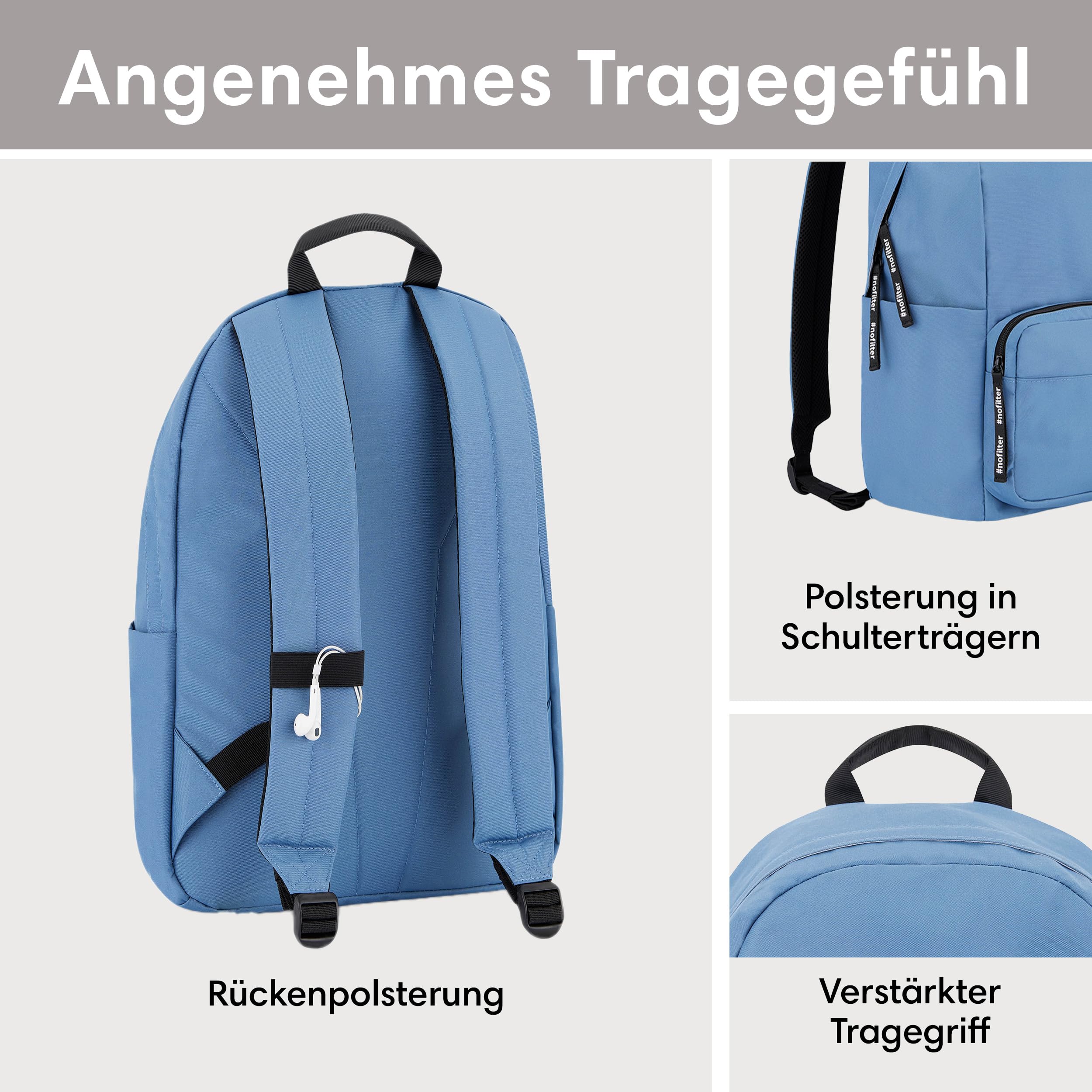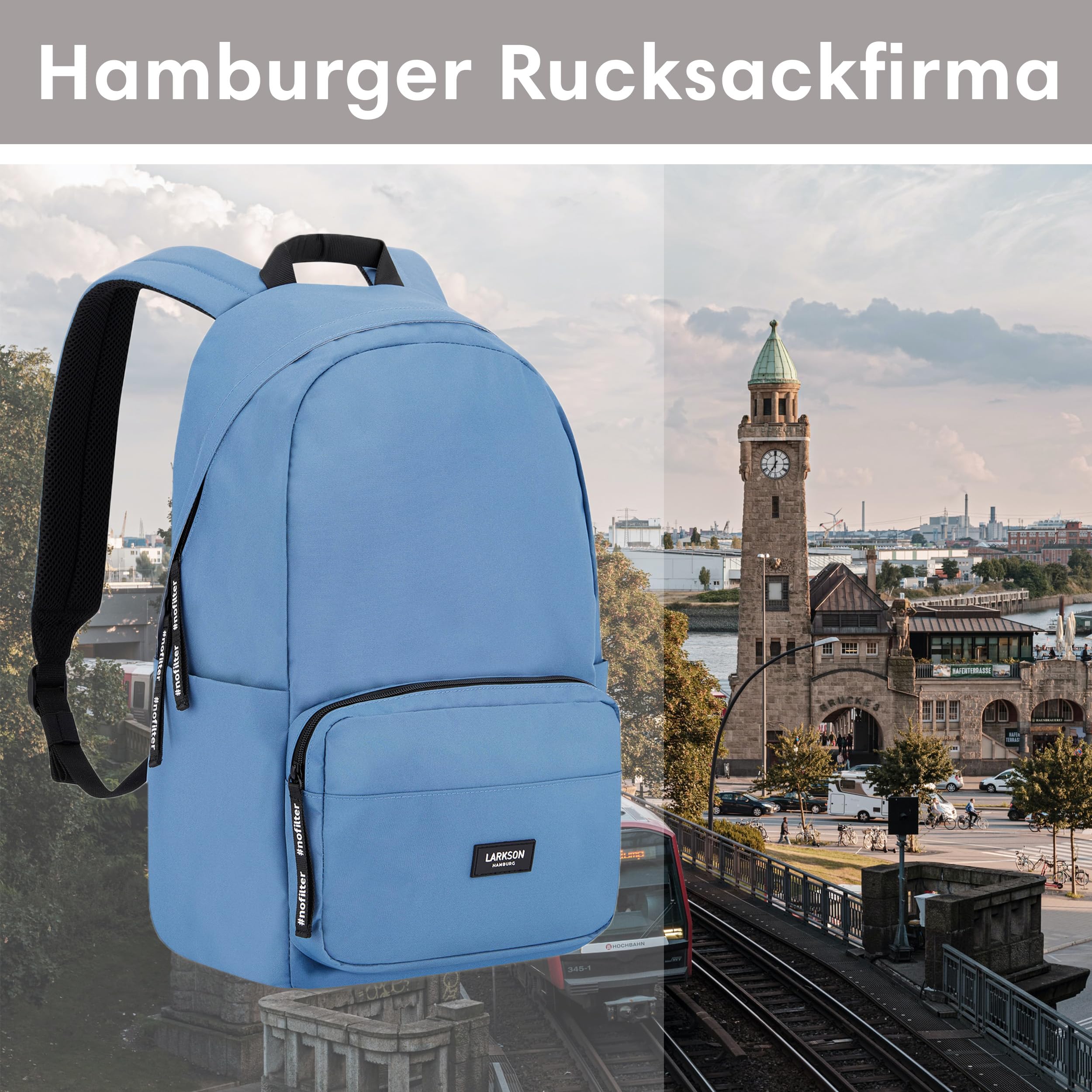 LARKSON Schulrucksack Mädchen & Jungen Teenager Hellblau - No 3 - Rucksack Damen & Herren für Schule - 16" Laptopfach - Aus Recyceltem PET - Wasserabweisend