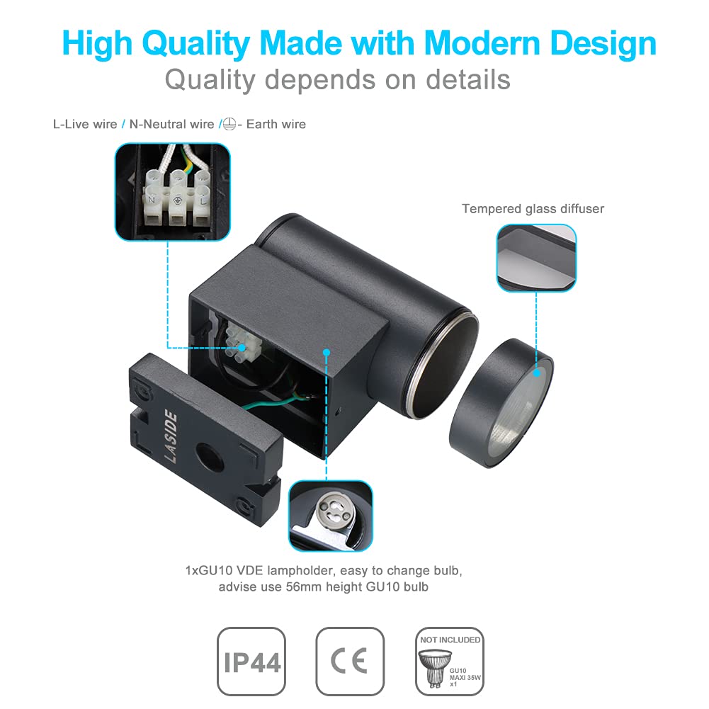 LASIDE 2er Set Aussenleuchte Aussenlampe Wand, GU10 Anthrazit Aluminium Down Aussenlampe Aussenleuchte, IP65 Spritzwassergeschützt Wandlampe Wandleuchte Lampe Aussen Aussen Leuchte für Garten Terrasse