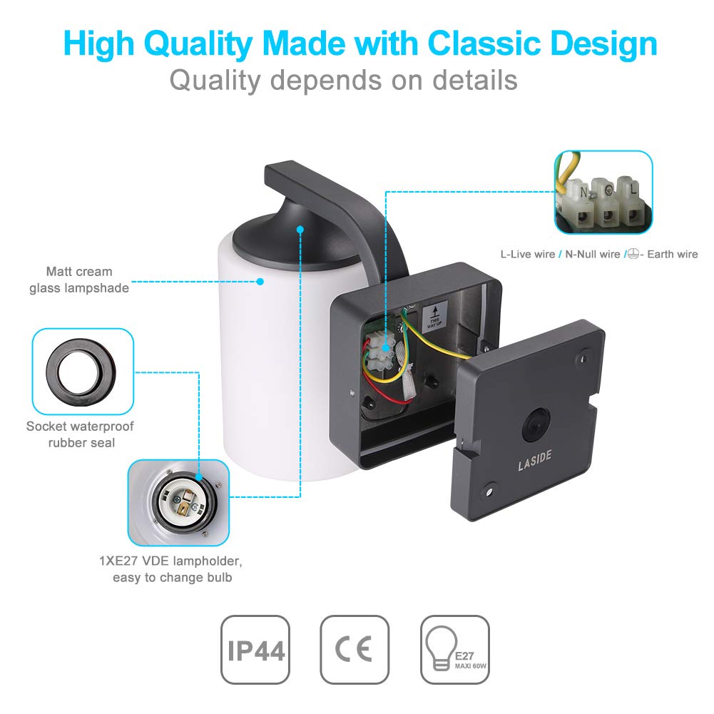 LASIDE Aussenleuchte Aussenlampe Wand, Anthrazit Grau Aluminium E27 Glaslaterne Aussenlampe Aussenleuchte, IP44 Spritzwassergeschützt Wandlampe Wandleuchte Lampe Aussen Aussen Leuchte für Garten Terrasse