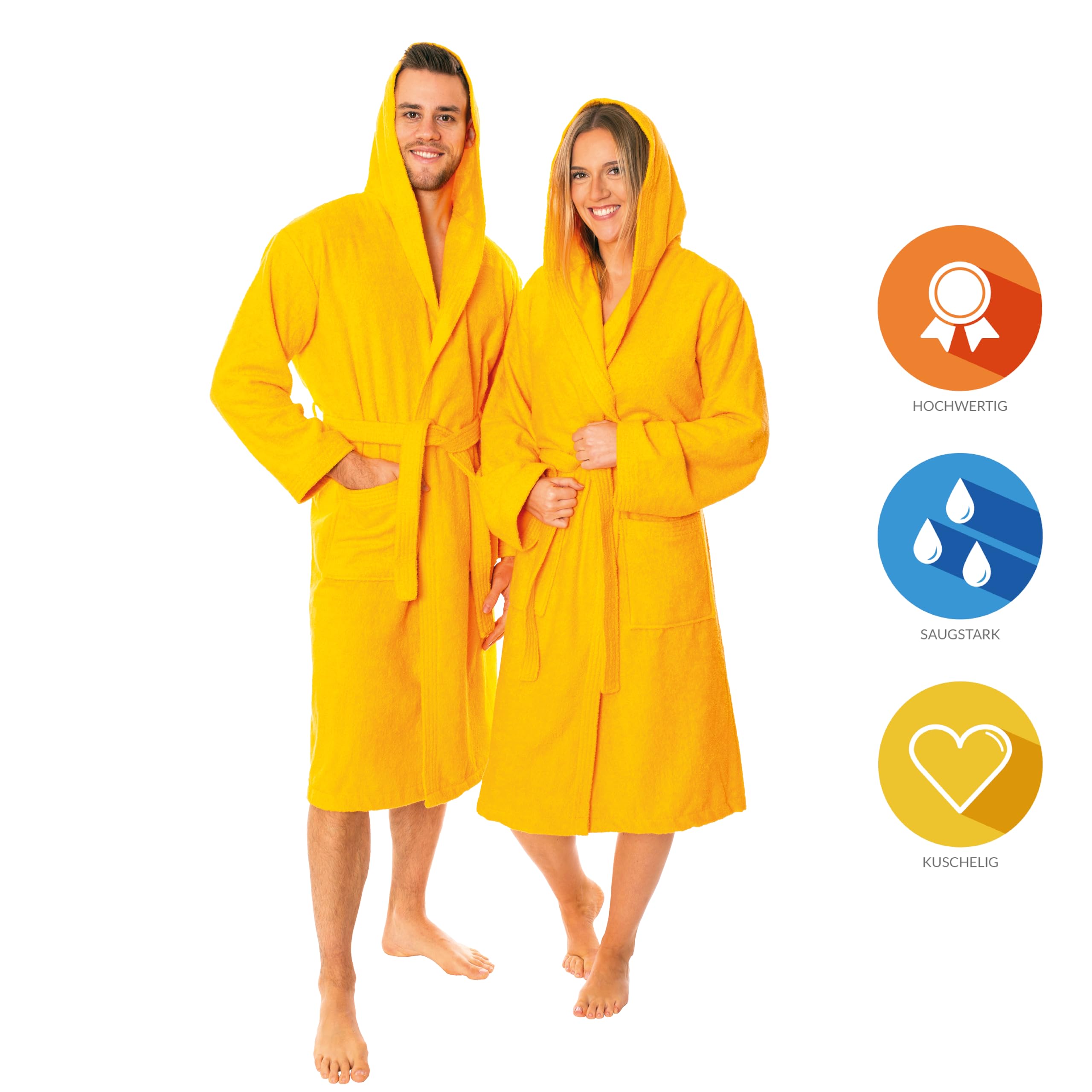 Lavea® Mexico - Luxuriöser Bademantel mit Kapuze, 100% Baumwolle, Weich & Saugstark - Ideal für Spa & Zuhause, Unisex Design, Größe: M, Farbe: mango